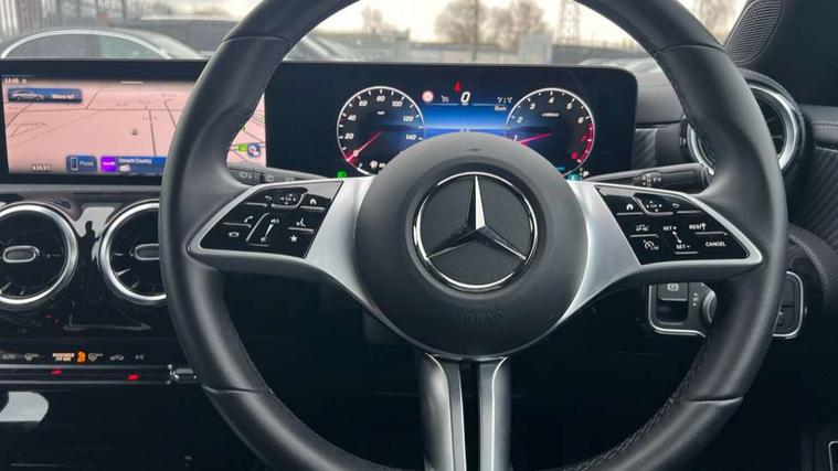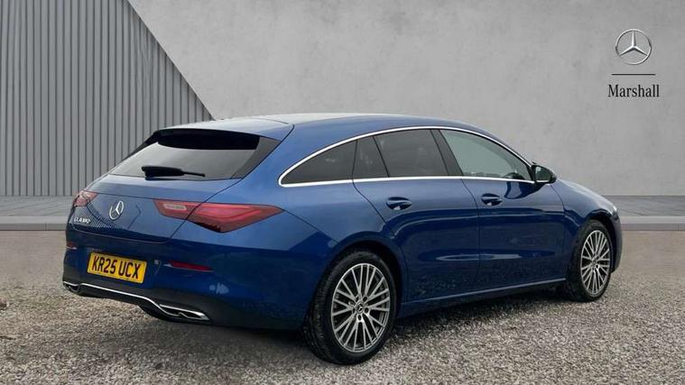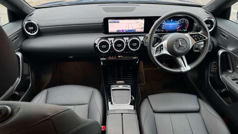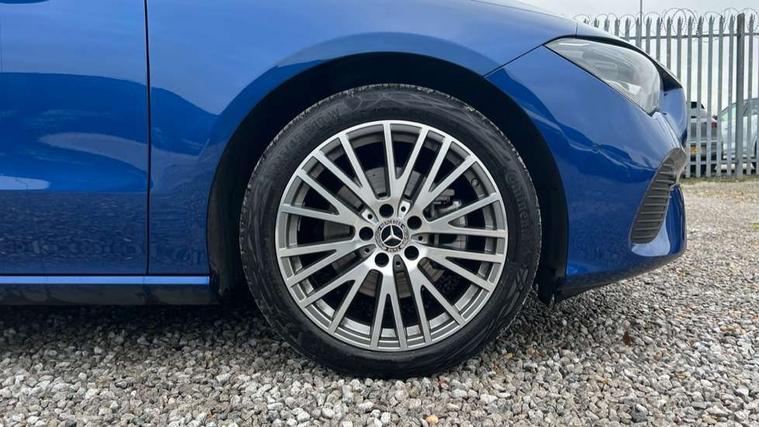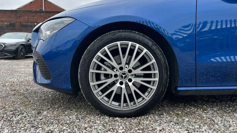 10.25 inch Instrument display with digital cockpit, 10.25 inch touchscreen central media display, Active lane keeping assist, Attention assist - Monitors steering behaviour and long journey fatigue, Blind spot assist, Bluetooth connection, Car wash mode, Cruise control with limiter, Direct steer system, DYNAMIC SELECT with a choice of driving modes (ECO, Comfort, Sport and Individual), ECO start/stop function, Fluid level warning indicator for fuel, oil, coolant and washer fluid, Hard-disk navigation, Hey Mercedes Voice activation, Lamp failure indicator, Mercedes me connect including emergency call system, accident recovery, breakdown and maintenance management, Mercedes me remote services, Outside temperature gauge, Owners manual in English, Pre-installation of private car share, Radio aerial integrated into front and rear windshields, Service indicator (ASSYST), Smartphone integration with Apple CarPlay and Android auto, Speed limit assist, Tailgate, Trip computer in multifunction display with current consumption indicator, Comfort suspension, Rear axle multi-link, DAB digital radio tuner, MBUX multimedia system, Mercedes Benz sound system (100 W) with 6 speakers, Pre installation for Mercedes Benz Link, Adaptive brake lights, Body colour door handles (Chrome insert with Keyless entry), Chrome beltline strips, Electric windows, Electrically adjustable and heated door mirrors with integrated LED indicators, Exhaust system with 2 Visible tailpipe trim elements and rear apron with trim in chrome, Headlamp assist automatic headlamp activation, Heated glass rear windscreen + timer control, High level LED third brake light, Interior mirror with black reading lamps and frameless, LED high performance headlamps with integrated LED daytime running lights and adaptive highbeam assist, LED tail lamp, Privacy glass with dark tinting on rear side windows and rear window, Progressive body-styling - Front apron with trim strip in chrome, visible tailpipe trim elements and rear apron with trim strip in chrome, Radiator grille with Mercedes-Benz pattern in high-gloss black and central Mercedes star, single louvre in matt grey with chrome inserts, Rain sensing windscreen wipers with two sensitivity settings, Rear fog lamp, Rear side wing doors, Rear wiper, Variable front intermittent wipers, Window line trim strip in chrome, 3 seat bench in 2nd row, 3 spoke ARTICO man made leather multi function sports steering wheel with black grained gearshift paddles, oeration via touch control panels, 4 way lumbar support, 40:20:40 split folding rear seat backrests, Air conditioning - One zone THERMATIC automatic climate control with automatically controlled air distribution, Air vents with surround in silver chrome, Artico man-made leather upholstery, Automatic child seat recognition sensor, Black roof lining, Brushed stainless steel sports pedals with rubber studs, Comfort seats, Fluorescent jacket, Front centre armrest with stowage, Front head restraints, Heated front seats, Luggage net on driver/front passenger seat backrest, Manually height and reach adjustable steering column, Rear head restraints, Single front passenger seat, Stowage compartment in centre console with retractable cover, Sunvisors with illuminated vanity mirrors, Twin front cupholders, Two outer rear seat isofix and top tether child seat fixing points, Velour floor mats, Light and sight pack - CLA, Mirror pack - CLA, Parking pack with reversing camera - CLA, Seat comfort pack - CLA, USB package plus - CLA, Active bonnet pedestrain safety measure which detects an impact and raises bonnet by 65mm, Active brake assist includes forward collision warning system with autonomous braking, Adaptive brake assist with hold function and hill start assist, Anti lock braking system (ABS) with brake assist, Black seat belts, Bonnet with power domes, Brake pad wear warning indicator, Childproof locks manually operated for rear doors and electrically operated for rear power windows, Crash responsive emergency lighting, Driver and front passenger head and sidebags, Driver and front passenger windowbags, Drivers knee airbag, Dual stage driver and front passenger airbags, Electric parking brake, Electronic stability programme with acceleration skid control, ESP curve dynamic assist, Front and rear seatbelt reminder, Front passenger seat occupancy sensor, Three point rear seat belts, Tyre pressure monitoring system, Warning triangle and first aid kit, Alarm system with immobiliser and interior protection -Thatcham category 1, Guard 360 deg vehicle protection - tow away protection with visual, acoustic warning, interior monitoring, preinstallation for parking damage, Remote central locking and crash sensor with emergency opening function, Dark carbon fibre look trim, 18" multi-spoke himalayas grey painted light alloy wheels with high sheen rim finish, Summer tyres, Tirefit tyre sealant kit,