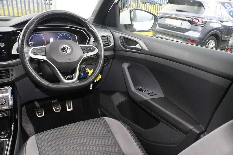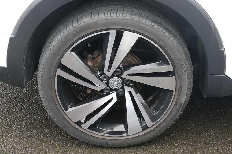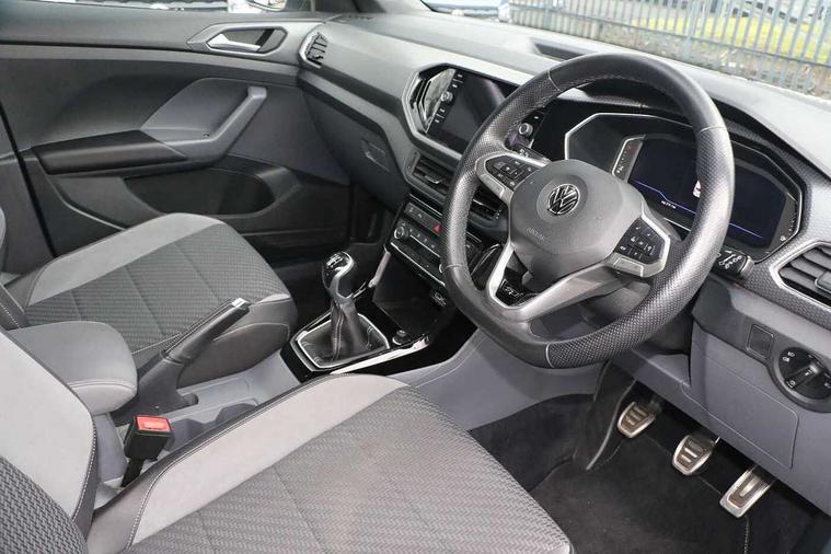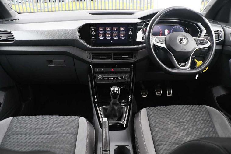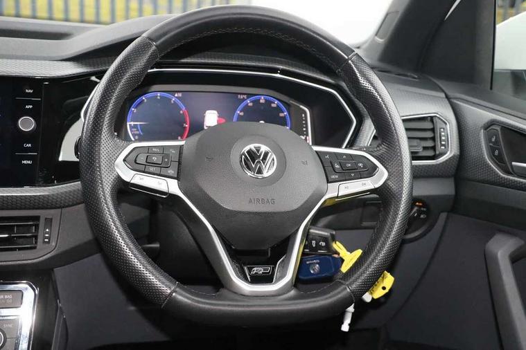 Active Info display 10.25" high resolution TFT dash display with customisable menu and information, Adaptive cruise control, Car-Net App-Connect with VW media control, Discover navigation system with 8.0" colour screen, radio/CD player, European map data, eCall emergency call system, Front assist, radar sensor controlled distance monitor, city emergency braking + predictive pedestrian protection, Lane assist with blind spot plus lane keeping system, Low washer fluid warning light, Multifunction computer with visual gear change recommendation for fuel consumption, Power assisted speed sensitive steering, Progressive steering, Side scan blind spot detection, Speed limiter, Speedo, rev counter, electronic odometer, trip, service interval display, exterior temperature and fuel gauge, Stop/start system, Warning sound and light for doors and tailgate open, Warning sound and light for front seatbelts unfastened, Battery regeneration during braking, Misfuel prevention device, 2 USB sockets in rear, Composition Media with 8"colour touch screen including DAB/CD drive, MP3/WMA, AUX-in/SD slot, 1 USB port and Bluetooth telephone connectivity, Multi device interface (MDI) with USB connection, Premium USB cable for Apple or Android smartphone compatibility, Simultaneous pairing of 2 compatible mobile devices, Title and cover art display, Automatic dimming interior rear view mirror with rain sensor, Automatic hazard lights activation under emergency braking, Body colour door handles, Body colour door mirrors with integrated indicators, Body coloured bumpers, Dusk sensor, Front and rear electric windows, Front fog lights with static cornering function, Galvanised body, Heated rear window, High level 3rd brake light, LED headlights with auto range adjustment + LED daytime running lights, Manual coming/automatic leaving home lighting function, Radiator grille with chrome lamelel and bumpers in wagon paint, Rear tail lights LED except turn signals, Rear tinted glass 65% approx light absorbing from B pillar backwards, Rear windscreen washer and wiper with interval delay, Reflectors in all doors, Silver roof rails, Tailgate with integrated roof spoiler, Unique R Line badging, Windscreen wipers/ intermittent wipe + 4 position delay, 12V Accessory socket in centre console, 2 Front and rear reading lights incorporating LED technology, 2 Zone electronic climate control with automatic air recirculation, 3 rear head restraints and 3 rear three point seat belts with ECE label, 60/40 split folding rear seat backrest, Aluminium pedals, Carbon flag cloth upholstery, Drawer under drivers seat, Driver's seat height adjustment, Driver's sunvisor with ticket holder, Dust and pollen filter, Front centre armrest with storage compartment and two rear air vents, Front comfort seats, Front seat R Line logo with rear seat backrest, Front seats with adj lumbar support, Front sport seats, Glovebox, Heating and fresh air system with 4 stage blower, Height/reach adjust steering wheel, Instrument lighting white adjustable panel illumination, Interior light with delay, Isofix child seat preparation for 2 rear child seats, Luggage compartment cover, Luggage compartment lighting, Lumbar support, Manual front seats with height adjustment, Moveable and foldable Rear bench seat, R Line front and rear floor mats with contrast stitching, Removable luggage cover, Storage compartment in driver and passenger doors, Sun visors with mirror on passenger side, Three spoke multi-function leather trimmed steering wheel and gearknob, Unique R Line door sill protectors, Variable boot floor, Light and sight pack - T-cross, R Line styling pack - T-cross, 3 point seat belt with electric pre tensioner, Anti-lock Braking System (ABS) with Hydraulic Brake Assist (HBA), Automatic post collision braking system, Driver and front passenger safety-optimised head restraints, Drivers and Front Passengers airbags with front passengers airbag deactivation switch, ESC with EDL, ASR, EDTC and trailer stabilisation function, Extended and proactive pedestrian protection, Front and rear curtain airbags, Front disc brakes and rear drum brakes, Front seat side impact airbags, Front ventilated disc brakes and rear disc brakes, Height adjustable 3 point automatic front seatbelts with pretensioners, Hill start assist, Pre crash preventive occupant protection, Rigid safety cell with front and rear crumple zones, Tyre pressure loss indicator, Volkswagen roadside assistance, Alarm with remote central locking and interior protection, Central locking without safe fuse with radio remote control and 2 radio folding keys, Child security locks in rear doors, Electronic engine immobiliser, Softell decorative inserts in dash and centre console, 18" Nevada black alloy wheels + anti theft wheel bolts,