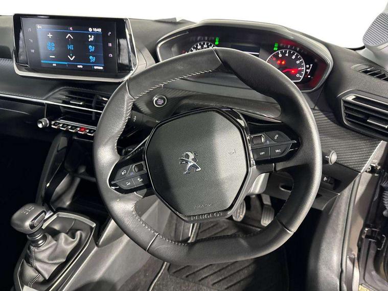 Bluetooth telephone facility, Driver attention warning, Emergency call service, Exterior temperature indicator with ice warning, Lane keep assist, Mirror screen with mirror link, apple carplay and android auto, Multi function trip computer, PEUGEOT i-Cockpit with 3.5" instrument panel display, PEUGEOT i-Cockpit with compact steering wheel, Programmable cruise control and speed limiter, Push button start, Rear parking sensors, Smart phone docking station, Speed limit recognition and recommendation, Start/stop system, 1x USB socket in front, 6 speakers radio with mp3 compatible, DAB Digital radio, Voice recognition for radio, navigation and telephony features, 2 X Rear number plate lights, Automatic hazard light activation upon heavy brake application, Automatic lights, Automatic windscreen wipers, Body coloured exterior door handles, Dark tinted rear side and tailgate windows, Diamond black rear spoiler (roof), Eco LED headlights, Electric front windows + one touch + anti-pinch, Electric rear windows with one touch/anti-pinch, Electrically adjustable, heated and power folding door mirrors, Electrochrome rear view mirror, Follow me home headlights, Gloss black rear cluster connecting strip, Headlights left on audible warning, LED daytime running lights with distinctive tooth design, LED third brake light, Model designation badges front and rear, Nera black door mirror shells, Radiator grille chrome chequered, Rear reversing lights, Rear side wing doors, Rear windscreen wiper triggered automatically in reverse gear, Roof mounted aerial, Roof spoiler, Single exhaust tailpipe, Tailgate with heated rear windscreen and wiper blade, Variable front intermittent wipers, 1/3 to 2/3 split folding rear seats, 12V socket, 3 seat bench in 2nd row, Automatic air conditioning, Driver and front passenger comfort seats, Driver and front passenger seat manual adjustment in longitudinal and back rest angle, Driver seat mechanical height adjustment, Electric power steering with reach and rake adjustable steering column, Front interior light with 2 reading spotlights, Gear shift indicator, Leather steering wheel, Low centre console, Map pockets on the backs of the front seats, Piano keys gloss black plated toggle switches to access main functions of the vehicle, Rear centre headrest, Roof lining - light grey, Satin chrome gear lever, Seatbelt unfastened on the move audible and visual alert for front and rear seats, Single front passenger seat, Tri material cloth upholstery, 2x Isofix child seat fitting on outer rear seats, 3 rear 3 point seatbelts, ABS (Anti-lock Braking System) with EBD (Electronic Brakeforce Distribution) and EBA (Emergency Braking Assistance), Adaptive driver and front passenger airbags with passenger airbag deactivation function, Child locking functionality on rear doors, Driver/front passenger side airbags, ESP with Hill Assist, Front and rear curtain airbags, Front and rear disc brakes, Front optimised safety headrests and 3 x rear retractable headrests with height adjustable, Front three point retractable seatbelts with force limiters, Manual parking brake, Pedestrians active safety brake, Tyre pressure sensor, Acoustic vehicle alert system (AVAS), Automatic door locking when moving off, Deadlock, Electronic code immobiliser, Remote central locking, Thatcham cat. 1 alarm with anti lift sensor, Carbon effect Dashboard, front and rear door panel finish, 16" Taksim alloy wheels, Tyre puncture repair kit,