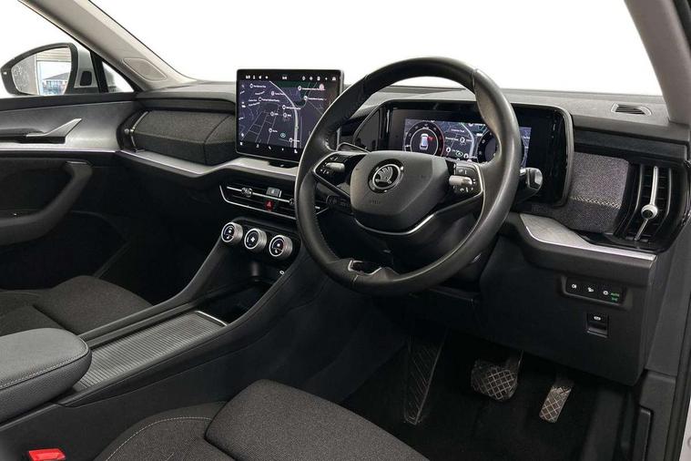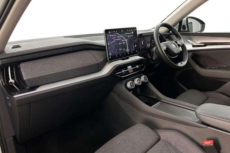 13" satellite navigation touchscreen display, Blind spot detection with door exit warning, Bluetooth system, ChatGPT functionality, Drive mode selector, Driver alert with fatigue sensor, Driver drowsiness alert system, Dry display cleaner, e call+, Front and rear parking sensors, Front cross traffic assist, Lane assist, PAS, Rear traffic assist, Rear view camera, Tailgate unlocking from outside, Traffic sign recognition, USB C Port x 2 in front centre console, Virtual Cockpit - 10.25" digital display, Voice control system, Wireless charging for two smartphones (15W) with cooling function, Wireless SmartLink for Apple CarPlay and Android Auto, Stop/start function, 2x USB-C in the rear, 8 Speakers, DAB Digital radio, Aero front windscreen wipers with intermittent function, All weather light, Auto dimming rear view mirror, Black wheel arch surrounds, Body colour bumpers, Body colour door mirrors and handles, Cornering light and poor weather light, Electric folding /adjustable/separted heated/folding door mirrors, auto dimming with boarding sports and memory function, Electric front and rear windows, Exterior black decorative trims, Heat insulating glass in windshield, Heated rear window, Ice scraper in fuel tank cap, Invisible tailpipe, LED daytime running lights, LED front fog lamps, LED Headlights, LED rear fog light, LED rear lights, LED third brake light in rear spoiler, Light assistant with automatic headlight control and coming home feature, Logo projection in door mirrors, Rear side wing doors, Rear spoiler, Rear window wiper, Safety reflectors on front and rear doors, Unique dark chrome design logo on alloy wheels, Window control switches with black trim, Windscreen wipers with rain sensor, Without engine designation, 1.5l bottle holder points in all door, 12V socket in boot, 1x centre rear reading light, 2 seat bench in 3rd row, 3 configurable smart dials with 32mm coloured display, 3 seat bench in 2nd row, 4 foldable roof handles with rear coat hooks, Ambient interior lighting - Dashboard, front-door stowage compartments, front and rear door panels and footwell lighting, Automatic gear selector on steering wheel, Chrome interior door handles, Driver/front passenger reading lights, Fabric headlining, Fixed bench 40:60:40 split folding backrests, Front and rear floor mats, Front centre armrest with jumbo box storage compartment, cup holder and 12V socket, Front courtesy lights, Height adjustable front headrests, Isofix child seat fittings in outer middle row rear seats and front passenger with top tether, Manual height adjustment for front passenger seats and thigh support extender, Manual lumbar support for front passenger seat, Manually adjustable steering column, Pollen filter, Rear centre armrest with cupholders, Rear seat boot backrest release, Retractable luggage compartment cover, Single front passenger seat, Skoda lettering on steering wheel, Sliding trunk cover, Small Bags on the inner sides of the front backrests, Storage pocket including mobile phone pockets on the backs of the front seats, Sunvisors with illuminated vanity mirrors, Three rear height adjustable headrests, Ticket holder on A Pillar, Tri zone climate control, Umbrella in door panel x1 made from sustainable materials, Upper and lower glovebox with card holder and coin compartment, USB C port by rear view mirror for charging only (15W), Variable boot floor, Auto door release and activation of warning lights in the event of an accident, Driver and front passenger airbag with knee airbag and front passenger airbag deactivation, Electric child locks, Electronic parking brake, ESC (incl. ABS+EMD+MSR+ASR+EDL+HBA+DSR+RBS+ESBS+MCB+TSA+XDS), Front assist with braking reaction to vehicles, pedestrians and cyclists, Front disc brakes, Fuel cut off safety device, Height adjustable front 3 point seatbelts + pretensioners, Hill hold control, Junction assist with automatic emergency braking, Rear disc brakes, Safety vest holder in door, Seat belt reminder for all seats, Three point rear seat belts, Two tone horn, Tyre pressure monitor, Alarm with interior monitoring and tilt sensor with safe function, Anti-theft wheel bolts, Immobiliser, Remote central locking with 2 keys, Breakdown kit,