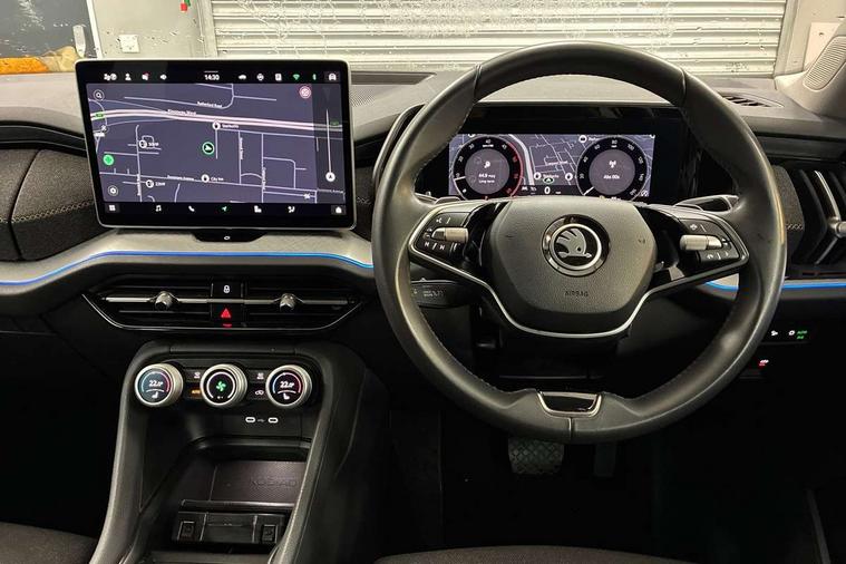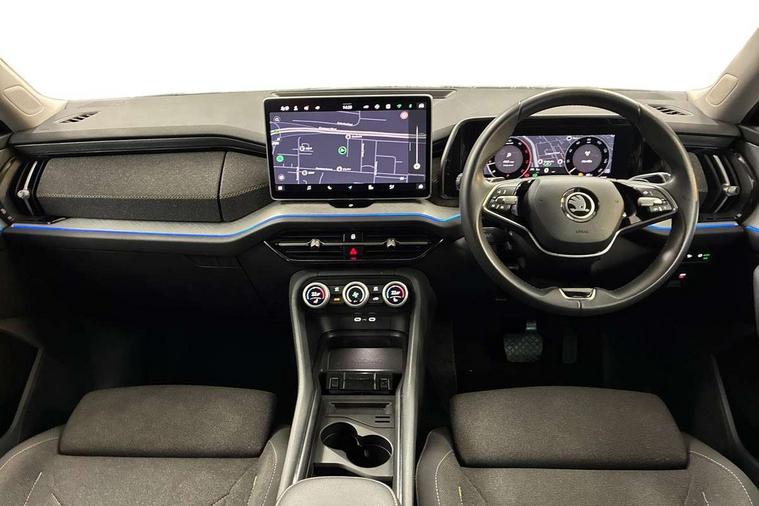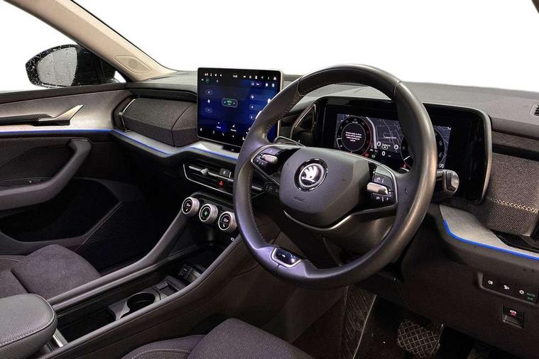 13" satellite navigation touchscreen display, Blind spot detection with door exit warning, Bluetooth system, ChatGPT functionality, Drive mode selector, Driver alert with fatigue sensor, Driver drowsiness alert system, Dry display cleaner, e call+, Front and rear parking sensors, Front cross traffic assist, Lane assist, PAS, Rear traffic assist, Rear view camera, Tailgate unlocking from outside, Traffic sign recognition, USB C Port x 2 in front centre console, Virtual Cockpit - 10.25" digital display, Voice control system, Wireless charging for two smartphones (15W) with cooling function, Wireless SmartLink for Apple CarPlay and Android Auto, Stop/start function, 2x USB-C in the rear, 8 Speakers, DAB Digital radio, Aero front windscreen wipers with intermittent function, All weather light, Auto dimming rear view mirror, Black wheel arch surrounds, Body colour bumpers, Body colour door mirrors and handles, Cornering light and poor weather light, Electric folding /adjustable/separted heated/folding door mirrors, auto dimming with boarding sports and memory function, Electric front and rear windows, Exterior black decorative trims, Heat insulating glass in windshield, Heated rear window, Ice scraper in fuel tank cap, Invisible tailpipe, LED daytime running lights, LED front fog lamps, LED Headlights, LED rear fog light, LED rear lights, LED third brake light in rear spoiler, Light assistant with automatic headlight control and coming home feature, Logo projection in door mirrors, Rear side wing doors, Rear spoiler, Rear window wiper, Safety reflectors on front and rear doors, Unique dark chrome design logo on alloy wheels, Window control switches with black trim, Windscreen wipers with rain sensor, Without engine designation, 1.5l bottle holder points in all door, 12V socket in boot, 1x centre rear reading light, 2 seat bench in 3rd row, 3 configurable smart dials with 32mm coloured display, 3 seat bench in 2nd row, 4 foldable roof handles with rear coat hooks, Ambient interior lighting - Dashboard, front-door stowage compartments, front and rear door panels and footwell lighting, Automatic gear selector on steering wheel, Chrome interior door handles, Driver/front passenger reading lights, Fabric headlining, Fixed bench 40:60:40 split folding backrests, Front and rear floor mats, Front centre armrest with jumbo box storage compartment, cup holder and 12V socket, Front courtesy lights, Height adjustable front headrests, Isofix child seat fittings in outer middle row rear seats and front passenger with top tether, Manual height adjustment for front passenger seats and thigh support extender, Manual lumbar support for front passenger seat, Manually adjustable steering column, Pollen filter, Rear centre armrest with cupholders, Rear seat boot backrest release, Retractable luggage compartment cover, Single front passenger seat, Skoda lettering on steering wheel, Sliding trunk cover, Small Bags on the inner sides of the front backrests, Storage pocket including mobile phone pockets on the backs of the front seats, Sunvisors with illuminated vanity mirrors, Three rear height adjustable headrests, Ticket holder on A Pillar, Tri zone climate control, Umbrella in door panel x1 made from sustainable materials, Upper and lower glovebox with card holder and coin compartment, USB C port by rear view mirror for charging only (15W), Variable boot floor, Auto door release and activation of warning lights in the event of an accident, Driver and front passenger airbag with knee airbag and front passenger airbag deactivation, Electric child locks, Electronic parking brake, ESC (incl. ABS+EMD+MSR+ASR+EDL+HBA+DSR+RBS+ESBS+MCB+TSA+XDS), Front assist with braking reaction to vehicles, pedestrians and cyclists, Front disc brakes, Fuel cut off safety device, Height adjustable front 3 point seatbelts + pretensioners, Hill hold control, Junction assist with automatic emergency braking, Rear disc brakes, Safety vest holder in door, Seat belt reminder for all seats, Three point rear seat belts, Two tone horn, Tyre pressure monitor, Alarm with interior monitoring and tilt sensor with safe function, Anti-theft wheel bolts, Immobiliser, Remote central locking with 2 keys, Breakdown kit,