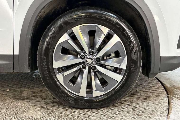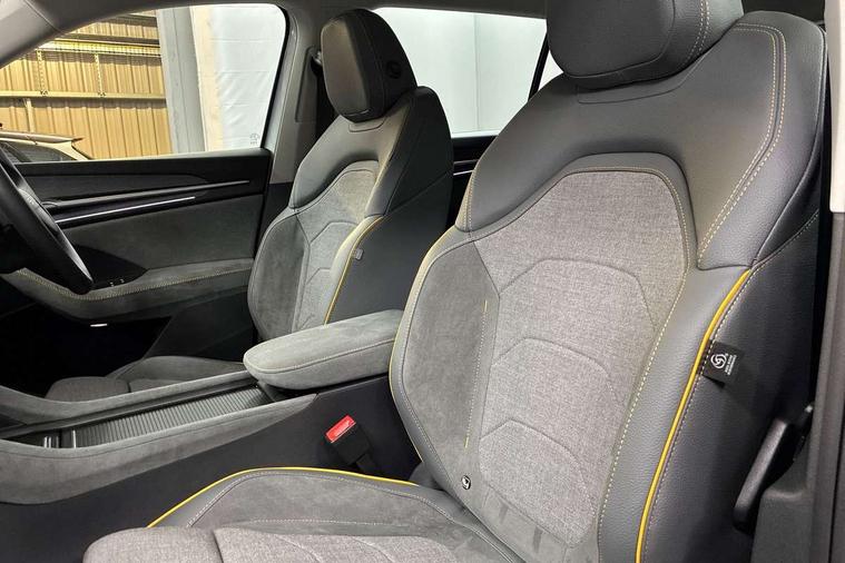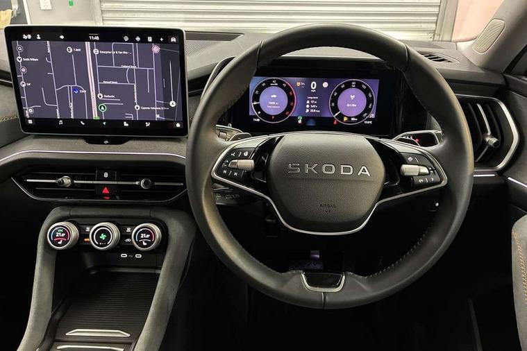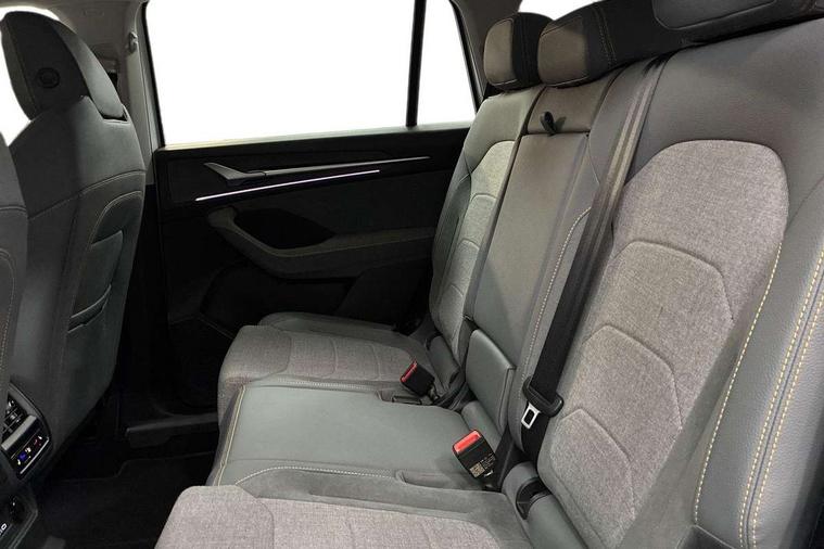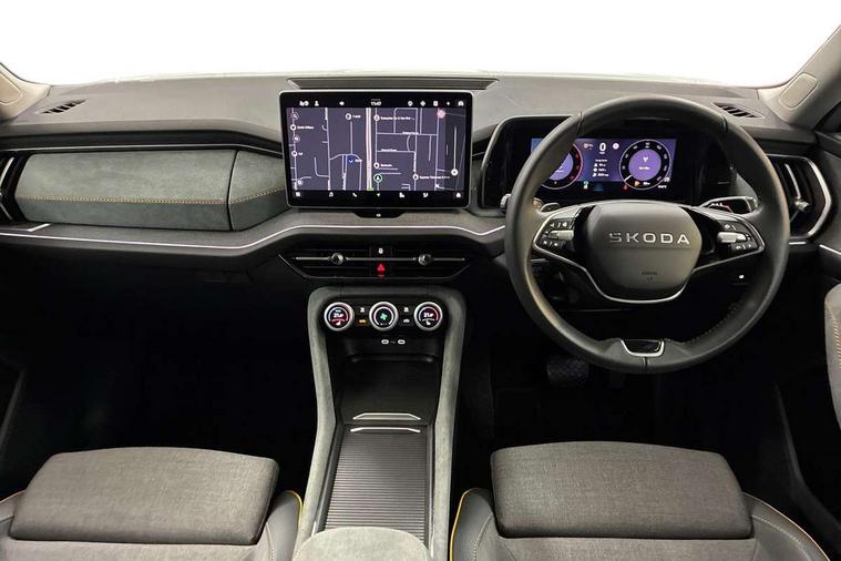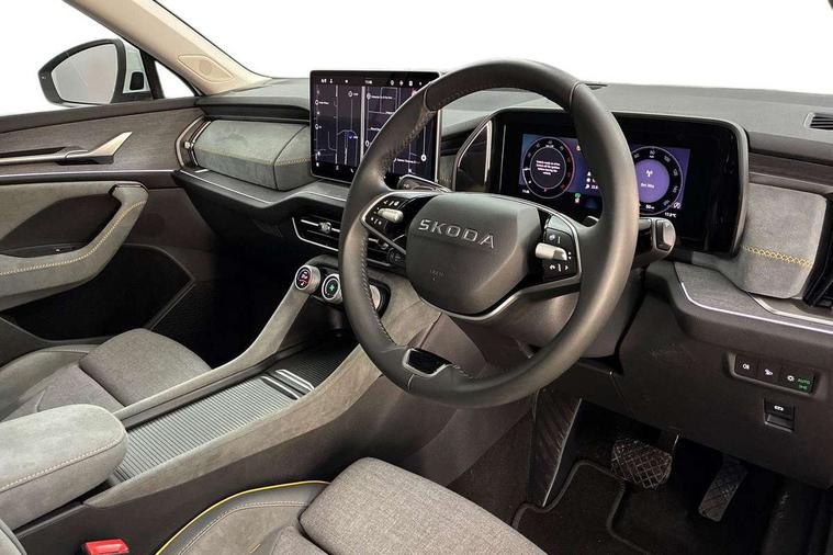 13" satellite navigation touchscreen display, Blind spot detection with door exit warning, Bluetooth system, ChatGPT functionality, Driver alert - Fatigue and drowsiness monitor, Dry display cleaner, Emergency call, Front and rear parking sensors, Front cross traffic assist, Lane assist, PAS, Rear traffic assist, Rear view camera, Tailgate unlocking from outside, Traffic sign recognition, USB C Port x 2 in front centre console, Virtual Cockpit - 10.25" digital display, Voice control system, Wireless charging for two smartphones (15W) with cooling function, Wireless SmartLink for Apple CarPlay and Android Auto, Stop/start function, 2x USB-C in the rear, 8 Speakers, DAB Digital radio, Aero front windscreen wipers with intermittent function, All weather light, Auto dimming rear view mirror, Black wheel arch surrounds, Body colour bumpers, Body colour door mirrors and handles, Cornering light and poor weather light, Electric folding /adjustable/separted heated/folding door mirrors, auto dimming with boarding sports and memory function, Electric front and rear windows, Exterior black decorative trims, Heat insulating glass in windshield, Heated rear window, Ice scraper in fuel tank cap, Invisible tailpipe, LED daytime running lights, LED front fog lamps, LED Headlights, LED rear fog light, LED rear lights, LED third brake light in rear spoiler, Light assistant with automatic headlight control and coming home feature, Logo projection in door mirrors, Rear roof spoiler, Rear side wing doors, Rear window wiper, Safety reflectors on front and rear doors, Unique dark chrome design logo on alloy wheels, Window control switches with black trim, Windscreen wipers with rain sensor, Without engine designation, 1.5l bottle holder points in all door, 1x centre rear reading light, 2 seat bench in 3rd row, 3 configurable smart dials with 32mm coloured display, 3 seat bench in 2nd row, 4 foldable roof handles with rear coat hooks, Ambient interior lighting - Dashboard, front-door stowage compartments, front and rear door panels and footwell lighting, Automatic gear selector on steering column, Chrome interior door handles, Driver/front passenger reading lights, Fabric headlining, Fixed bench 40:60:40 split folding backrests, Front and rear floor mats, Front centre armrest with jumbo box storage compartment, cup holder and 12V socket, Height adjustable front headrests, Isofix child seat fittings in outer middle row rear seats and front passenger with top tether, Manual height adjustment for front passenger seats and thigh support extender, Manual lumbar support for front passenger seat, Manually adjustable steering column, Pollen filter, Rear centre armrest with cupholders, Rear seat boot backrest release, Single front passenger seat, Skoda lettering on steering wheel, Storage pocket including mobile phone pockets on the backs of the front seats, Sunvisors with illuminated vanity mirrors, Three rear height adjustable headrests, Ticket holder on A Pillar, Tri zone climate control, Umbrella in door panel x1 made from sustainable materials, Upper and lower glovebox with card holder and coin compartment, USB C port by rear view mirror for charging only (15W), Variable boot floor, Auto door release and activation of warning lights in the event of an accident, Driver and front passenger airbag with knee airbag and front passenger airbag deactivation, Electric child locks, Electronic parking brake, ESC (incl. ABS+EMD+MSR+ASR+EDL+HBA+DSR+RBS+ESBS+MCB+TSA+XDS), Front assist with braking reaction to vehicles, pedestrians and cyclists, Front disc brakes, Fuel cut off safety device, Height adjustable front 3 point seatbelts + pretensioners, Hill hold assist, Junction assist with automatic emergency braking, Rear disc brakes, Safety vest holder in door, Seat belt reminder for all seats, Three point rear seat belts, Two tone horn, Tyre pressure monitor, Alarm with interior monitoring and tilt sensor with safe function, Anti-theft wheel bolts, Immobiliser, Remote central locking with 2 keys, Breakdown kit, Tool kit,