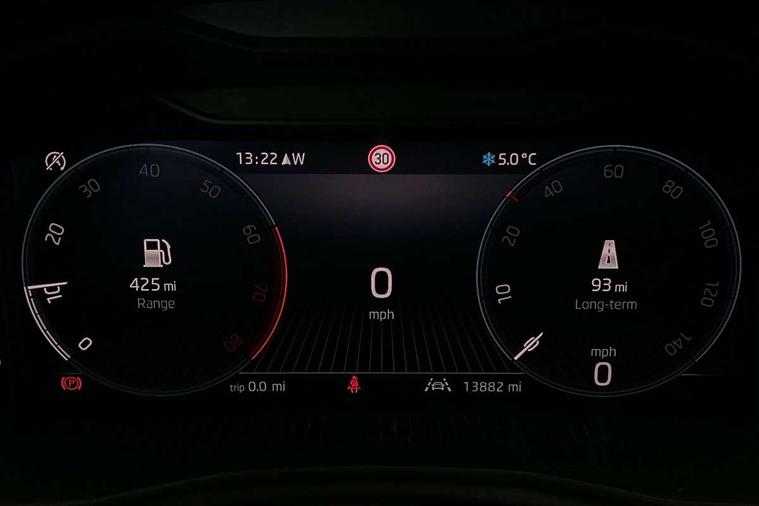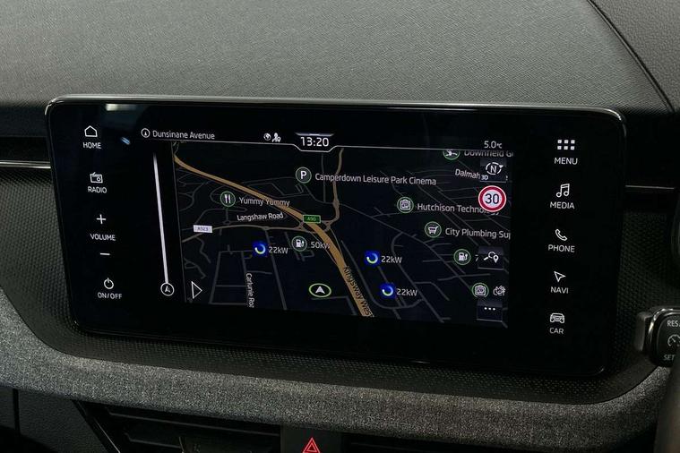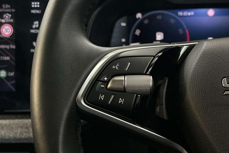 Advanced driver attention and drowsiness monitor, Bluetooth, e-Call (emergency call), Front assist system, PAS, Rear parking sensors, Rear view camera, Speed limiter, Tailgate, Traffic sign recognition, Virtual Cockpit - 10.25" digital display, Voice control system, Wireless smartlink, 4 USB C ports, 8 Speakers, 9.2" Skoda navigation display, DAB radio, Auto dimming rear view mirror, Automatic headlamp activation with Coming home and Leaving home feature, Automatic high/low beam, Body colour bumpers, Body colour door mirrors and handles, Chrome moulding around grille, Front and rear electric windows, Full LED headlights, Heated rear window, LED 3rd brake light, LED brake lights, LED daytime running lights, LED front turning lights, LED high beam, LED low beam, LED taillights, Rear LED fog light, Rear side wing doors, Rear wiper, Tinted windows, Unique dark chrome design logo on alloy wheels, 12V socket in luggage compartment, 3 seat bench in 2nd row, Black / Grey armrest stitching, Black hotstamping, Cargo elements, Chrome inner door handles, Door inserts in satin black, Driver and passenger sun visors with vanity mirror, Dual zone climate control, Front and rear roof lights, Front centre armrest, Front head restraints, Glasses storage in roof liner, Height adjustable driver seat, Height adjustable passenger seat, Ice scraper, Illuminated glove compartment, Inner circulation control with pollen filter, ISOFIX for front passenger seat, Isofix preparation for back seats, Leather gearknob and handbrake lever, Loft cloth upholstery, Luggage net under rear parcel shelf, Manual lumbar support for front seats, Net package and top tether hooks in boot space, Pearl grey ceiling, Pocket on the back of both front seats, incl. mobile phone pockets, Single front passenger seat, Skoda lettering on steering wheel, Textile floor mats, Third rear headrest, Ticket holder, Top tether for front passenger seat, Umbrella in driver's door, 3x3 point rear seatbelts, ABS, Child locks, Curtain airbags and front side airbags, Disc brakes, Driver and front passenger airbags, ESP, Hill hold control, Manual leather parking brake, One tone horn, Passenger airbag switch off function, Seatbelt reminder for driver and front passenger, Tyre pressure monitoring system, Anti theft alarm system with interior monitoring, backup horn and towing protection, Anti-theft wheel bolts, Remote central locking with 2 remote folding keys, SAFE function for remote central locking, Decord pad, door inserts Kota uni,