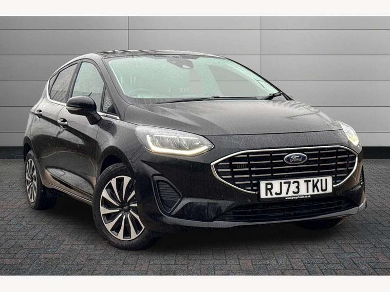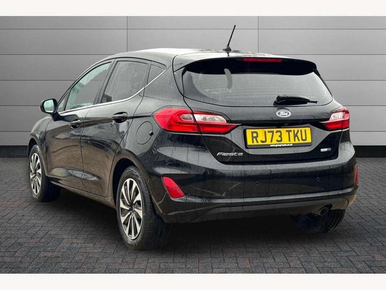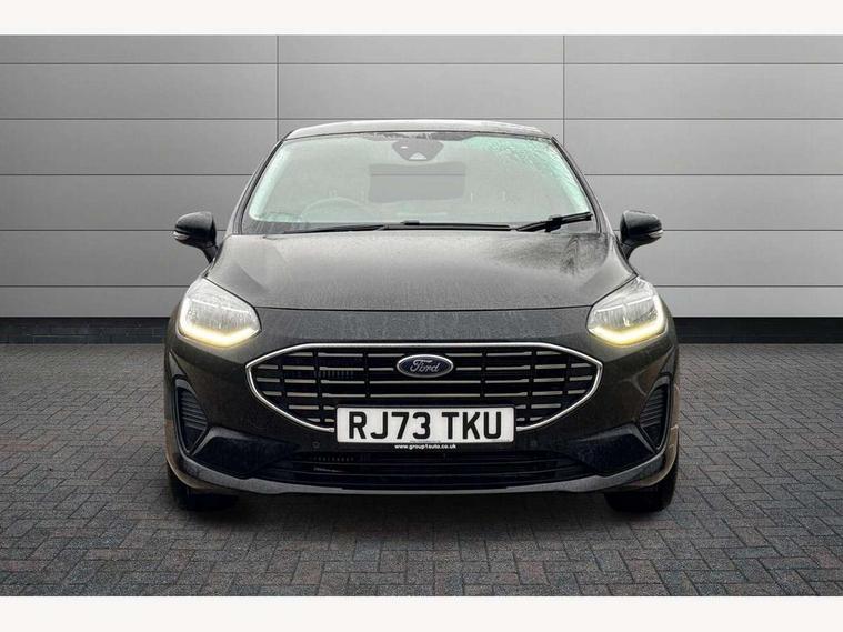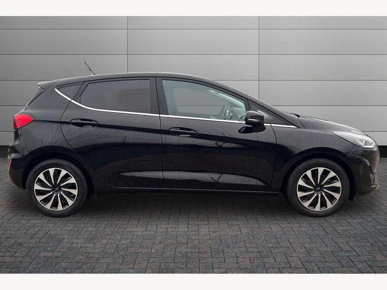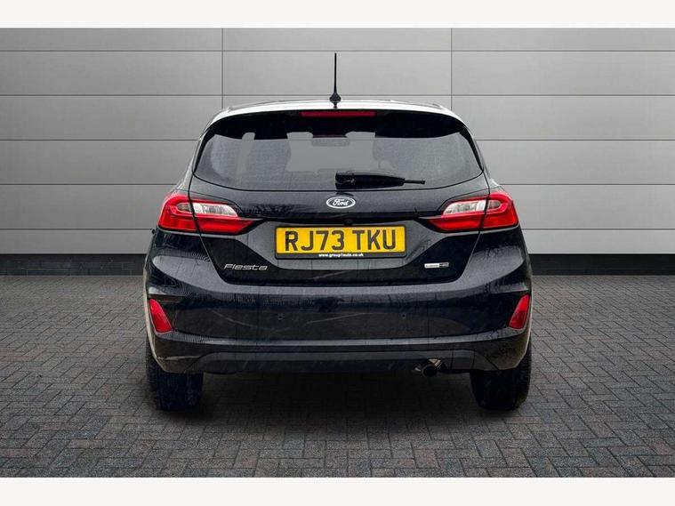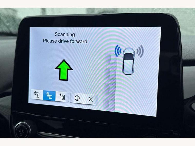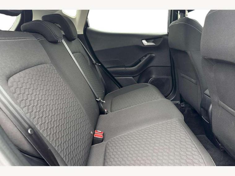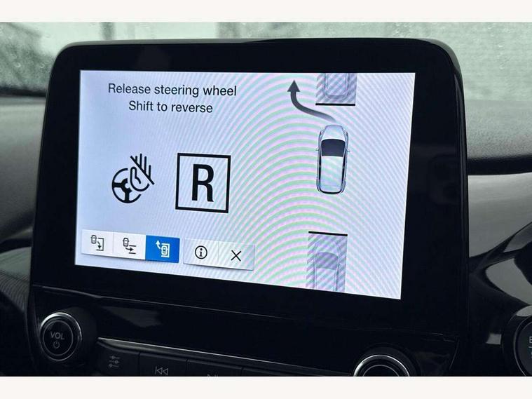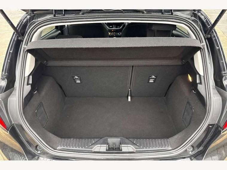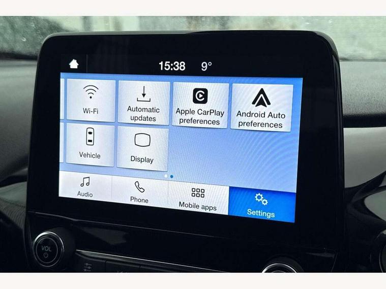 Bluetooth system, Electric power steering, Ford easy fuel, Ford SYNC 3 Navigation system incl 8" touchscreen, 7 speakers, FordPass connect, Apple carplay, android auto, voice control and emergency assistance, Rear parking distance sensors, Selectable drive modes (Normal, Sport, Track), Trip computer, 2 USB ports, Auxiliary input socket, DAB Digital radio, Steering wheel mounted controls, Body colour bumpers, Body colour door handles, Body colour rear spoiler, Body coloured electrically operated and heated door mirrors with side indicators, Chrome beltline trim, Chrome front grille, Chrome lower window surround, Cornering front fog lights, Electric front windows/one touch facility, Electric rear windows, Quickclear heated windscreen, Rain sensing wipers and auto dimming rear view mirror, Rear privacy glass, Rear wiper, 3 spoke leather trimmed steering wheel with audio control, 60/40 split folding rear seat, Adjustable head restraints, Boot carpet, Centre console with opening armrest, 2x cupholders, 12v and USB, Chrome inner door handles, Cloth upholstery, Footwell illumination, Front floor mats in velour, Front map reading lights, Front seat and rear pockets, Illuminated glovebox, Leather gaiter, Load area light, Luxury woven headliner, Manual 2 way passenger seat adjust, Manual 4-way driver seat adjust, Manual air conditioning, Overhead console with sunglasses holder, Pollen filter, Rake/reach adjustable steering wheel, Sensico wrapped steering wheel, NCAP Pack - Fiesta, 3 point seatbelts on all rear seats, ABS+EBA, Curtain airbags, Driver and passenger airbags, Drivers knee airbag, Electronic stability control with hill start assist, Front passenger airbag deactivation, Front side airbags, Seatbelt warning, Two tone horn, Tyre pressure monitoring system, Keyless start with 'Ford Power' starter button, MyKey system, Remote central locking & engine immobiliser, Thatcham Cat.1 alarm, 16" 10 spoke alloy wheels,