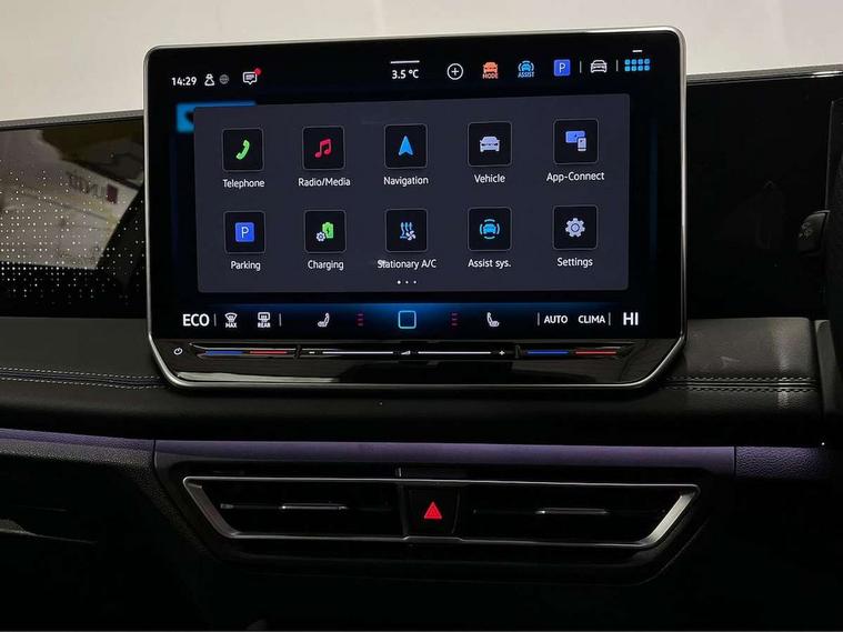 Adaptive cruise control (ACC), Advanced driver attention and drowsiness monitor, Bluetooth mobile phone interface, Car2X technology, Digital Cockpit Pro - 10.25" high resolution dash display screen with customisable menus and information, Dynamic road sign display, E-Sim card for online connectivity, eCall emergency call service, Front Assist - Autonomous emergency braking with pedestrian and cyclist monitoring, Lane change system, Side assist, Rear traffic alert and Exit warning system, Lane keeping system Lane Assist, Multifunction front facing camera, Oncoming vehicle braking when turning including swerve support, Park assistance plus with front and rear parking sensors, Power assisted steering with speed sensitive, Start/stop system with regenerative braking, Warning signal and warning light for front and rear seatbelts not fastened, Wireless App-Connect, Adaptive chassis control DCC pro includes driving mode selection, Charging cable Mode 3 Type 2 / 3 (16A), Front shock absorption, Front wheel drive, Rear shock absorption, Digital radio reception (DAB), Diversity antenna for FM reception, Air intake with Chrome trim, Ambient lighting with logo projection, Auto dimming interior rear view mirror, Automatic headlight control system, Body coloured door handles, Chrome moldings on the side windows, Coming/leaving home lighting function, Heat insulating glass in side and rear windows, Heated rear window, Heated windscreen washer jets, High level 3rd brake light, Illuminated door handle recesses, Illuminated lightline between headlamps, Laminated safety glass winshield, Rain sensor windscreen wipers, Rear fog light on one side, reversing light on both sides, Rear side wing doors, Rear wiper, 12V outlet in center console rear and in luggage compartment, 12V socket in centre console, 3 bench rear seats in 2nd row, Air care climatronic 3 zone air conditioning system with rear air conditioning control panel, Black roof lining, Brushed stainless steel pedals, Carpet mats, front and rear, Centre console with illuminated storage compartment with sliding cover and two drinks holders, Chrome elements on the mirror switch and power window switches and door pulls, Door and side trim panel with leatherette insert, Door sill protectors, Front centre armrest, Interior ambient lighting with 30 colour options, ISOFIX anchors for child seats on outer rear seats and front passenger seat. Compatible with i-Size, Mechanical rear seat release, Power adjustable lumbar support in front, Rear bench seat, split folding, longitudinally movable and folding with load-through hatch and centre armrest, Single front passenger seat, Soul headlining, Sports comfort seats in front, Sun visors with illuminated vanity mirrors, Three rear head restraints, Variable luggage compartment floor, 3 point seat belt for centre rear seats, 3 Point seat belts in front with pretensioners, 3 point seatbelts in outer rear with ECE label, Driver and front passenger airbag with front passenger airbag deactivation, Electronic parking brake with auto hold, Front and rear curtain airbags, Front and rear side airbags, Front centre airbag, Front disc brakes, Manual child proof rear door locks, Rear disc brakes, Two tone horn, Warning triangle, Anti theft wheel bolts, Decorative inserts, Interior door handle in matte chrome, Soul instrument panel, Airstop tyres, Tool kit for tyre mobility set, Tyre mobility kit including compressor and sealing foam,