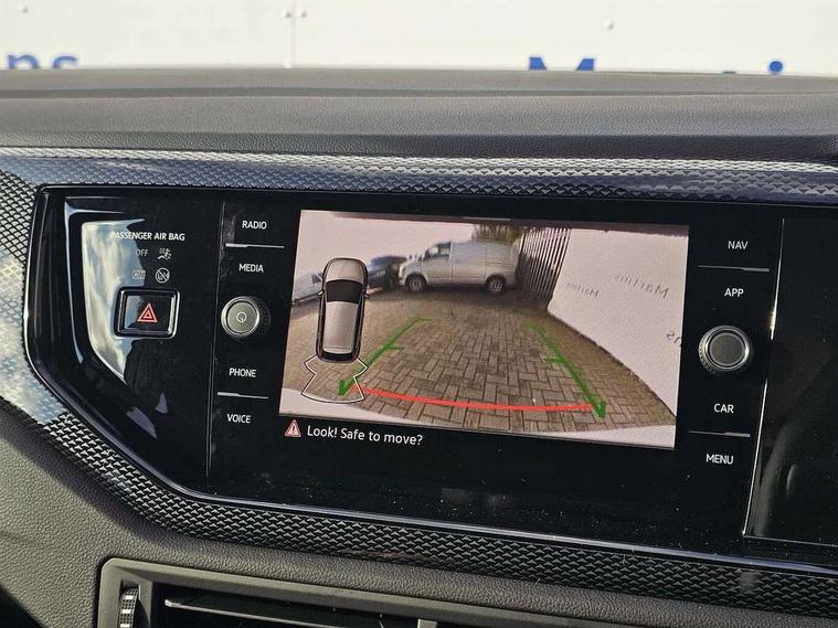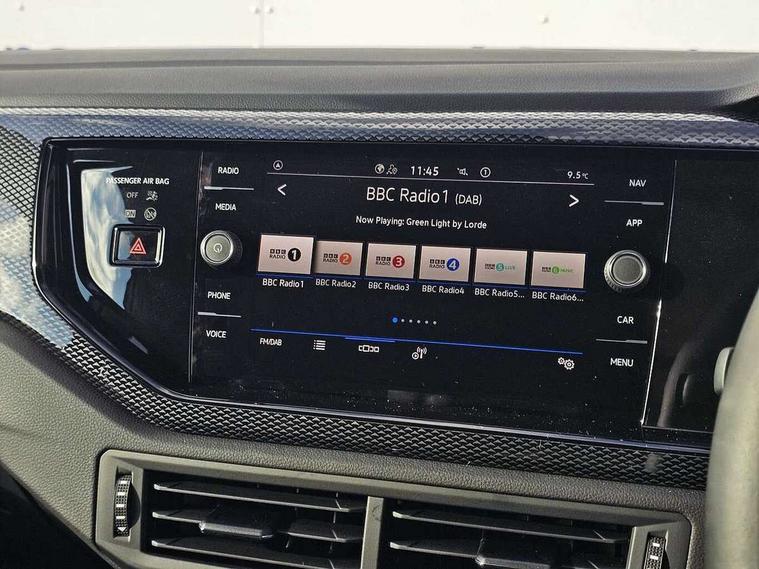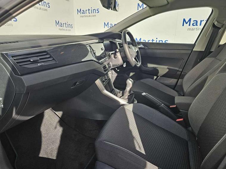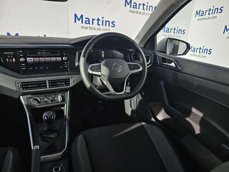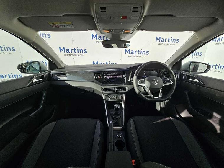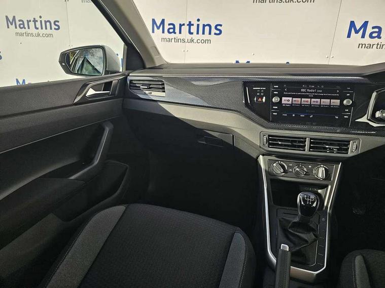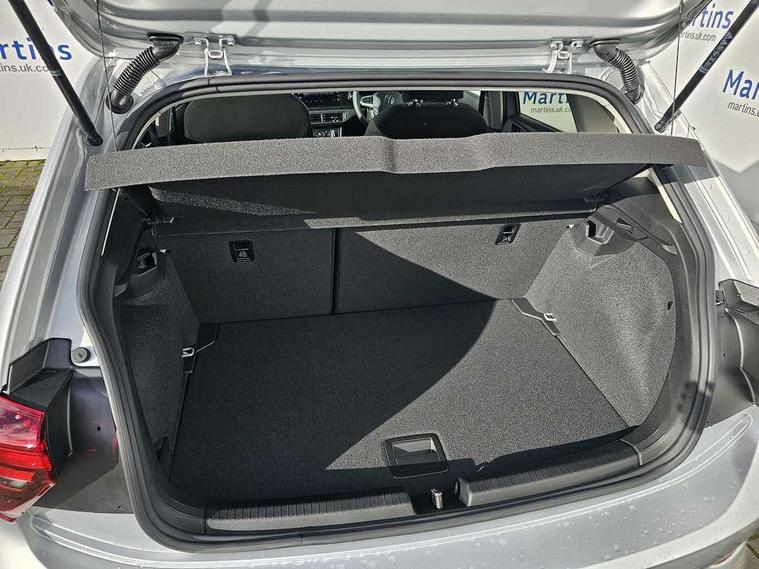 Adaptive cruise control without follow-to-stop and speed limiter, Advanced driver attention and drowsiness monitor, Bluetooth mobile phone interface, Dynamic road sign display, Emergency call service, Mobile phone preparation with inductive charging function, Multifunction front facing camera for distance control, Power assisted speed sensitive steering, Preparation for navigation system with media and internet package, Preparation for We connect and We connect plus, Rear view camera, Speedo and rev counter, electronic odometer, trip, service interval display and exterior temperature gauge, Standard rear axle, Travel Assist - Lane keeping system and traffic jam assist, Travel assist including emergency assist, Trip computer, Warning signal and warning light for front and rear seatbelts not fastened, Washer fluid level indicator, Wireless app connect, Front wheel drive, Rear shock absorpion, Start-stop system with battery regeneration (recuperation - energy recovery during braking), DAB Digital radio, Diversity antenna for FM reception, Automatic dimming interior rear view mirror, Automatic headlight control with LED separate daytime running lights with coming/leaving home function, Body colour bumpers with chrome inserts, Body colour door handles, Body colour door mirrors, Electric front windows, Engine badge deletion, Headlight range adjustment, Heat insulating and laminated safety glass windshield, LED Headlights, LED rear combination lamps, Power folding adjustable/heated exterior mirrors and front passenger exterior mirror lowering function, Rain sensor, Rear electric windows, Rear fog light, Rear side wing doors, Rear tinted glass from B-pillar backwards approx 65% tinted, Rear windscreen washer and wiper with interval delay, Third brake light, 12V power socket in centre console, 2 front and 2 rear reading lights with switch off delay and dimmer, 2 USB-C ports in the front, 2 USB-C charging sockets on the center console in the rear, 3 rear head restraints, 60/40 split folding rear seat and rear seat bench not split, Carpet mats, front and rear, Ceramique roof lining, Chrome plated radiator grille inserts, air vent surrounds and light switch surrounds, Door and side trim panel, Driver and front passenger seat height adjustment, Driver/passenger sunvisors with illuminated vanity mirrors, Front centre armrest, Front seat backrest storage pockets, Front standard seats, Handbrake lever handle in leather, Hartley/Thomas cloth upholstery, Headliner in recycled material, Isofix child seat preparation easy-fit (for two outer rear seats, and front passenger seat) compatible with I-size, Leather trimmed gear knob, Luggage compartment cover, Luggage compartment lighting, Removable luggage compartment floor, Single front passenger seat, Standard climatic zones, Standard pedal cluster, Three spoke leather wrapped multifunction steering wheel, Light and vision pack - Polo, 3 point height adj front seatbelts + pretensioners, 3 point seat belt for centre rear seat, 3 point seatbelts, outer rear with ECE lable, ABS, Driver and front passenger airbag with front passenger airbag deactivation, Drivers and front passengers safety optimised head restraints, ESC (Electronic stability control) + EDL (Electronic Differntial lock) and ASR (Traction control), Extended and predictive pedestrian/ cyclist protection, Front assist with autonomous emergency braking (for Adaptive Cruise Control ACC up to 130 mph), Front curtain and side airbags with center airbag, Front disc brakes, Hill hold control, Manual child lock in rear doors, Rear drum brakes, Single tone horn, Tyre pressure loss indicator, Alarm with interior protection, Anti-theft alarm system with interior monitoring, backup horn, and towing protection, Anti-theft wheel bolts, Electronic engine immobiliser, Lava stone black gloss/matt decorative inserts in dash and front door panels, 16" Torsby alloy wheels, Low rolling resistance tyres,