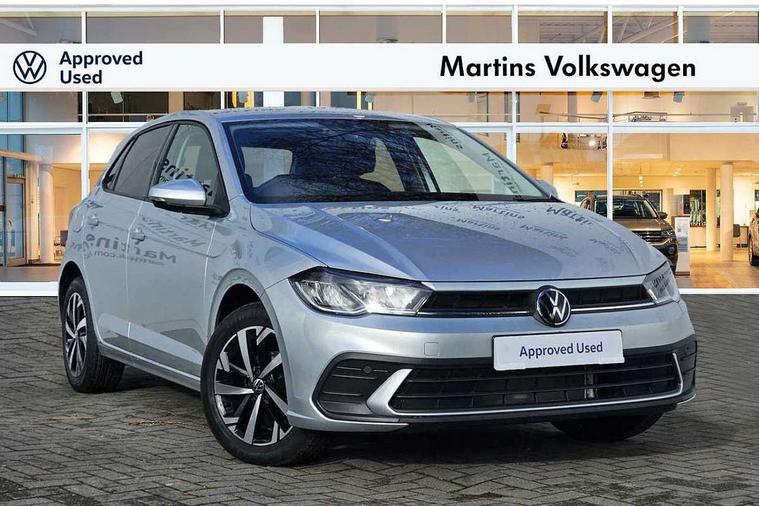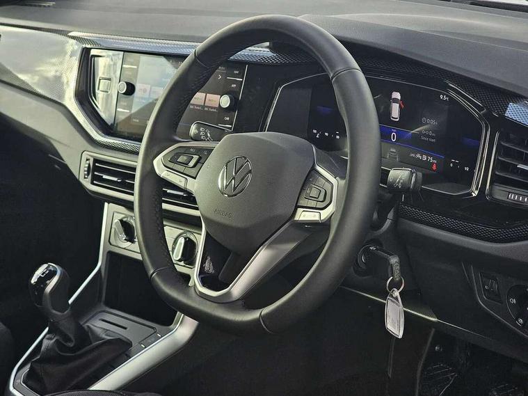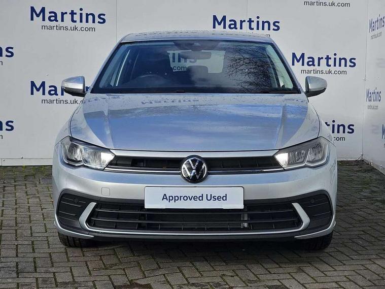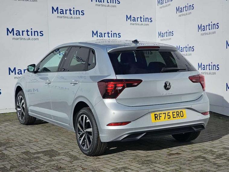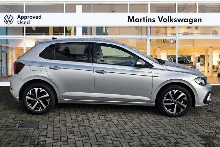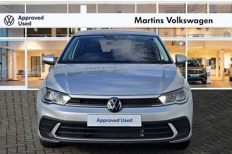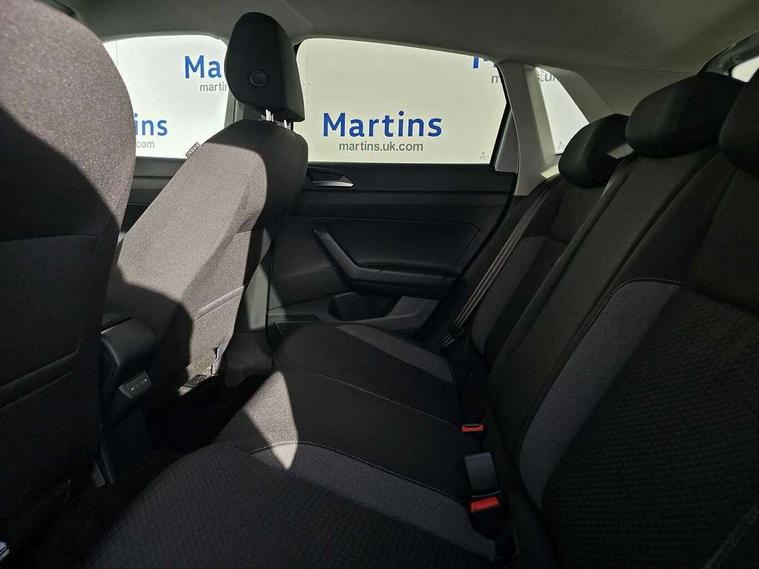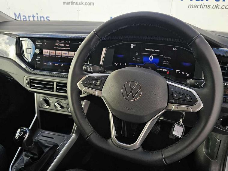 Adaptive cruise control without follow-to-stop and speed limiter, Advanced driver attention and drowsiness monitor, Bluetooth mobile phone interface, Dynamic road sign display, Emergency call service, Mobile phone preparation with inductive charging function, Multifunction front facing camera for distance control, Power assisted speed sensitive steering, Preparation for navigation system with media and internet package, Preparation for We connect and We connect plus, Rear view camera, Speedo and rev counter, electronic odometer, trip, service interval display and exterior temperature gauge, Standard rear axle, Travel Assist - Lane keeping system and traffic jam assist, Travel assist including emergency assist, Trip computer, Warning signal and warning light for front and rear seatbelts not fastened, Washer fluid level indicator, Wireless app connect, Front wheel drive, Rear shock absorpion, Start-stop system with battery regeneration (recuperation - energy recovery during braking), DAB Digital radio, Diversity antenna for FM reception, Automatic dimming interior rear view mirror, Automatic headlight control with LED separate daytime running lights with coming/leaving home function, Body colour bumpers with chrome inserts, Body colour door handles, Body colour door mirrors, Electric front windows, Engine badge deletion, Headlight range adjustment, Heat insulating and laminated safety glass windshield, LED Headlights, LED rear combination lamps, Power folding adjustable/heated exterior mirrors and front passenger exterior mirror lowering function, Rain sensor, Rear electric windows, Rear fog light, Rear side wing doors, Rear tinted glass from B-pillar backwards approx 65% tinted, Rear windscreen washer and wiper with interval delay, Third brake light, 12V power socket in centre console, 2 front and 2 rear reading lights with switch off delay and dimmer, 2 USB-C ports in the front, 2 USB-C charging sockets on the center console in the rear, 3 rear head restraints, 60/40 split folding rear seat and rear seat bench not split, Carpet mats, front and rear, Ceramique roof lining, Chrome plated radiator grille inserts, air vent surrounds and light switch surrounds, Door and side trim panel, Driver and front passenger seat height adjustment, Driver/passenger sunvisors with illuminated vanity mirrors, Front centre armrest, Front seat backrest storage pockets, Front standard seats, Handbrake lever handle in leather, Hartley/Thomas cloth upholstery, Headliner in recycled material, Isofix child seat preparation easy-fit (for two outer rear seats, and front passenger seat) compatible with I-size, Leather trimmed gear knob, Luggage compartment cover, Luggage compartment lighting, Removable luggage compartment floor, Single front passenger seat, Standard climatic zones, Standard pedal cluster, Three spoke leather wrapped multifunction steering wheel, Light and vision pack - Polo, 3 point height adj front seatbelts + pretensioners, 3 point seat belt for centre rear seat, 3 point seatbelts, outer rear with ECE lable, ABS, Driver and front passenger airbag with front passenger airbag deactivation, Drivers and front passengers safety optimised head restraints, ESC (Electronic stability control) + EDL (Electronic Differntial lock) and ASR (Traction control), Extended and predictive pedestrian/ cyclist protection, Front assist with autonomous emergency braking (for Adaptive Cruise Control ACC up to 130 mph), Front curtain and side airbags with center airbag, Front disc brakes, Hill hold control, Manual child lock in rear doors, Rear drum brakes, Single tone horn, Tyre pressure loss indicator, Alarm with interior protection, Anti-theft alarm system with interior monitoring, backup horn, and towing protection, Anti-theft wheel bolts, Electronic engine immobiliser, Lava stone black gloss/matt decorative inserts in dash and front door panels, 16" Torsby alloy wheels, Low rolling resistance tyres,