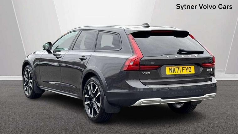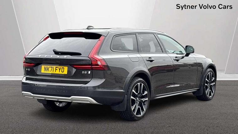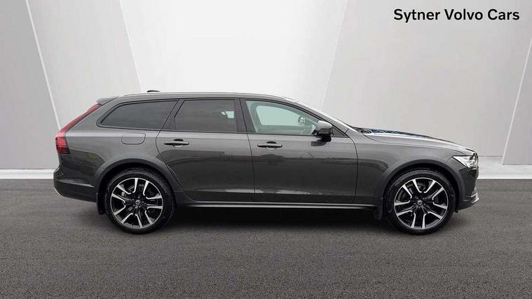 12.3" Progressive Driver Display, 9" centre console touch screen, Adjustable steering wheel force, Bluetooth Handsfree Phone Connection, Drive mode settings, E-call, Google automotive services - Enabled entertainment apps, navigation with google maps, voice recognition with google assistant, Lane keep assist with driver alert control, Oncoming Lane Mitigation, Power operated tailgate, Speed limiter, Speed sensitive steering, Volvo on call, Wireless/Inductive Mobile Phone Charging, 65mm additional ground clearance, 8 speed automatic transmission with start/stop + manual change functions, DAB Radio (Digital Audio Broadcasting), Steering wheel remote infotainment controls, Adaptive brake lights with high level LED brake lights, Auto dimming interior + exterior mirrors, Automatic headlamp levelling, Automatic LED Headlights + Active high beam incorporating daytime running lights, Charcoal lower grille, Charcoal wheel arch extensions, Colour coordinated auto folding and heated power door mirrors, Cross Country embossed rear bumper, Enlarged door mirrors, Front and rear power windows, High gloss black front grille with chrome details, High gloss black window trim, Home safe and approach lighting, Integrated roof rails in silver, Puddle lights in exterior door handles, Rain sensor with automatic windscreen wiper activation, Rear LED lights with sequential indicators, Rear side wing doors, Rear wiper, Roof antenna, Roof spoiler, Silver front and rear skid plate, Visible VIN plate, 3 seat bench in 2nd row, 3 spoke leather steering wheel with chrome trim, A-pillar parking ticket holder, Ambient door and instrument panel lighting, B Pillar ventilation, Blond headlining, Bright metal luggage threshold, Cargo divider with grocery bag holder, Center Console Cupholders and Storage, Driver's side lower dashboard storage compartment, Extended front seat cushions, Floor mats, Front 12V socket tunnel console and cargo area, Front centre armrest storage illumination, Front footwell and side step illumination, Front head restraints, Front/rear door pockets and front cupholder illumination, Front/rear reading lights, Heated front seats, Height/reach adjustable steering column, Illuminated front and rear tread plates, Illuminated glovebox, Illuminated luggage compartment, Illuminated tailgate, Illuminated vanity mirrors + ticket holder, Integrated sun curtains in rear doors, Isofix system on outer rear seats, Leather upholstery with unique stitching, Load cover, Load protection net, Off-black finish in steering wheel, Power driver seat with memory for seat and exterior mirrors, Power Folding Rear Seat Backrests and Headrests, Rear armrest with storage + cupholders, Rear footwell and side step illumination, Single passenger seat, Ski hatch, Underfloor cargo storage, Versatile split folding rear seat - 60/40, Driver assist pack - V90, 3x3 point rear seatbelts, Active bonnet, City safety with steering support with Pedestrian + cyclist + front collision warning with full auto brake and rear auto brake, Drivers knee airbag, Dual stage driver/passenger airbags, Front seats SIPS airbags, Hill descent control, Hill start assist, IC (Inflatable Curtains) - Full Length, Passenger airbag cut-off device, Power parking brake with auto hold function, Road sign information display, Run off Road Mitigation, Run off Road Protection, Seatbelt reminder and pretensioners for all seats, SIPS (Side Impact Protection System), Slippery road and hazard light alert, Stability and Traction Control with Spin control, Engine Drag Control and Corner Traction Control, Tyre pressure monitoring system, Vehicle deceleration control with Anti-lock Brake System, Electronic Brake Distribution and Emergency Brake Assist, Warning triangle and first aid kit, WHIPS whiplash protection system - front, Anti-theft alarm including immobiliser/volume sensor + level sensor, Care key with user defined top speed, Key integrated remote control central locking + fuel flap with deadlocking system and auto open/close power windows, Keyless drive with Keyless entry and start, Locking wheel nuts, Private locking for tailgate, Tailored Instrument Panel and Door Tops with Contrast Stitching,