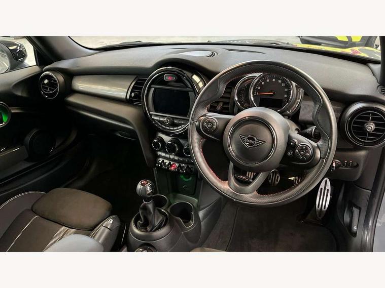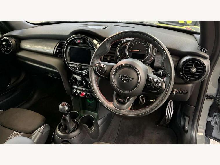 Automatic start/stop function with brake energy recuperation, Compatible mobile phone bluetooth with audio streaming, Electro-mechanical speed dependant steering assistance, Instrument cluster, Mini E-call, MINI TeleServices, On board computer, Service interval indicator, Double Vanos system, Fully variable valve control, High precision injection, Performance Control, 6.5" touchscreen with LED ring, FM tuner and DAB digital radio, Automatic headlight activation switch, Body colour fuel filler cap, Chrome border high gloss black slats radiator grille, Dynamic brake lights, Electric front+rear windows, Heated rear window, Heated windscreen washer jets, John Cooper Works - aerodynamic kit (front and rear apron, spoiler), front and rear sport bumpers and part-painted side sills with door sill finishers, John Cooper Works rear spoiler, LED headlight with closed ring and daytime driving lights, Left exhaust tailpipe with chrome finisher, Metal door sill strips with MINI imprint, Model logo Cooper on right of tailgate, Rain sensor window wipers, Rear fog lights, Rear LED lights with union jack design, Rear window wiper, Side scuttle panel with integrated indicator, Sun/heat protection glass, White indicator lenses, 12V Accessory socket in centre console, 4 lashing eyes in luggage compartment, 60/40 split folding rear seat, Anthracite headlining, Chrome interior highlights, Cupholders, Front and rear head restraints, Front and rear isofix with front passenger airbag deactivation, Glove compartment, Height and length steering column adjustment, Interior lighting with 12 basic colours selectable via toggle switch in roof, John Cooper Works leather steering wheel with contrasting stitching in Chilli Red with John Cooper Works logo, John Cooper Works Logo in seat, Leather gearshift lever and handbrake gaiters, LED reading lights, vanity mirror lights, front foot well light and spotlight on front seats, Manual air conditioning, Mechanical seat adjustment, driver seat height adjust, forward/back and front seats backrest, Mini logo projection on floor from drivers exterior mirror, Multifunction steering wheel, Storage compartments in doors, Sunvisors with vanity mirrors, 3 point seatbelts on all four seats, 6 Airbags - front, side, head and seat belt tensioners, Anti-lock braking system (ABS), DSC - Dynamic Stability Control, Front and rear disc brakes, Hill start assist, Single tone fanfare horn, Tyre pressure monitoring system, Alarm system with tilt sensor, monitoring doors, bonnet interior and tailgate, Electronic vehicle immobiliser, Start/stop toggle with keyless go, Tool kit,