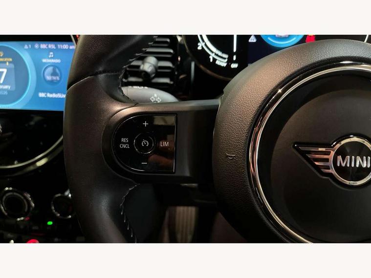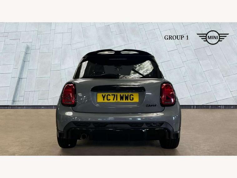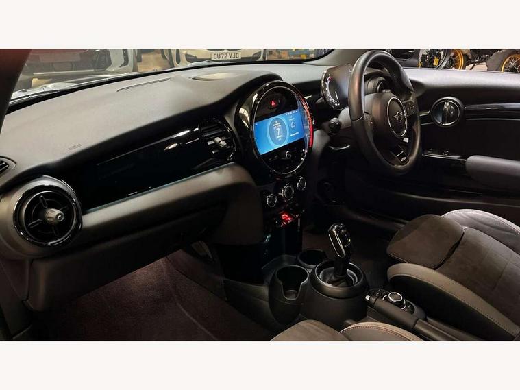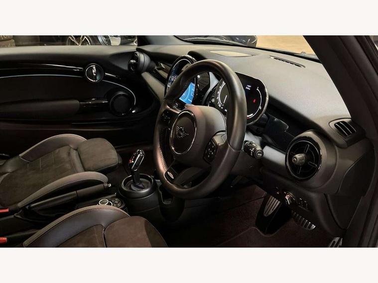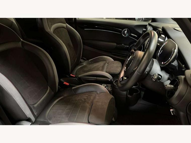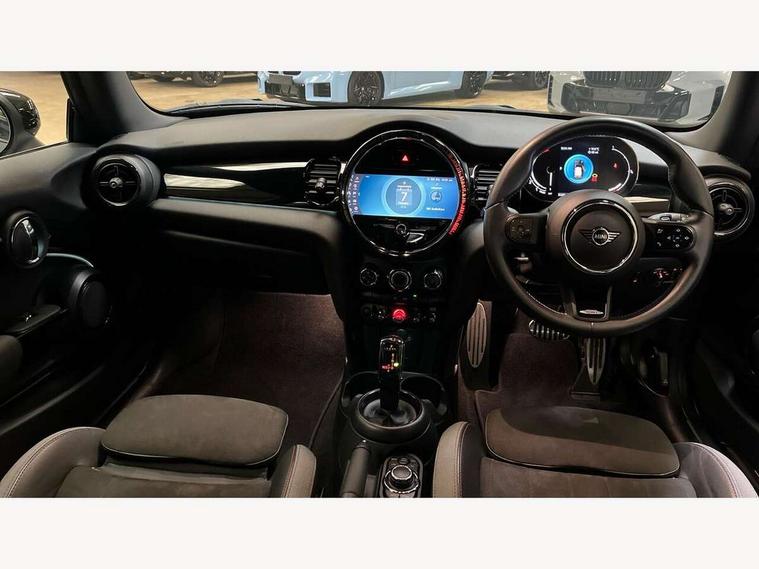 Automatic start/stop function with brake energy recuperation, Compatible mobile phone bluetooth with audio streaming, Cruise control with brake assist, Electro-mechanical speed dependant steering assistance, Flexible car sharing preparation, Instrument cluster, MINI Driving Modes - centre toggle switch to control driving setting (sport, mid and green), Mini E-call, MINI TeleServices, On board computer, Rear park distance control, Service interval indicator, Adaptive suspension, Double Vanos system, Fully variable valve control, High precision injection, Performance Control, Steptronic transmission with double clutch, 4 speakers in front door trims and underneath front seats, 8.8" touchscreen with LED ring, FM tuner and DAB digital radio, Automatic headlight activation switch, Body colour fuel filler cap, Chrome border high gloss black slats radiator grille, Dynamic brake lights, Electric front windows, Exhaust tailpipe on left with chrome finisher, Heated rear window, Heated windscreen washer jets, JCW Aerodynamic kit - Front and rear bumpers with sporty JCW styling and part-painted side sills with MINI John Cooper Works door sill finishers, John Cooper Works rear spoiler, LED headlight with closed ring and daytime driving lights, Metal door sill strips with MINI imprint, Model logo Cooper on right of tailgate, Rain sensor window wipers, Rear fog lights, Rear LED lights with union jack design, Rear window wiper, Side scuttle panel with integrated indicator, Sun/heat protection glass, White indicator lenses, 12V Accessory socket in centre console, 4 lashing eyes in luggage compartment, 60/40 split folding rear seat, Anthracite headliner including grab handles and clothes hooks, Carbon black colour line - Knee roll and door armrest, Chrome interior highlights, Cupholders, Front and rear isofix with front passenger airbag deactivation, Glove compartment, Height and length steering column adjustment, Interior lighting with 12 different colours across the dashboard, underneath door bezel with illuminated laser-engraved design on central display, JCW Sport seats with integrated headrests, adjustable thigh support and John Cooper Works logo, Leatherette gearshift lever and handbrake gaiters, LED reading lights, vanity mirror lights, front foot well light and spotlight on front seats, Manual air conditioning, Mechanical seat adjustment - forward/back & backrest for front seats and driver seat height adjust, Multifunction steering wheel, Passenger seat height adjuster, Storage compartments in doors, Sunvisors with vanity mirrors, Tool kit, Velour floor mats, Walknappa leather steering wheel with grey seam and John Cooper Works badge on Piano Black lower steering wheel spoke, Piano black exterior pack - Mini Hatchback Cooper, 3 point seatbelts on all four seats, 6 Airbags - front, side, head and seat belt tensioners, Anti-lock braking system (ABS), DSC - Dynamic Stability Control, Front and rear disc brakes, Single tone fanfare horn, Tyre pressure monitoring system, Alarm system with tilt sensor, monitoring doors, bonnet interior and tailgate, Electronic vehicle immobiliser, Start/stop toggle with keyless go, Piano black interior trim,