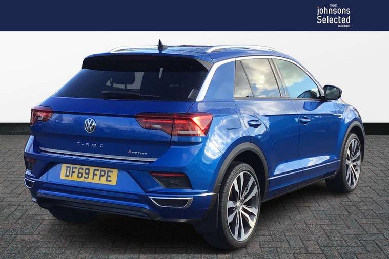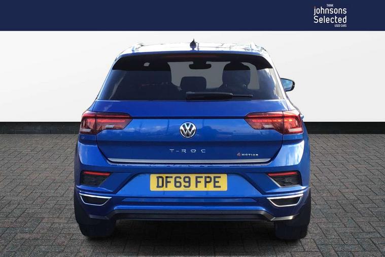 'Lights On' Reminder warning buzzer, 2 USB connection charging sockets, Active Info Display, 10.3" high resolution TFT dash display screen with customised information, Adaptive cruise control with front assist, radar sensor controlled distance monitoring, city emergency braking, App-Connect, Automatic start/stop system, Bluetooth telephone and audio connection for compatible devices, Car information display, Car-Net Security and Service, Discover navigation, 8" touch screen navigation/infotainment system with Car-Net, European map, CD/radio, 2D/3D map and speed limiter, Driver alert system with audible and visual fatigue detection system, Driver tips and journey analysis, Driving profile selection - Eco, normal, sport or individual modes with Individual mode allows for steering, drive and air conditioning settings, Lane assist, Multifunction computer with visual gear change recommendation for fuel consumption, Service interval indicator, Think blue trainer driver tips and journey analysis, Voice activation, Warning sound and light for doors and tailgate open, Warning sound and light for front seatbelts unfastened, 4MOTION active control, Battery regeneration during braking, Four wheel drive, DAB Digital radio, Dynamic navigation based on TMC+, Multi device interface (MDI) with USB connection, Music playback - MP3, WMA and AAC files, Premium USB cable in choice of either Apple or Android smartphone compatibility, SD card slot, Simultaneous pairing of 2 compatible mobile devices, SMS functionality - read, compose and send SMS messages using touch-screen display, Three route options - Fast, Short, Eco, Title and cover art display, Auto dimming interior rear view mirror, Black grained lower door protectors, Body colour door handles, Body colour rear roof spoiler, Chrome effect left and right trapezoid exhaust tailpipe fascia surround, Chrome trim on upper and lower radiator grille, Dusk sensor, Electrically foldable, adjustable and heated door mirrors with puddle lights and reverse activated kerb-view adjustment on passenger's door mirror, Front and rear electric windows, Front fog lights with static cornering function, Front windscreen wiper with intermittent wipe and 4 position delay, Fully galvanised body, Heated rear window, High level 3rd brake light, LED darkened rear light clusters, LED rear number plate lights, Manual coming/automatic leaving home lighting function, Rain sensor, Rear tinted glass from B-pillar backwards approx 65% tinted, Rear wash/wipe with intermittent wipe setting, 12V socket in centre console storage area, 2 Front and rear reading lights incorporating LED technology, 3 rear head restraints, 4 load lashing points in luggage compartment, Aluminium pedals, Ambient lighting in front footwell and light strips below trim in front doors, Black roof lining and sun visors, Branded points of interest, Carbon flag cloth upholstery, Climate control - 2 zone electronic air conditioning with automatic air recirculation and allergy filter, Drawer under drivers seat, Front and rear carpet mats with contrast stitching, Front centre armrest with storage compartment, longitudinal and height adjustable and two rear air vents, Front cupholders x 2, Front footwell illumination, Front seat back storage pockets, Front sports seats with R-Line logo on seat backrest, Glovebox, Height adjustable front seats, Height/reach adjust steering wheel, Illuminated vanity mirrors, Instrument lighting, white adjustable panel illumination, Interior light delay, Isofix easy fit child seat preparation for 2 outer rear seats, Load through provision with single cup holder when folded down, Luggage compartment cover, removable, Luggage compartment lighting, R Line badge, Split folding rear seat backrests with centre armrest, Storage compartment in left and right luggage area, Storage compartment in rear doors, Storage compartments in driver and front passenger doors, Three spoke multifunction leather trimmed steering wheel including gear knob and paddle shift with aluminium inserts contrast stitch and R Line logo, Unique R Line door sill protectors, R line styling pack - T-Roc, Winter pack - T-Roc, 3 rear three point seatbelts, ABS, Curtain airbags, Driver and front passenger safety-optimised head restraints, Drivers and front passengers airbags with passengers deactivation switch, Electronic parking brake with auto hold, Electronic stability control (ESC) includes ASR, EDL, EDTC and trailer stabilisation function, Front seat side impact airbags, Predictive pedestrian protection, Rigid safety cell with front and rear crumple zones, Three point height adjust front seatbelts + pretensioners, Tyre pressure loss indicator, Ventilated front and rear disc brakes, Volkswagen roadside assistance, Alarm with interior protection and deactivation via infotainment system, Electronic engine immobiliser, Remote central locking with 2 remote folding keys, Shadow steel decorative inserts in dash and door panel, 19" Suzuka alloy wheels with low rolling resistance tyres and anti wheel bolts, Space and weight saver spare wheel,