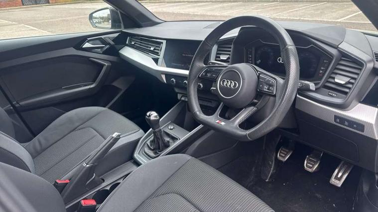 10.25" Digital instrument cluster display classis style instrument dials + speed, odometer, time, outside temperature, telephone menu + fuel level warning, Audi drive select - power steering assistance + engine, Audi smartphone interface with connect compatible smartphone via USB directly MMI display + Nav, music, third party apps controlled via MMI controller, Automatic start/stop system, Bluetooth interface, Cruise control, Driver's information system, Electromechanical power steering, Emergency e-call, Lane departure warning system, Rear parking sensor, Service interval indicator, Speed limiter, Voice control system, Washer fluid level indicator, Sports suspension, 2 x USB type C connection points, 6 passive loudspeakers, DAB Digital radio, MMI radio plus with 10.1" colour MMI display screen and MMI touch, Auto dimming rear view mirror, Black side skirts, Body coloured bumpers, Door sill trims with aluminium inlays and logo, Electric front and rear windows, Electrically adjustable, heated, folding door mirrors with integrated LED side indicator, Front side air inlets in grained matt black and C frame in anthracite black, Front wing badges, Heat insulating glass windscreen and side windows, Heated rear windscreen, High level LED brake light, LED headlights with LED rear lights + dynamic rear indicators + headlight adjustment and high beam, turning light + LED daytime running lights, Privacy glass, Rain and light sensors, Rear fog lights, Rear side wing doors, Rear wiper, Side front spoiler lips in grained matt black, 12V socket in centre console with two cup holders, 3 rear seats with headrests, 3 seat bench in 2nd row, 3 spoke flat bottomed multi-function plus leather steering wheel with S badging, grips in preforated leather and contrast stitching, 40:60 Split folding rear seat or folded fully, Black cloth headlining, Driver and passenger seat with manual height adjust with forward and backwards adjustment, Front and rear black floor mats with contrast stitching in fine silver, Front head restraints, Front passenger seat, Height and reach adjustable steering wheel, ISOFIX child seat mounting for front passenger and outer rear seats including top tether attachment point of outer rear seats, Leather gear knob with aluminium trim, Leather handbrake grip, Luggage compartment light with front and rear reading lights, Manual air conditioning, Manually adjustable lumbar support in front seats, Stainless steel pedals, Black styling pack - A1 Sportback Black Edition, LED interior lighting pack - A1, Luggage compartment pack - A1, 3x3 point rear seatbelts, Audi pre-sense front with pedestrain and cyclist recognition, Brake assist function, Driver and front passenger airbag with front side and head airbags, Electronic Stability Control including ABS, EBD, ASR and EDL, Front passenger airbag deactivation switch, Hill hold assist, Manual rear child locks, Seatbelt height adjustment for front seats, Seatbelt monitoring, Tyre pressure warning light, Warning triangle and first aid kit, Anti theft alarm, Anti theft wheel bolts and loose wheel warning, Immobiliser, Remote central locking with 2 foldaway keys, Aluminium trim for control switches, air vents and digital instrument cluster, Black dashboard, Silver grey inlays polygon structure in diamond paint finish, Structured grey accent areas including air vents, door handle recesses and centre console in quartz paint finish,