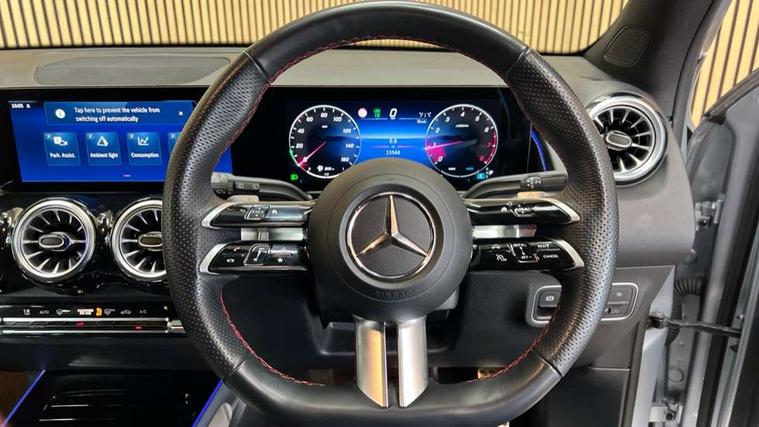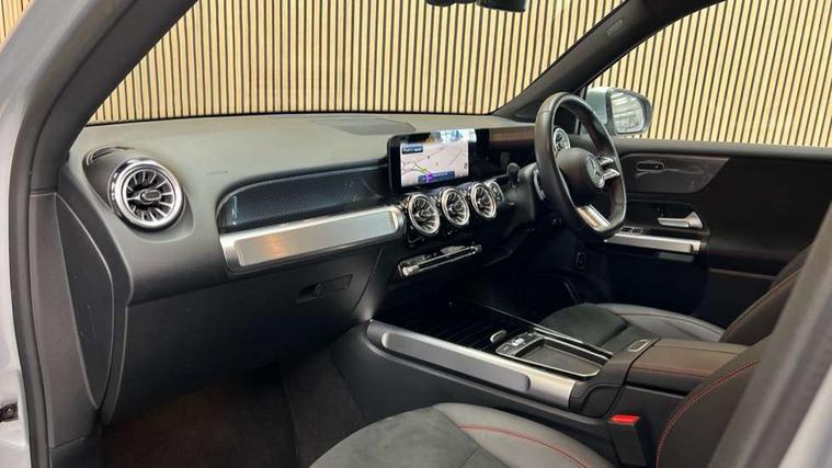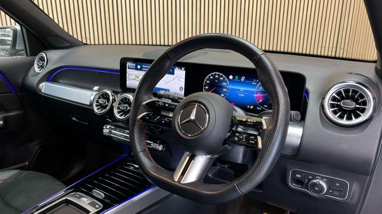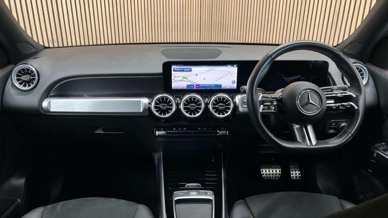 10.25 inch touchscreen central media display, 10.25" Digital instrument cluster display screen, Attention assist - Monitors steering behaviour and long journey fatigue, Blind spot assist, Bluetooth connection, Brake pad wear indicator warning light, Car wash mode, Direct steering, DYNAMIC SELECT with a choice of driving modes (ECO, Comfort, Sport and Individual), ECO start/stop function, Exit warning function, Fingerprint scanner, Fluid level warning indicator for fuel, oil, coolant and washer fluid, Hard disk navigation, Hey Mercedes Voice activation, Lamp failure indicator, Lane keep assist, MBUX navigation premium, Mercedes me connect including emergency call system, accident recovery, breakdown and maintenance management, Mercedes me remote services, Outside temperature gauge, Owners manual and service booklet in English, Pre-installation of private car share, Preinstallation for parking damage notification, Radio aerial integrated into front and rear windshields, Service indicator (ASSYST), Smartphone integration with Apple CarPlay and Android auto, Speed limit assist, Tailgate, Trip computer in multifunction display with current consumption indicator, Wireless charging, Comfort suspension with ride height lowering, Rear axle multi-link, DAB digital radio tuner, MBUX multimedia system, Mercedes Benz sound system (100 W) with 6 speakers, Pre installation for Mercedes Benz Link, Adaptive brake lights, Adaptive high beam assist, AMG front apron with front splitter in the colour of the vehicle with chrome trim element, AMG rear apron with visible tailpipe trim and chrome trim element, AMG specific/dual flow exhaust pipes in chrome (non-functional), Beltline trim and window line trim strip in high gloss aluminium, Black grained side sill trim with chrome inlay, Body coloured door handles, Electric adjustable and heated door mirrors with integrated LED side indicators, Front and rear electric windows, Headlamp assist automatic headlamp activation, Heat insulating dark tinted glass for rear side windows and rear window, Heated glass rear windscreen + timer control, High level LED third brake light, Interior mirror with black reading lamps and frameless, LED high performance headlamps with integrated LED daytime running lights, LED tail lamp, Polished aluminium roof rails, Radiator grille as a diamond grille with chrome pins and central Mercedes star, Rain sensor windscreen wipers with two sensitivity stages, Rear fog lamp, Rear side wing doors, Rear wiper, Single louvre in matt grey with chrome inserts and black highlights, Two visible tailpipe trim elements exhaust, Wheel arch liners in the colour of the vehicle, 3 seat bench in 2nd row, 3 twin spoke flattened multifunction steering wheel in nappa leather - horizontal twin spoke in high gloss black, vertical twin spoke in silver chrome, 4 way adjustable lumbar support, 40:20:40 split folding rear seats, Air vents with silver chrome surrounds, AMG floor mats, AMG sports pedals with brushed stainless steel surfaces and black rubber studs, Artico man-made leather/Microcut microfibre upholstery, Automatic child seat recognition sensor, Black roof lining, Fluorescent jacket, Front and rear headrests, Front centre armrest with stowage, Galvanised steering wheel gearshift paddles in silver chrome, Heated front seats, Height adjustable head restraints, Height/reach adjustable steering column, Interior lighting - 64 colour Ambient lighting, Luggage net on driver/front passenger seat backrest, Single front passenger seat, Sports seats, Stowage compartment in centre console with retractable cover and double cupholder and 12 V socket, Sun visors with illuminated vanity mirrors, THERMATIC automatic climate control, Third row of seats for two people on rear seat, Twin front cup holders, Two outer rear seat isofix and top tether child seat fixing points, Easy pack tailgate, Interior lighting with light and sight pack - GLB, KEYLESS-GO Comfort package - GLB, Mirror package - GLB, Parking Package with reversing camera - GLB, Seat comfort package - GLB, USB package plus - GLB, 3 rear 3 point seatbelts, Active bonnet pedestrain safety measure which detects an impact and raises bonnet by 65mm, Active brake assist includes forward collision warning system with autonomous braking, Adaptive brake assist with hold function and hill start assist, Airbags - kneebag for driver, Anti-lock braking system (ABS) with brake assist, Black seatbelts, Bonnet with power domes, Childproof locks manually operated for rear doors and electrically operated for rear power windows, Crash responsive emergency lighting, Curve dynamic assist, Driver and front passenger head and sidebags, Driver and front passenger windowbags, Dual stage driver and front passenger airbags, Electric parking brake, Electronic stability programme with acceleration skid control, Front and rear seatbelt reminder, Front brake callipers with Mercedes Benz lettering, Front passenger seat occupancy sensor, Perforated front brake discs, Tyre pressure monitoring system, Warning triangle and first aid kit, Guard 360 degree vehicle protection - Anti theft alarm system, tow away protection with visual, acoustic warning and alarm, Interior monitoring system, KEYLESS-GO starting function, Remote central locking and crash sensor with emergency opening function, Thatcham category 1 alarm system with immobiliser and interior protection, Carbon structure trim, 19" AMG 5 twin spoke light alloy wheels aerodynamically optimised, painted in high-gloss black and with a high-sheen finish RTG, Summer tyres, Tirefit tyre sealant kit,
