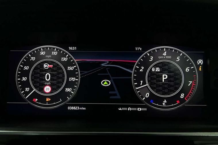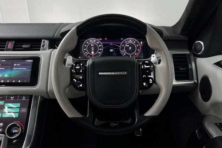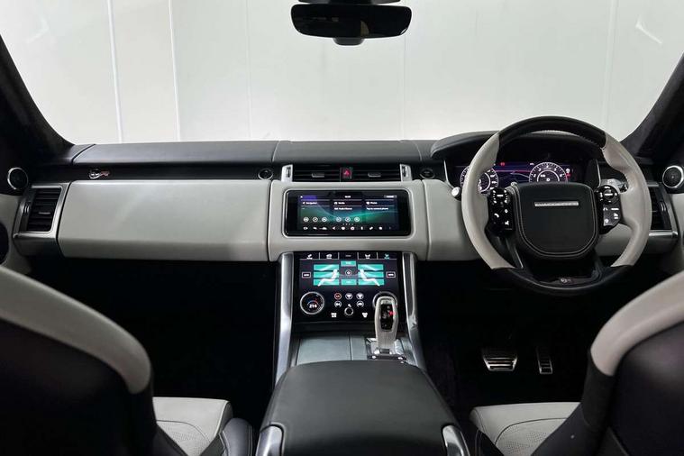 All Terrain Info Centre, Bluetooth connectivity, Clear exit monitor, Driver condition monitor, Incontrol apps in vehicle touchscreen, Incontrol pro services and wifi hotspot, InControl secure Tracker, Interactive Driver display instrument cluster, Mist sensor, Navigation pro system with 10" touch screen, app interface and media storage, Powered gesture tailgate/boot lid, Push button start, Rear traffic monitor, Remote premium - Upgraded Incontrol remote app including remote climate control (engine dependent), remote lock + Unlock and remote beep + flash, Touch pro duo system, Traffic sign recognition with adaptive speed limiter, Trip computer, Adaptive dynamics, All terrain progress control, Configurable dynamics, Electronic active differential with brake torque vectoring, Gradient release control (GRC), SVR sports suspension with dynamic response (active roll control), Terrain Response 2 with dynamic program, Twin speed transfer box, Bluetooth audio streaming, DAB Radio (Digital Audio Broadcasting), Incontrol protect - SOS emergency call with automatic collision detection, optimised assistance call and Incontrol remote app essential, USB/aux input socket, Acoustic laminated front windows, Active exhaust control, Adaptive brake lights, Auto dimming interior rear view mirror, Automatic headlights, Body coloured side sills and bumpers corners, Electric windows with one touch open/close and anti trap, Electrical towing preparation, Follow me home lighting, Front and rear recovery eyes, Headlight power wash, Heated rear window, Heated windscreen includes heated washer jets, Illuminated metal treadplates with brand name script, Laminated front and toughened rear side glass, LED rear lamps, Power fold, auto-dimming, heated door mirrors with memory and approach lights, Quad tailpipes, Rear fog lights, Rear wash/wipe, Remote window closing, Side repeater indicators in mirror, SVR badge, Switchable sports exhaust, Trailer stability assist, Unique light weight exhaust system, 16 way driver/passenger electrically adjustable SVR performance seats with memory, 2 way rear head restraints, 4 way lumbar support with memory function, 60/40 split folding rear seat, Aluminium gear shift paddles, Auto air recirculation, Bright metal foot pedals, Centre console with armrest, Climate control memory, Configurable Ambient interior lighting, Customer configurable single point entry, Driver's footrest, Extended leather upgrade includes door top rolls and leather instrument panel mid section, Front and rear cupholders, Front and rear premium carpet mats, Front door storage space, Front map lights, Front seat back map pockets, Front stowage pocket, Front/rear passenger grab handles, Heated steering wheel, Integrated front head restraints, Isofix child seat preparation, Loadspace light, Loadspace mounting provisions, Lockable glovebox, Multifunction steering wheel, Pollen filter, Reach/rake electric adjustable steering column + entry/exit tilt away, Rear centre armrest, Rear ISOFIX, Roller blind loadspace cover, Sports pedals, SVR leather steering wheel, SVR Performance seats, Three 12V accessory power outlets, 3 point seatbelts on all seats, Anti-lock braking system (ABS), Brake pre-fill technology, Cornering brake control (CBC), Curtain airbags, Customer configurable autolock, DSC - Dynamic Stability Control, Dual stage driver/passenger airbags, EBD - Electronic brakeforce distribution, Electronic parking brake, Electronic traction control, Emergency braking includes city, urban AEB and pedestrian, Front seatbelt pretensioners, Gradient acceleration control, Height adjustable front seatbelts, High speed emergency braking, Hill descent control, Hill launch assist, Low traction launch, Passenger seat occupant detector with front airbags, Power operated child locks, Roll stability control, Seatbelt warning, TPMS (Tyre pressure monitoring system), Immobiliser, Intrusion sensor, Keyless entry, Locking wheel nuts, Perimetric and volumetric anti theft alarm, Remote locking, Tracker system,