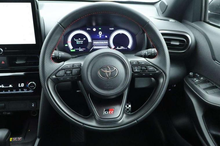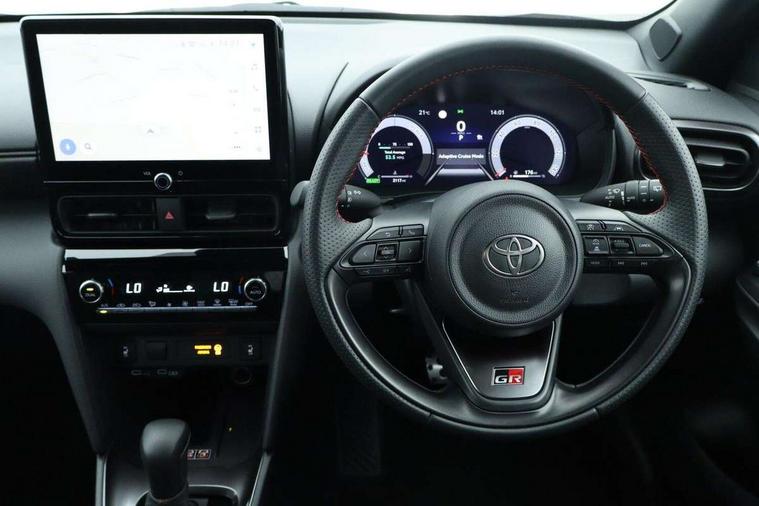 10.5" Multimedia display screen, 10.5" Toyota smart connect+ with navi multimedia system with wireless Smartphone integration incl Apple CarPlay, 12.3" Multi information display screen, Adaptive cruise control, multi info switches on steering wheel, Adjustable speed limiter, Bluetooth connectivity, Color multi-information display, Digital speedometer, Digital tachometer, Drive mode selector, Driver attention alert system, eCall emergency system, Electric power steering, Emergency driving stop system, Full range intelligent adaptive cruise control, Hybrid system indicator, Intersection turn assist, Key reminder warning, Lane trace assist, My T Connected services, Pre-collision system enhanced with emergency steering assist, Reversing camera, Road sign assist - RSA, Static guide lines on reversing camera, Telephone switch on steering wheel, Wireless Mobile Phone Charger, Steering assisted vehicle stability control, 6 speakers, DAB Digital radio, Front USB Type-C connector, Front USB-C device charger, 3rd brake light, Acoustic windscreen glass, Anti-jam protection on power windows, Auto dimming rear view mirror, Auto high beam [AHB] with on/off switch, Auto intermittent windscreen wipers, Automatic headlights, Automatic headlights cut-off, Black door moulding, Black lower front grille, Black protection moulding on side doors, Black rear bumper with diffuser, Black rear under run, Black roof rails, Black wheel arch mouldings, Body colour door handles, Body colour front bumper, Electric adjustable heated door mirrors, Follow me home headlights, Front and rear electric windows with auto up/down function, Gloss black upper front grille, GR Sport meshed lower front grille, GR Sport meshed upper front grille, GR sport scuff plates, Headlight cut off reminder, Indicators integrated on door mirrors, Intermittent rear wiper, LED daytime running lights guide, LED front fog lights, LED front light guide, LED Indicators, LED projector headlights, LED rear lights with sequential indicators, Manual headlight levelling, Noise reduction layer on windscreen, Pre wiring for towing hook, Privacy glass, Rain sensor, Rear side wing doors, Rear spoiler, Rear window defogger, Shark fin antenna, 12v power outlet - front, 12V power point in boot, 2x Rear coat hooks, 3 seat bench in 2nd row, 3 Spoke GR Sport leather steering wheel, 40/60 split deckboard, 40:20:40 split folding rear bench seat, Adjustable rear headrests, Adjustable speed limiter switch on steering wheel, Black roof lining, Boot light, Driver and front passenger personal lights, Driver and front passenger Whiplash injury Lesseing seats, Driver and passenger seatback pockets, Dual zone automatic air conditioning, Fabric door trim, Front console box, Front cup holders, Front door pockets, Front head restraints, Front sport seats, Front/rear assist grips, Gear shift indicator, GR sport floor mats, Heated driver and passenger seats, Height adjustable driver's seat, Height adjustable front passenger seat, Hooks for luggage holding belts, ISOFIX child restraint system, Lane departure alert switch on steering control, Leather gearshift, LED centre room light, Light on driver and passenger sun visor, Manual telescopic and tilting steering wheel, Mirror on driver and passenger sun visor, Nanoe-X air purifier, Pollen air filter, Power adjustable lumbar support on driver seat, Rear cup holders, Rear door pockets, Rear head restraints, Remote air-conditioning system, Single compartment glovebox, Single front passenger seat, Soft tonneau cover, Storage box under boot floor, Ultra suede cloth upholstery, Voice recognition switch on steering wheel, White ambient lighting in centre console, White ambient lighting in footwell, White ambient lighting on front doors, 3x3 point rear seat belts, ABS+EBD+Brake assist, Driver and passenger central airbags, Driver and passenger front airbags, Driver and passenger side airbags, Electronic parking brake, Emergency brake light system (EBS), Front seat belt reminder, Hill start assist control (HAC), Passenger airbag on/off switch, Pre-collision system with pedestrian and cyclist detection, Rear door child safety locks, Rear passenger side airbags, Rear seat belt reminder, Traction control, Tyre pressure warning system, Immobiliser, Intrusion alarm, Keyless smart entry with push button start, Power door locks, Power passenger window lock, Remote door lock, Tyre repair kit,