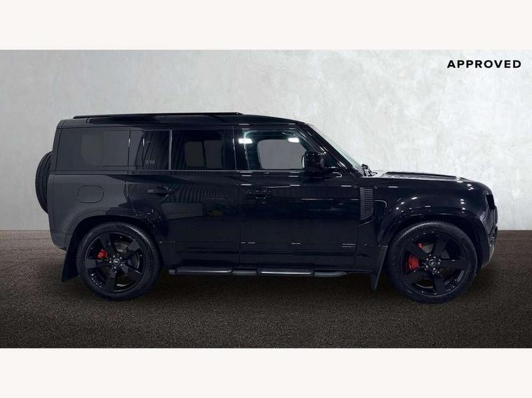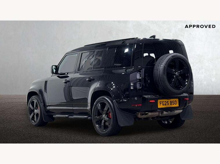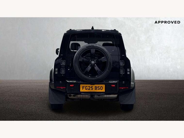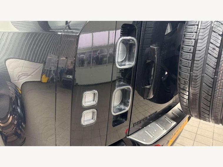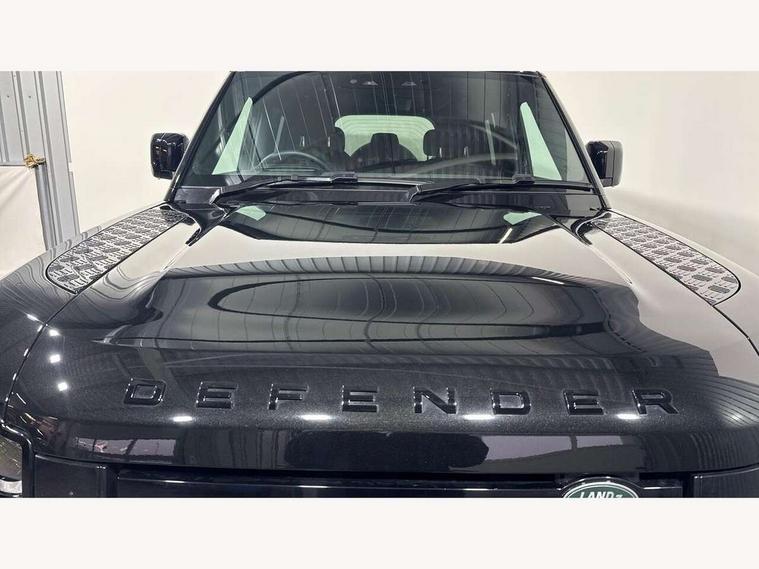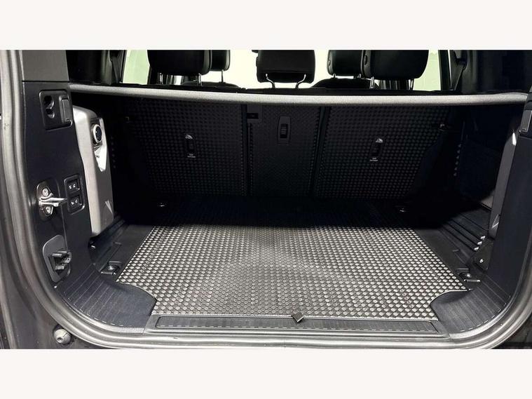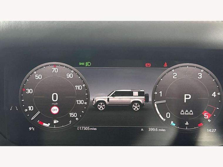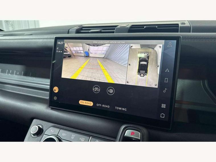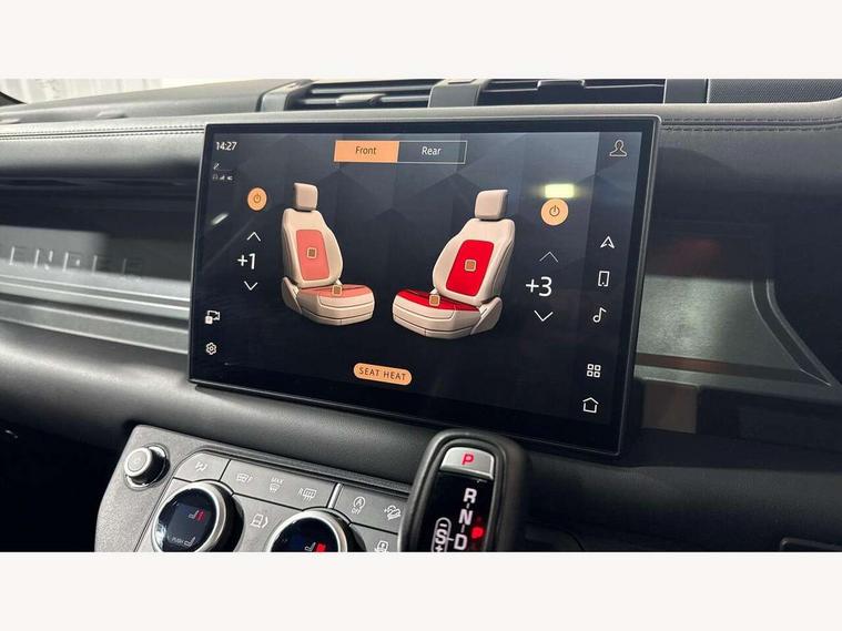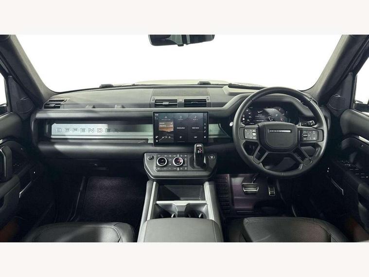 1 x USB-C (power only) & 1 x USB-C (power & data) in Row 1, 2 x USB-C in Row 2, 11.4" touchscreen, 360 degree parking aid, 3D Surround Camera with 360 View, 180 Rear View, Front Traffic Detection, Forward Vehicle Guidance, Tow Hitch Assist and clear sight Ground View, Adaptive cruise control, Android Auto, Apple CarPlay, Blind spot assist, Bluetooth system, Brake pad wear indicator, Clear exit monitor, Connected navigation pro, Driver condition monitor, Electric power assisted steering (EPAS), Head up Display, Interactive driver display, Lane keep assist, Push button start, Rear collision monitor, Rear traffic monitor, Traffic sign recognition with adaptive speed limiter, Trip computer, Wade Sensing, Wireless device charging, 8 speed automatic transmission, Adaptive dynamics, All terrain progress control, All wheel drive system, Configurable Terrain Response, Electronic active differential with brake torque vectoring, Electronic air suspension, Terrain Response 2, Twin speed transfer box, DAB Radio (Digital Audio Broadcasting), Meridian 700w surround sound audio system with 15 speakers, Pivi pro connected, Automatic headlight levelling, Automatic headlights, Centre high mounted stop light, ClearSight interior rear view mirror, Darkened LED tail lights, Electric heated/power fold door mirrors with approach lights and auto dimming driver side, Electric windows with one touch open/close and anti-trap, Follow me home lighting, Front fog lights, Heated rear window with timer, Heated windscreen, Illuminated metal treadplates with brand name script, Matrix LED headlights with signature DRL, Privacy glass, Puddle lights, Rain sensing windscreen wipers, Rear fog lights, Rear side wing doors, Rear wiper, Side hinged tailgate, Sliding panoramic roof, Standard tail door, Trailer stability assist, X badge, 12V power socket in loadspace, 14 way heated and cooled electric memory front seats with 4 way manual winged headrests, 3 seat bench in 2nd row, 40:20:40 folding, heated rear seats with winged headrests and centre armrest, Alpine lights, Bright metal pedals, Configurable cabin lighting, Domestic plug socket, Durable rubber cabin flooring, Durable rubber loadspace flooring, Electric reach + rake adjustable steering column, Electrically adjustable steering column, Footwell lights, Front head restraints, Front passenger isofix child seat attachment, Heated steering wheel, Loadspace cover, Loadspace Hook, Multifunction steering wheel, No flat load floor storage, Overhead stowage for sunglasses, Rear headrests, Rear ISOFIX, Rear reading lights, Signature interior upgrade, Single front passenger seat, Soft close tail door, Standard seat configuration, Storage glovebox, Sunvisors with illuminated vanity mirrors, Twin front cupholders, Non-smoker package, Online pack with data plan - Defender, 5 x 3 point seatbelts, ABS, Brake hold function, Cornering brake control (CBC), Cross car beam in metallic grey powder coat brushed finish, Customer configurable autolock, Driver and passenger airbags, DSC - Dynamic Stability Control, EBD - Electronic brakeforce distribution, Electric parking brake (EPB), Emergency brake assist, Emergency braking, ESP + traction control, Front airbags with passenger seat occupant detector, HDC - Hill descent control, Hill launch assist, Low traction launch, Orange brake calipers, Power operated child locks, Remote for (e-Call, Optimised assistance call, InControl app, Climate, beep and flash and door), RSC - Roll stability control, Seat belt reminder, TPMS (Tyre pressure monitoring system), Alarm, Immobiliser, Intrusion sensor, Keyless entry, Locking wheel nuts, Secure tracker pro,