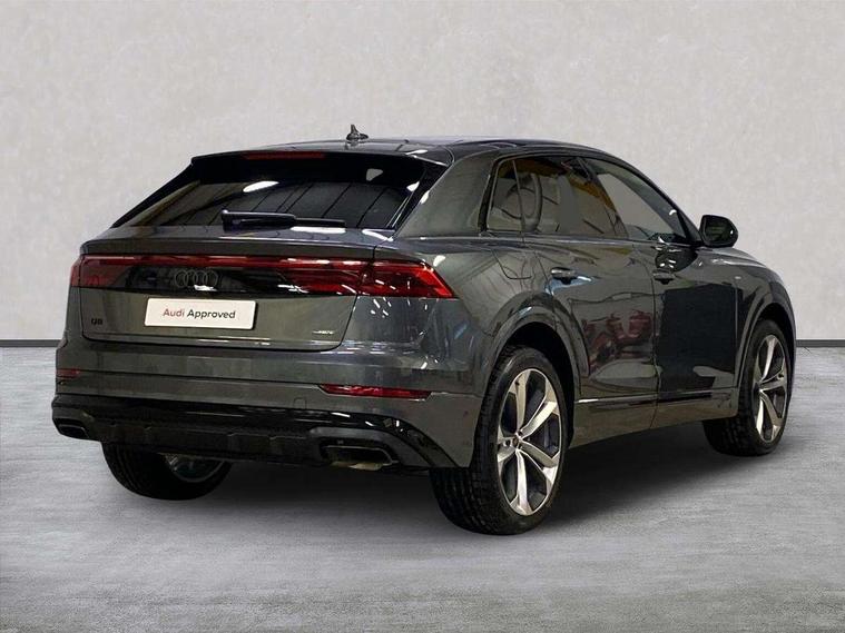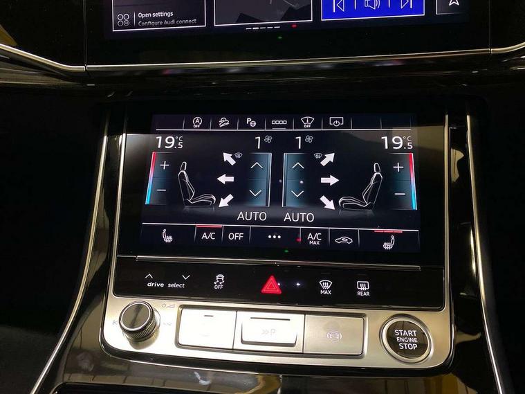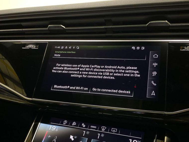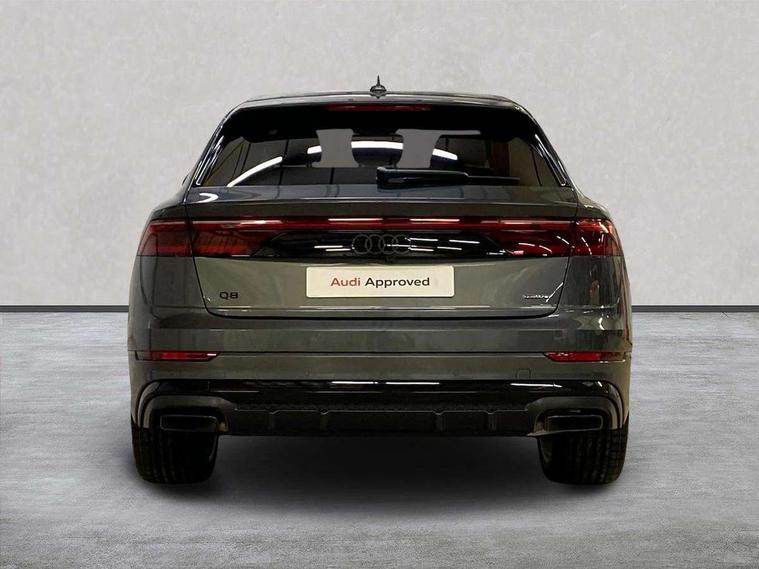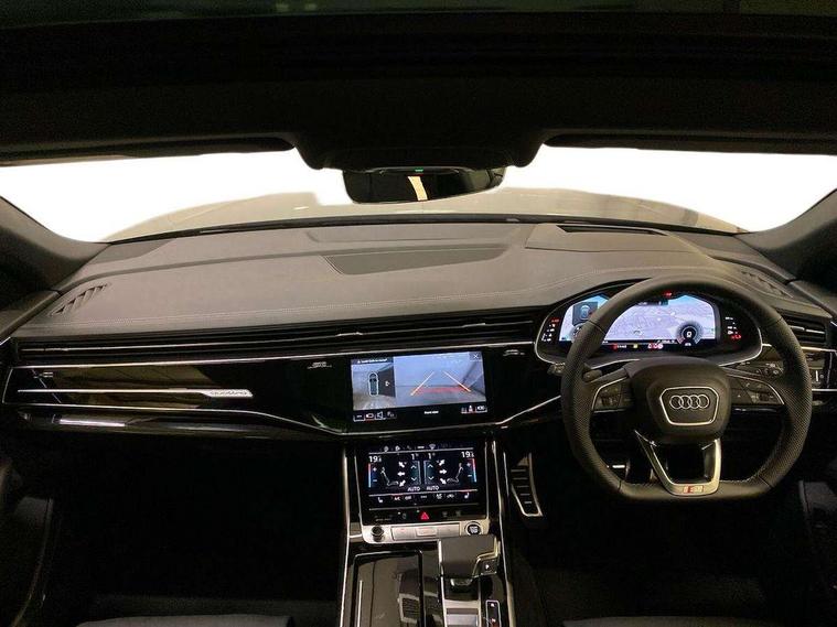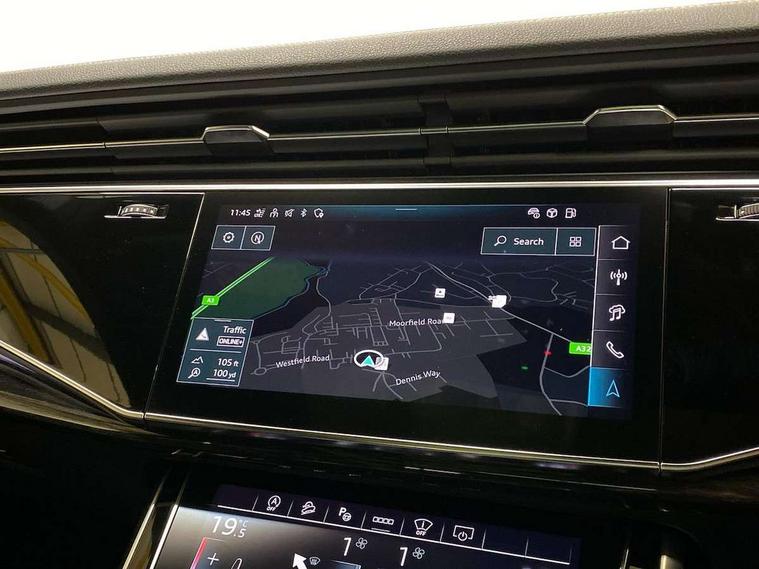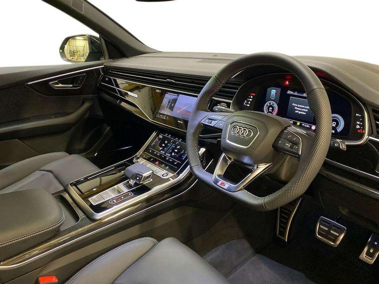 10.1" and 8.6" Dual colour touchscreens, Audi application store, Audi connect safety and service (e-call), Audi connect with Amazon Alexa Integration, Audi drive select, Audi parking system plus includes 360 degree display with front and rear sensors, Audi phone box light with wireless charging, Audi virtual cockpit - 12.3" high resolution LCD display with fully customisable instrument cluster, Automatic start/stop system, Bluetooth, Electro-mechanical PAS, Low washer fluid indicator, MMI navigation plus with MMI touch, Natural voice recognition, On board computer, Operating buttons in black, glass look with haptic feedback, Power operated tailgate, Rear view camera, Service interval indicator, Smartphone interface includes wireless Apple carplay/Android Auto, 48V Mild hybrid technology, Adaptive sport air suspension, Diesel particulate filter, Quattro all wheel drive with self locking centre differential, Audi music interface with 2 USB ports with charge and data functions, Audi sound system with 6 channel amplifier, 180 watt amplifying capacity and 10 loudspeakers including subwoofer, Aux-in socket, DAB Digital radio, 3rd brake light, Audi beam, Auto dimming frameless rear view mirror, Black exhaust tailpipes, Black single frame mask, Coming/leaving home lighting function, Electric front+rear windows, Electrically folding auto dimming/adjustable/heated door mirrors with memory function, LED side indicators and kerb view function for passenger side, Headlight washers, Heat insulating glass in windshield, LED rear light plus, LED signature daytime running lights, Loading edge protection in stainless steel, Matrix LED headlights with dynamic front and rear indicators, Platinum grey front spoiler lip and diffuser insert with honeycomb grille in black, Privacy glass - dark tinted rear and rear side windows from B-pillar backwards, Rain and light sensors, Rear side wing doors, Rear wiper, Singleframe grille surround in matte platinum grey, 2 zone automatic climate control, 3 bench rear seats in 2nd row, 4-way lumbar support for front seats, 40:20:40 split folding rear bench seat, Black cloth headlining, Comfort front centre armrest, Driver seat memory function, Electrically adjustable front seats, Front head restraints, Front/rear floor mats, Heated front seats, ISOFIX child seat mounting for front passenger seat and 2 outer rear seats with top tether child seat mounting for all 3 rear seats, LED interior ambient lighting, Luggage compartment sill protection in stainless steel, Rear centre armrest with 2 cupholders, Rear headrests, Seat cushion displaceable by 100mm in the ratio 60:40, Single front passenger seat, Stainless steel pedals, Sunvisors with illuminated vanity mirrors, Black styling pack plus - Q8, 3 point seatbelts on all seats, Audi pre sense front, Convenience key with safelock, Driver and front passenger, front side and curtain airbags, Electromechanical parking brake, Electronic Stability Control (ESC) including ABS, ASR and EDL, Front passenger airbag deactivation, Hill descent control, Hill hold assist, Predictive pedestrian protection, Seatbelt monitoring, Traction control, Tyre pressure loss indicator, Warning triangle and first aid kit, Anti theft alarm with tow away protection, Anti-theft wheel bolts and wheel loosening detection, Electronically operated child lock, Immobiliser, Keyless go with remote central locking, Polished oak trim with grey finish inlay, Tool kit, Tyre repair kit,