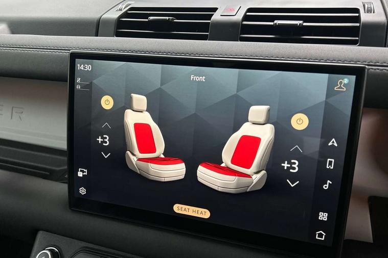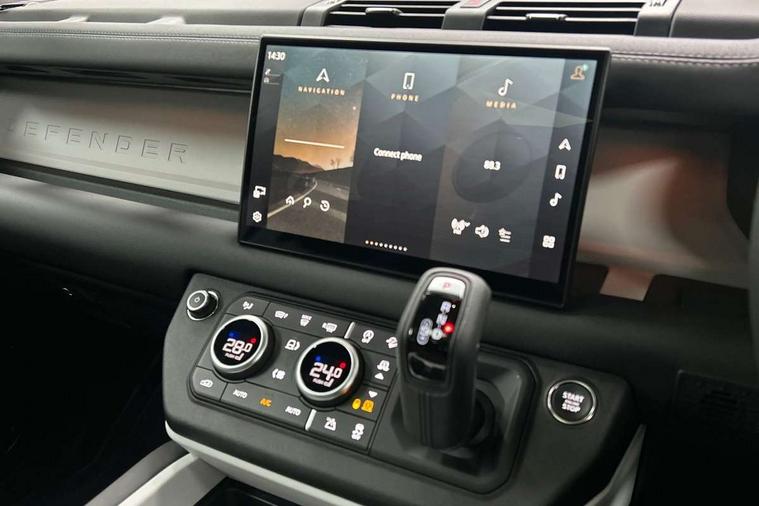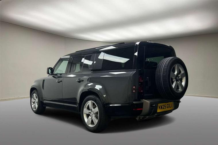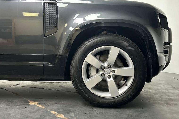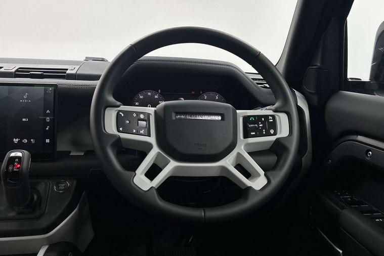 1 x USB-C (power only) & 1 x USB-C (power & data) in Row 1, 2 x USB-C in Row 2, 11.4" touchscreen, 2 x USB-C in Row 3, 360 degree parking aid, 3D Surround Camera with 360 View, 180 Rear View, Front Traffic Detection, Forward Vehicle Guidance, Tow Hitch Assist and clear sight Ground View, Adaptive cruise control, Android Auto, Apple CarPlay, Blind spot assist, Bluetooth system, Brake pad wear indicator, Clear exit monitor, Connected navigation pro, Driver condition monitor, Electric power assisted steering (EPAS), Interactive driver display, Lane keep assist, Push button start, Rear collision monitor, Rear traffic monitor, Traffic sign recognition with adaptive speed limiter, Trip computer, Wireless device charging, 8 speed automatic transmission, Adaptive dynamics, All wheel drive system, Electronic air suspension, Twin speed transfer box, DAB Radio (Digital Audio Broadcasting), Meridian 400w sound audio system with 11 speakers and subwoofer, Pivi pro connected, Automatic headlight levelling, Automatic headlights, Black exposed rear recovery eyes, Black roof rails, Body coloured bonnet, Centre high mounted stop light, Electric heated/power fold door mirrors with approach lights and auto dimming driver side, Electric windows with one touch open/close and anti-trap, Follow me home lighting, Heated rear window with timer, Heated windscreen, Illuminated metal treadplates with brand name script, LED tail lights, Privacy glass, Puddle lights, Rain sensing windscreen wipers, Rear fog lights, Rear side wing doors, Rear wiper, Side hinged tailgate, Sliding panoramic roof, Standard tail door, Trailer stability assist, 12V power socket in loadspace, 3 seat bench in 2nd row, 3 seat bench in third row, Air quality sensor, Cabin Air Purification plus, Centre console with armrest, Configurable cabin lighting, Durable rubber cabin flooring, Durable rubber loadspace flooring, Footwell lights, Front head restraints, Front passenger isofix child seat attachment, Heated steering wheel, Loadspace cover, Loadspace Hook, Multifunction steering wheel, Overhead stowage for sunglasses, Rear headrests, Rear ISOFIX, Rear reading lights, Single front passenger seat, Storage glovebox, Sunvisors with illuminated vanity mirrors, Twin front cupholders, Non-smoker package, Online pack with data plan - Defender, 5 x 3 point seatbelts, ABS, Brake hold function, Cornering brake control (CBC), Customer configurable autolock, Driver and passenger airbags, DSC - Dynamic Stability Control, EBD - Electronic brakeforce distribution, Electric parking brake (EPB), Emergency brake assist, Emergency braking, ESP + traction control, Front airbags with passenger seat occupant detector, HDC - Hill descent control, Hill launch assist, Low traction launch, Power operated child locks, Remote for (e-Call, Optimised assistance call, InControl app, Climate, beep and flash and door), RSC - Roll stability control, Seat belt reminder, TPMS (Tyre pressure monitoring system), Alarm, Immobiliser, Intrusion sensor, Keyless entry, Locking wheel nuts, Secure tracker pro, All season tyres,