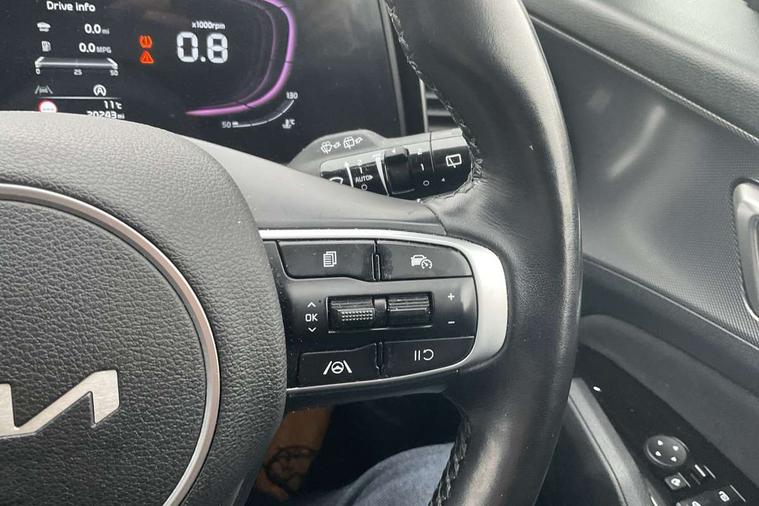 12.3" Display with navigation, 4.2" supervision colour cluster display, Apple car play/Android Auto with voice control, Cruise control + speed limiter, Drive mode selector, E-call, Forward collision avoidance assist (FCA) - city/pedestrian/cyclist/junction covering, Front and rear parking sensors, Intelligent speed limit assist, Kia Connect (UVO), Lane Following Assist (LFA), Lane keep assist, Low washer fluid warning, Rear view monitor, Reversing camera system integrated into centre fascia screen, Speed sensitive power steering, Trip computer, Windscreen washer level indicator, Intelligent Stop and Go, 6 speaker audio system, Bluetooth audio streaming, DAB Radio with MP3, Rear USB port, Steering wheel mounted audio controls, USB C type charging ports on centre console, USB C type charging ports on side of front seats, USB port for connection of a media device, All round electric windows with drivers and front passenger auto up/down function, Automatic headlight control system, Automatic window defogger, Backlite glass heated with timer, Black bumpers, Body colour and black bumper with silver accents, Body colour exterior door handles, Body colour radiator upper garnish and door garnish, Electrically adjustable/heated/folding door mirrors with LED indicators, Front and rear chrome skid plates, Gloss black door mirrors, Gloss black radiator grille, Gloss black side sill and wheel arch body mouldings, Glossy black roof rack, High beam assist, Interior electrochromic mirror, LED daytime running lights, LED front fog lamps, LED headlamps (low and high beam - MFR type), LED High mounted stop light, LED rear combination lamp, Rain sensing wipers with aero blades, Rear fog lamp, Rear privacy glass, Rear side wing doors, Rear spoiler, Rear wiper, Satin finished beltline, Silver coloured inserts to bumpers, Tinted rear glass, Trailer stability assist, 12V power socket in front centre fascia and luggage compartment, 2nd row personal lamps, 3 seat bench in 2nd row, 3 x passenger assist grips, 40/20/40 split folding rear seat, All-round height adjustable headrests, Black headlining, Centre console storage box, Cupholders in rear armrest, D-Shaped sports leather steering wheel and perforated inserts with GT-Line logo, Door courtesy lamps, Drink holder at centre armrest, Driver and front passenger side sunvisors with illuminated vanity mirrors, Driver's seat manual height adjust, Drivers seat power lumbar support, Front and rear door storage, Front seat and rear pockets, Front/rear centre armrests, Gear shift indicator, Glovebox illumination, Heated front seats, Heated steering wheel, Interior door lock/unlock function, ISOFIX Child seat top tethers and anchor fixings outer rear seats, Luggage area light, Luggage area load cover, Luggage net with hooks, Metal paint interior door handles, Overhead console lamp, Rear cabin light, Rear coat hooks, Single front passenger seat, Sports pedals, Suede leather upholstery, Three zone climate control, Tilt/telescopic adjustable steering wheel, Ventilation ducts to rear compartment, Active front headrests, All round 3-point seatbelts, Anti-lock braking system (ABS), Dual front side airbags, Dual horn, Electronic parking brake, Electronic stability control with downhill brake control, Front passenger airbag cut-off switch, Front seatbelt pretensioners + load limiters, Height adjustable front seatbelts, Hill start assist control (HAC), Impact sensing auto door unlocking, Multi collision brake assist, Rear door child safety locks, Rear seat alert system, Traction control, Twin curtain airbags, Twin front airbags, Tyre pressure monitoring system, Advanced anti-theft system including immobiliser and alarm, Door deadlocks, Engine Start/Stop Button with Smart Entry System, Locking wheel nuts, Speed sensitive auto door locking, Visible vehicle identification number, Aluminium pattern finish centre fascia and door garnish, 19" GT-Line alloy wheels, Tyre mobility kit,