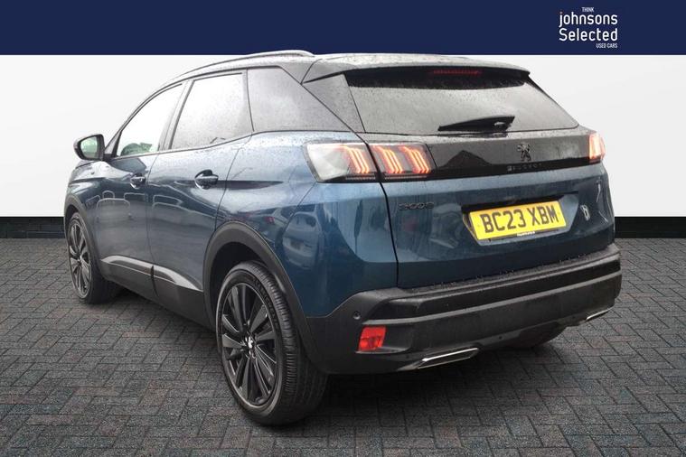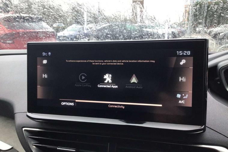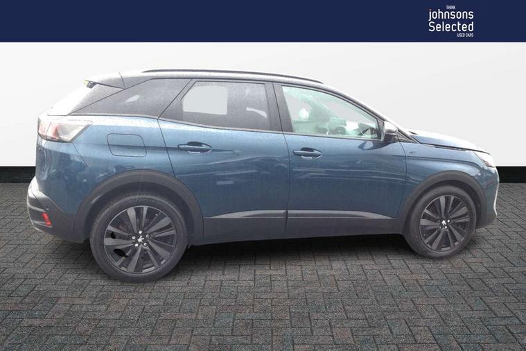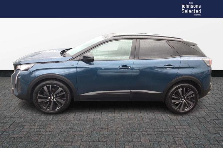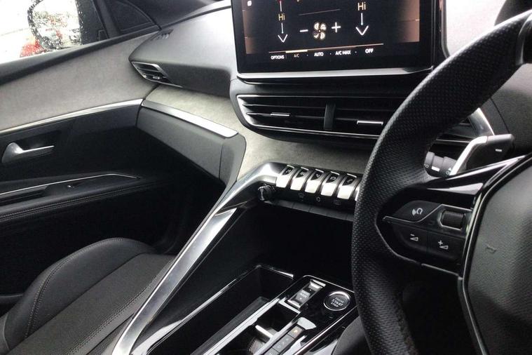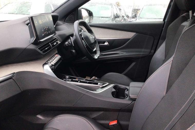 3D connected navigation with 10" HD touchscreen + voice recognition system, Apple car play and Android auto, Blind spot detection system, Bluetooth telephone facility, Drive modes select (Eco, normal and sport), Driver Attention Alert level 3, Driving Time Warning (DAA1), Emergency services call system, Extended traffic sign recognition, Exterior temperature indicator with ice warning, Front and rear parking sensors, Lane departure warning system, Lane Keeping Assistance (LKA) with road edge detection, Mirror screen with mirror link, apple carplay and android auto, Multi function trip computer, Peugeot i-cockpit with compact multi-function sports steering wheel, PEUGEOT i-Cockpit with configurable 12.3" Head-up digital instrument panel, PEUGEOT SOS and assistance, Rear passenger USB charging sockets (x2) (type A), Speed limit recognition and recommendation, Dynamic stability control and electronic anti-skid system, Stop/start function, DAB Digital radio, USB socket, Auto self levelling headlights, Automatic hazard light activation upon heavy brake application, Automatic triggered rear windscreen wiper in reverse gear, Black with chrome detailed front wing trim, Body colour door handles, Body colour rear roof spoiler with stainless steel edging trim, Body protectors (bottom of front and rear bumpers + wheel arches + protection at bottom of doors) in black, Dark tinted rear side windows + tailgate window, Diamond Black door mirror shells, Door mirror mounted LED courtesy floor lighting, Electric folding door mirrors with exterior courtesy LED lighting, Electric operated/heated door mirrors, Fog Mode, Front windscreen wiper with magic wash cleaning system, Full LED headlights with LED fog lights with static cornering function, Gloss black B and C pillar and aerodynamic deflector trim, Gloss black front bumper air scoops, Gloss black rear cluster connecting strip, Gloss black windscreen trim, GT emblem in satin copper (front wings and tailgate), Headlights left on audible warning, Heated rear windscreen with integrated antenna, High beam assist, LED daytime running lights, LED front indicator, LED rear number plate lighting, LED side indicator lights integrated into door mirrors, LED third brake light, One touch electric front/rear windows with pinch protection, Rear LED Peugeot signature 'Claw Effect' lights with clear lens and scrolling LED direction indicators, Rear side wing doors, Twin exhaust tailpipe, 1/3 to 2/3 split folding rear seats, 12V Sockets in dashboard, rear cabin and load area, 2 cupholders in front centre console, 2 cupholders in rear armrest, 2 x Rear reading spotlights, 2x Rear coat hooks, 3x Isofix child seat fittings in the front passenger and outer rear seats, 4 Grab handles retractable and damped, Aikinite stitching in armrest, gear lever and dashboard facia, Aluminium pedals, Blue ambient lighting for connecting zone, Blue ambient lighting to front door panels, central storage and cupholders, Blue ambient lighting to headup instrument panel, Centre front armrest with butterfly wing opening and illuminated storage compartment, Driver seat manual adjustment (longitudinal and back rest angle), Dual zone automatic climate control, e-Toggle compact gear selector, Electric power steering with reach and rake adjustable steering column, Flocked front door pocket interior with blue ambient lighting, Flocked glovebox interior, Foldable front passenger seat with picnic table, Footwell illumination, Front interior light with 2 reading spotlights and rear interior light with timer, Front passenger seat manual adjustment (longitudinal and back rest angle), Front seat back map pockets, Gear shift indicator, Illuminated glovebox, Individual left and right controls in boot for seat folding, LED interior lighting in storage spaces and load area, LED roof interior lighting, Mistral floor mats with Aikinite contrast stitching, Mistral full grain perforated leather steering wheel with aikinite stitch detail and satin chrome 'GT' emblem, Rear bench seat with central armrest and ski hatch, Rear centre console ventilation system, Roof lining - Mistral black, Satin chrome dashboard trim, Satin chrome digital instrument panel and touchscreen trim, Satin chrome front door panel recess trim, Satin chrome interior door handles, Satin chrome scorpion's tail and toggle switch trim, Seatbelt not fastened audible and visual alert for front seats, Seatbelt unfastened on the move audible and visual alert for front and rear seats, Sunvisors with illuminated vanity mirrors, Two position boot floor, Drive assist plus pack - 3008, Visibility pack - 3008 GT, 3x Rear three-point retractable seatbelts with force limiters in the outer rear seats, ABS (Anti-lock Braking System) with EBD (Electronic Brakeforce Distribution) and EBA (Emergency Braking Assistance), Adaptive driver and front passenger airbags with passenger airbag deactivation function, Driver and front passenger side airbags, Electric child locking functionality on rear windows and doors, Electric parking brake, Front and rear curtain airbags, Front optimised safety headrests and 3 x rear retractable headrests with height adjustable, Front three point retractable seatbelts with pre tensioners and force limiters, Front ventilated disc brakes and rear disc brakes, Hill start assist, Two tone horn, Automatic door locking when moving off, Electronic immobiliser, key operated exterior door lock from the left hand door, Perimetric and volumetric alarm with lift and tilt sensor, Peugeot Open and Go System, Remote control central locking with two plip keys, Puncture repair kit including compressor, sealant cartridge and towing eye,