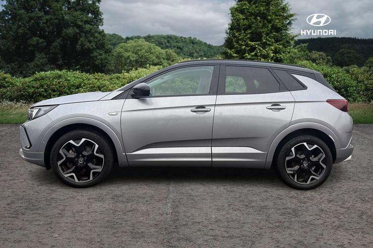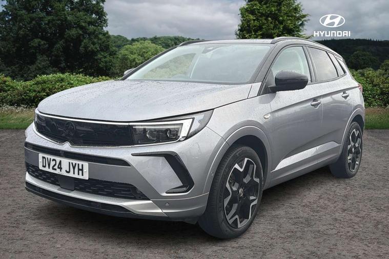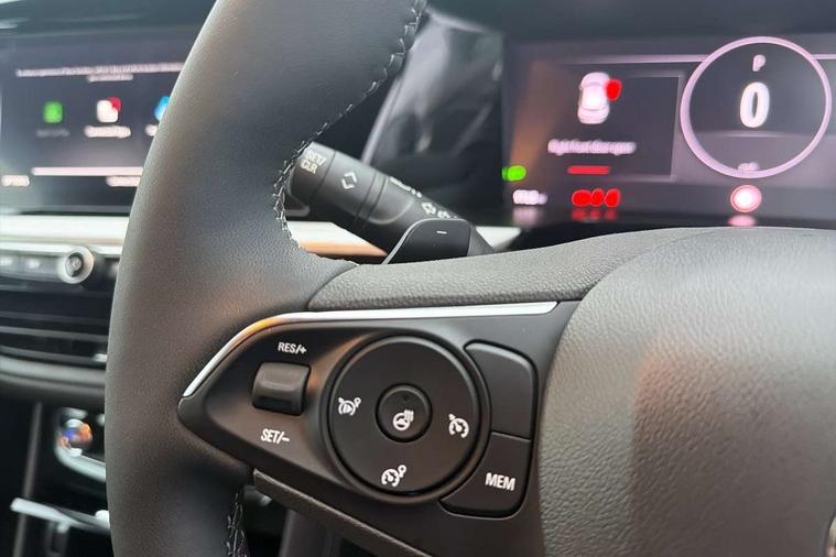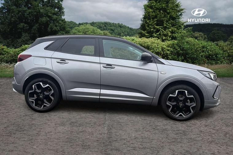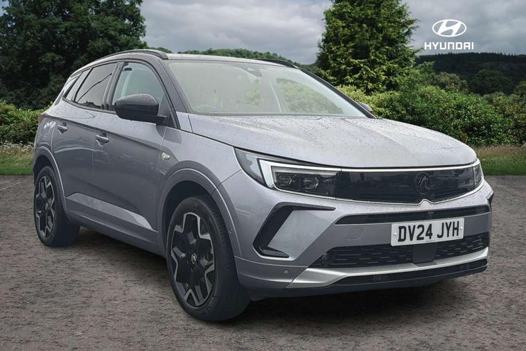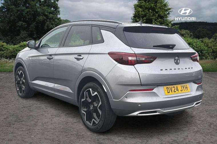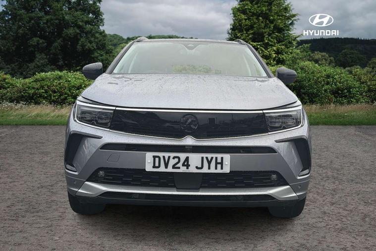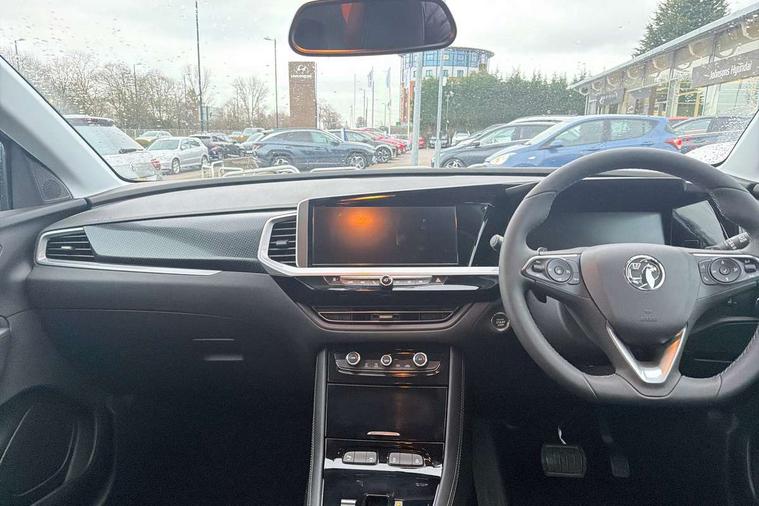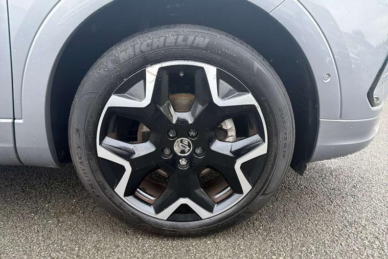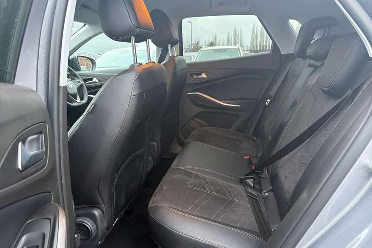 Central facia display with digital clock, outside air temperature and audio information, Digital fuel gauge with low fuel level warning light, Digital rev counter, Digital speedometer, Digital water temperature gauge with warning light, Drive mode selector (Eco, Normal, Sport), Driver drowsiness alert system, Driver information - Total mileage, service indicator, oil life, Front and rear parking distance sensors with 360 degree rear view camera and advanced park assist, Gearshift up/down indication light, Highway integration assist (Lane positioning assistant and Adaptive cruise control), Lane departure warning system, Lane keep assist, Lights on audible warning, Multi function trip computer - Trip odometer, vehicle range, average speed and fuel economy, instantaneous fuel economy and driving time, Multimedia Pure Panel Navigation System incl 10" colour touchscreen, 12" digital instrument cluster & satellite naviagtion, Power operated tailgate with foot sensor, Side blind spot alert, Speed sensitive electric power assisted steering, Speed sign recognition, Start/stop system, Vauxhall connect including Emergency call (SOS e-call) and Breakdown call (b-call), Wireless charger for mobile devices, Anti-roll bars, Compound crank rear suspension with coil springs and gas pressure dampers, Independent decoupled MacPherson strut front suspension with gas pressure dampers and coil springs, anti-roll bar, Six speaker - four front + two rear, Steering wheel mounted audio/phone/cruise controls, Automatic lighting control, Automatically dimming anti dazzle rear view mirror, Black door mirrors, Black side window trim, Body colour door handles, Body colour lower front and rear bumpers, protective wheel arches and lower door cladding, Body colour upper front bumper, Collapsible windscreen wipers, Dark tinted rear windows, Door to door illumination, Electric adjustable/heated/folding door mirrors, Electrically operated front and rear windows with safety auto reverse and one touch up/down facility, Front wiper system spraying directly from wipers, Hazard warning lights, Heated rear screen with timed cut off, Heated windscreen, High beam assist, High gloss black exterior detailing, High gloss black Griffin for Vizor and tailgate with high gloss black Grandland tailgate lettering, High gloss black roof rails, High level centre rear brake light, IntelliLux adaptive LED pixel headlights and LED tail lights, Intermittent rear window wash/wipe, LED daytime running lights, LED front fog lights, Magic wash, Manual headlight beam levelling, Rain sensor windscreen wipers, Rear side wing doors, Rear spoiler, Reversing light, Shark fin aerial, Silver effect protective front and rear skid plate, Soundproof insulated windscreen, Two speed windscreen wipers with variable intermittent wipe, Upper and lower bumper design, Vizor front grille, Welcome lighting, 12V electrical accessory socket in front, 3 bench rear seats in 2nd row, 3 spoke heated flat bottom leather effect steering wheel with satin chrome effect bezel, 6 way adjustable Ergonomic active heated sports style front seats AGR approved with seat cushion extension and lumbar adjustment, 60/40 split folding rear seat with centre rear seat armrest and load though facility, Advanced predictive logic control system using a sun sensor, Alcantara upholstery, Ambient centre console downlighter, Automatic air direction and fan speed with manual override, Charcoal filter, Chrome effect interior door handles, Covered storage compartment in centre console and in driver armrest, Driver's centre armrest, Driver/passenger sunvisors with illuminated vanity mirrors, Dual zone electronic climate control, Front door pockets with 2.6 litre capacity, Front seat back storage pockets, Fully carpeted luggage area, Height adjustable headrests, Illuminated luggage area, ISOFIX on front passenger and rear outer seats, Luggage compartment cover, Reach + rake adjustable steering column, Rear centre seat head restraint, Rear door pockets with 1.8 litre capacity, Rear passenger compartment heating ducts, Rear reading lights, Two drinks holders in centre console, Anti-lock braking system (ABS), Automatic emergency braking with pedestrian detection, Child proof locks on rear doors, CSC - Cornering stability control, Deactivation switch for front passenger front and side impact airbags, Deflation detection system, Driver airbag, Dual seatbelt pretensioners on front seats, EBD - Electronic brakeforce distribution, Electronic parking brake, Electronic stability program (ESP) including traction control, Forward collision alert, Front brake ventilated disc 304mm diameter, Front passenger airbag, Front seat side impact airbags, Full-size curtain airbags for driver and front passenger, Hill start assist, Hydraulic Brake Assist (HBA), Inertia reel lap and diagonal seatbelts for all seats, Load limiters on outer rear seatbelt retractors, Pretensioners on outer rear seatbelt retractors, Rear brake ventilated disc 268mm diameter, Smart seatbelt reminder for front and rear seats, Tyre pressure monitoring system, Central locking, Deadlocking system, Electronically protected audio equipment, Engine deadlock immobiliser, Keyless entry and start, Locking wheel nuts, Remote security alarm system, Black door panels with black premium leather effect inserts, Dax decor facia panel with palladium medium finish, 19" diamond cut bi-colour alloy wheel,