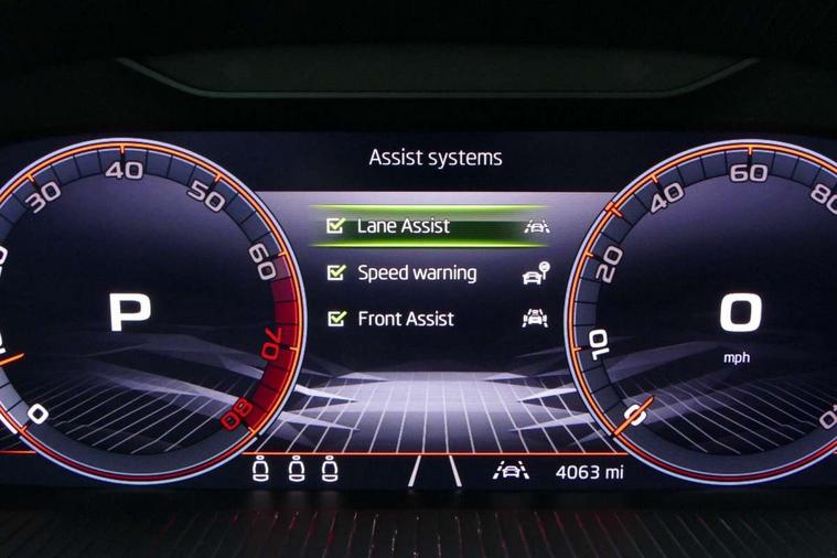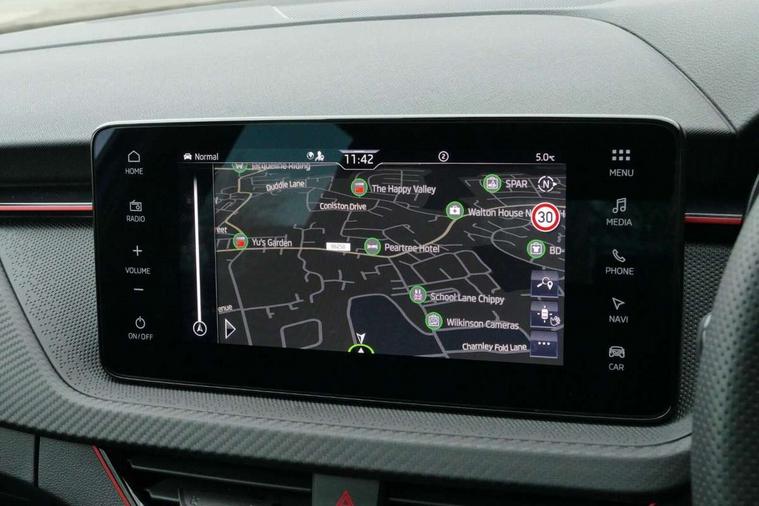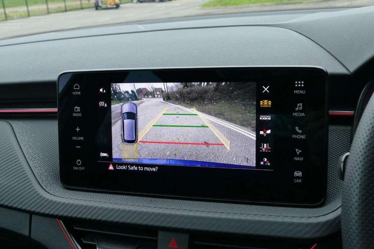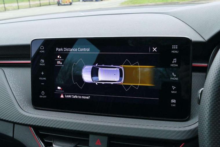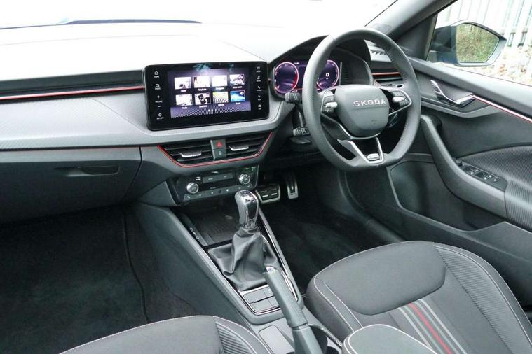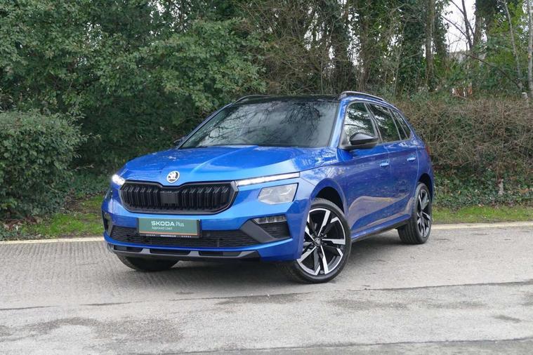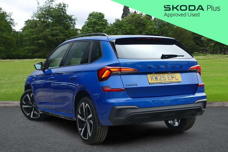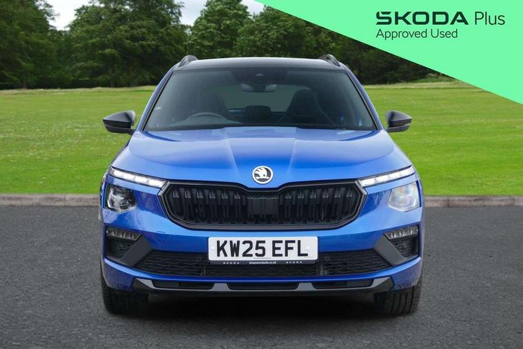 Advanced driver attention and drowsiness monitor, Bluetooth system, E-call, Front assist system, PAS, Rear parking sensors, Rear view camera, Service indicator, Speed limiter, Traffic sign recognition, Virtual cockpit with 10.25" display, Voice control system, Wireless smartlink, 4 USB C ports, 8 Speakers, 9.2" Skoda navigation display, DAB Digital radio, Auto dimming rear view mirror, Automatic headlight control with coming home and leaving home feature, Black door mirrors, Black radiator grille, Black rear diffuser, Black roof spoiler, Body colour bumpers, Body colour door handles, Boot lettering in black, Extended tailgate glass, Fixed panoramic sunroof with black roof rails, Front and rear electric windows, Heated rear window, LED daytime running lights, LED high beam, LED low beam, LED third brake light, Light sensors, Monte carlo plaque, Privacy glass, Rear side wing doors, Rear wiper, Ticket holder inside windscreen, 12V socket in luggage compartment, 3 seat bench in 2nd row, Aluminium pedals, Ambient lighting in white/red, Art leather carbon decor inserts, Art leather carbon door inserts, Black roof lining, Cargo elements, Chrome inner door handles, Driver and passenger sun visors with vanity mirror, Dual zone climate control, Front and rear roof lights, Front centre armrest, Front head restraints, Glove compartment with illumination, Height adjustable driver seat, Height adjustable front passenger seat, Ice scraper, Inner circulation control with pollen filter, ISOFIX on front passenger seat, Isofix preparation for back seats, Leather gearknob and handbrake lever, Manual lumbar support for front seats, Monte Carlo cloth upholstery, Net package and top tether hooks in boot space, Net under rear shelf, Pocket on the back of both front seats include mobile phone pockets, Rake/reach adjustable steering wheel, Reading lights, Rear centre armrests, Red hotstamping, Single front passenger seat, Sports seats, Textile floor mats, Third rear headrest, Top tether for front passenger seat, Umbrella in driver's door, Light and view plus package - Kamiq, 3x3 point rear seatbelts, Airbags - driver and front passenger, Disc brakes, ESP, Extended and predictive pedestrian/cyclist protection, Front passenger airbag deactivation switch, Front side airbags with curtain airbags, Hill hold control, Manual leather parking brake, Manual rear child locks, One tone horn, Seatbelt reminder for driver an co-driver, Traction control, Tyre pressure monitor, Anti-theft alarm system with interior monitoring, backup horn, towing protection and remote central locking with SAFE system, Anti-theft wheel bolts, Electronic engine immobilizer, 18" Ursa black diamond cut alloy wheels,