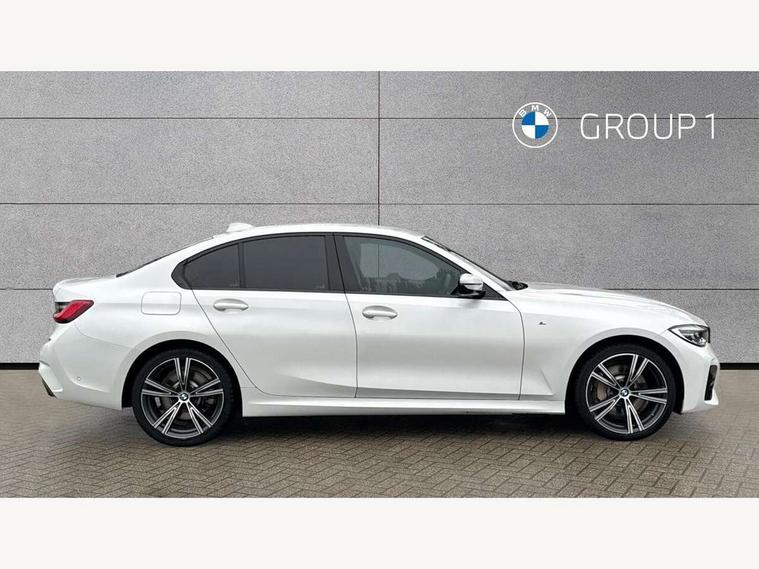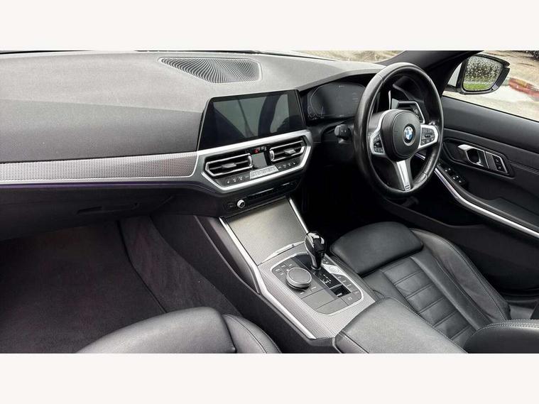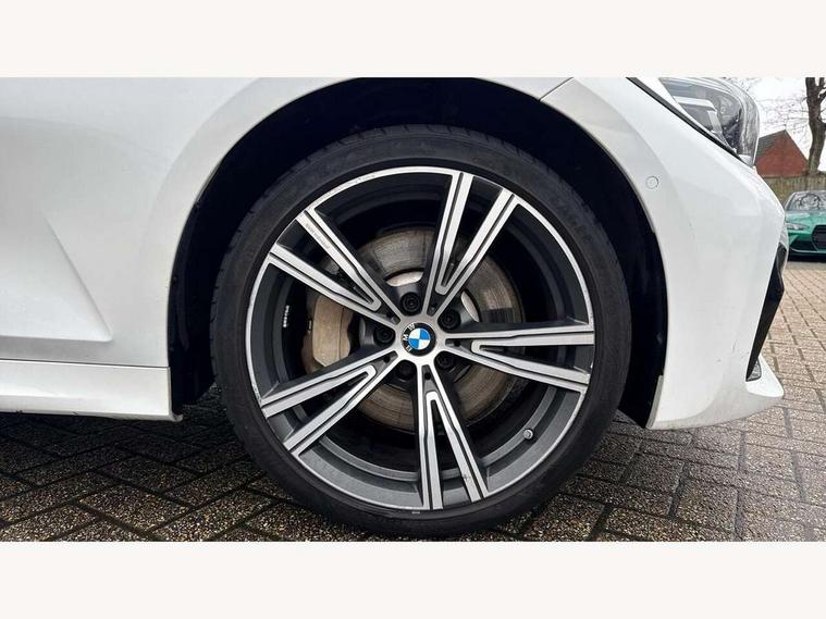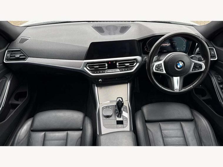 Active guard plus, Attentiveness assist, Auto start-stop, BMW ConnectedDrive online services, BMW iDrive controller on centre console, BMW Live Cockpit Professional sat nav system including 10.25" high resolution display and Intelligent Voice Assistant, BMW service history, BMW Teleservices, Brake pad wear indicator in front and rear, Check Control warning system for monitoring of lights and door/luggage compartment open warning, Condition based service, Electric power steering, Electric power steering with Servotronic steering optimised at all speed ranges, Instrument cluster with speedometer with mph readout, tachometer, fuel gauge and oil temperature gauge, Integrated owners handbook, Oil sensor for level and grade, warning by check control system, On board computer - average speed+fuel consumption, service interval, clock/date, odometer/trip meter, outside temperature display and ice warning, Optimum shift indicator, Personal Profile - automatic lock when driving away selectable, Balanced 50/50 weight distribution, Battery cut-out switch, Drive performance control - ECO PRO, comfort and sport modes, Electronic differential lock control (EDLC), Sport automatic transmission with steering-wheel mounted gearshift paddles and launch control, Stroke dependent dampers, DAB tuner, Electronic service booklet, Acoustic glazing, Active airstream chrome frame kidney grille with 8 high gloss black vertical slats, Automatic headlight beam throw control with load dependent regulating reaction, dynamic compensation of braking dive and acceleration squat, Black roof mouldings, Body colour - fuel filler flap, front and rear bumpers, door handles and mirror caps with integrated turn indicator + bottom segment in matt black, Dynamic brake lights, Electric windows - front and rear, with open/close fingertip control, anti-trap facility and comfort closing, Exhaust tailpipe - split left and right, Extended LED headlights, Exterior mirrors - electrically folding with anti-dazzle, Fading support, Front and rear bumper system with replaceable deformation elements, Front black door sill finishers with BMW designation, Green tinted heat protection glazing, High gloss shadow line exterior trim, Interior rear view electrochromatic mirror with automatic anti dazzle function, LED front fog lights, Lightweight engineering, M designation on front side panels, left and right, Matt black exterior B pillar, Model designation on right side of tailgate, Rain sensor with automatic headlight activation, Rear wiper, Shark fin antenna, Two part LED tailights in L-shape with components in smoked glass, brake light, LED turn indicator and rear fog light, Visible VIN plate, Welcome lights in interior and door handle area, Windscreen wipers with integrated washing jets, 12V power socket in front storage compartment, 2 front cupholder in centre console with clamping elements and matt black inlay, 3 rear seats with non folding headrests with 3 point seat belts, 3 zone automatic air conditioning, 4 pieces lashing eyelets in luggage compartment, 40:20:40 split folding rear seat with loading system, Ambient lighting with welcome carpet light, Anthracite headlining, Armrest integrated in front and rear door trim + front centre console armrest, Centred top Luggage compartment lights, Four grab handles integrated in roof lining, Front and rear door exit lighting (left / right), Front and rear door pockets, Front and rear reading lights, Front and rear velour floor mats, Front head restraints, Front sport seats, Heated driver and front passenger seats, Height adjustable mechanically and infinitely variable steering column, Illuminated armrest storage compartment, Illuminated glove compartment with separate small compartment, Interior lighting - front centre over interior mirror with soft light, rear centre and front and rear footwell lighting, M Sport multifunction leather steering wheel, Make-up mirror lights, Rear centre armrest with 2 cupholders, Rear centre console with storage compartment and ventilation grille, Sunvisors with vanity mirrors and ticket pocket, Toolkit located in luggage compartment, Connected pack professional - 3 Series Saloon/Touring, M Aerodynamics pack - 3 Series Saloon/Touring, 2 tone horn, BMW emergency call, Brake energy regeneration, Braking pre-tensioning, Child proof locking system in rear door, Child seat ISOFIX attachment rear outer seats, Coasting in idle in ECO PRO mode, Crash sensor activating of airbags, Unlocking doors, hazard warning lights, interior light, safety battery terminal, Driver and front passenger side airbags, integrated in the door side seat backrest bolsters for all seat variants, Driver/Front Passenger airbags, Dry braking, Dynamic brake control, Dynamic stability control + (DSC+) - Anti-lock Braking System (ABS) with brake assist and cornering brake control + Automatic Stability Control (ASC), Dynamic Traction Control - DTC, Electric parking brake including automatic hold function and automatic release of the parking brake when driving off, Front passenger manual airbag deactivation, Head airbags for all 4 outer seats, Hill start assist, Seat belt security check for driver and front passenger, Side impact protection, Three 3 point seat belts on all seats including front belt stopper, pyrotechnic belt tensioners and belt force limiters, Tyre pressure monitoring with three level warning strategy, Ventilated front and rear disc brakes, Warning triangle and first aid kit, Alarm system (Thatcham 1) with remote control and electronic engine immobiliser, Central locking switch for all doors, fuel filler cap and luggage compartment, Remote control with integrated key one button open/close vehicle and windows, sole opening of the luggage compartment lid and panic mode, Start/stop button with Comfort Go keyless engine start and auto Start/stop deactivation button, Vehicle key with M specific designation, Reduced rolling resistance tyres,