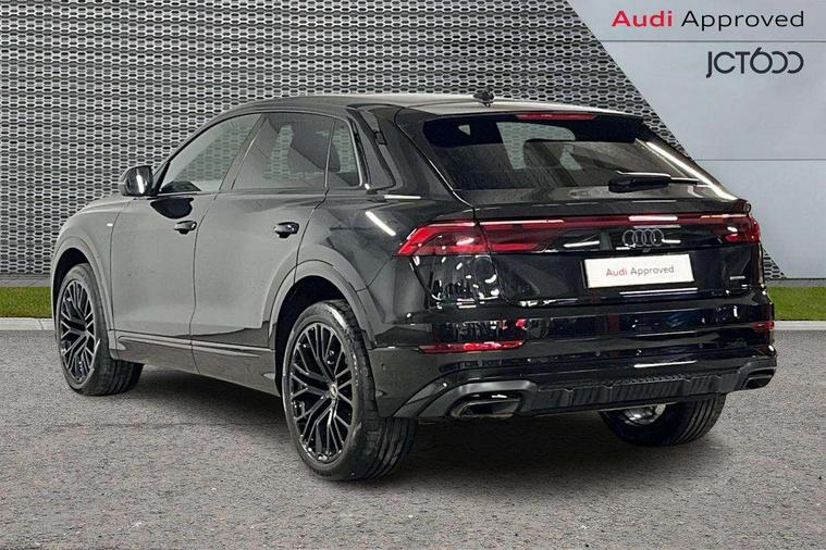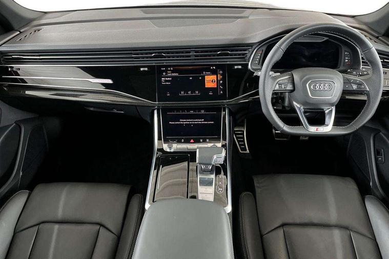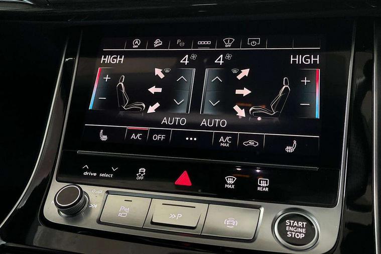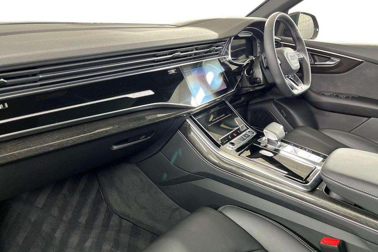 10.1" and 8.6" Dual colour touchscreens, Audi application store, Audi connect safety and service (e-call), Audi connect with Amazon Alexa Integration, Audi drive select, Audi parking system plus includes 360 degree display with front and rear sensors, Audi phone box light with wireless charging, Audi virtual cockpit - 12.3" high resolution LCD display with fully customisable instrument cluster, Automatic start/stop system, Bluetooth, Electro-mechanical PAS, Low washer fluid indicator, MMI navigation plus with MMI touch, Natural voice recognition, On board computer, Operating buttons in black, glass look with haptic feedback, Power operated tailgate, Rear view camera, Service interval indicator, Smartphone interface includes wireless Apple carplay/Android Auto, 48V Mild hybrid technology, Adaptive sport air suspension, Diesel particulate filter, Quattro all wheel drive with self locking centre differential, Audi music interface with 2 USB ports with charge and data functions, Audi sound system with 6 channel amplifier, 180 watt amplifying capacity and 10 loudspeakers including subwoofer, Aux-in socket, DAB Digital radio, 3rd brake light, Audi beam, Auto dimming frameless rear view mirror, Black exhaust tailpipes, Black single frame mask, Coming/leaving home lighting function, Electric front+rear windows, Electrically folding auto dimming/adjustable/heated door mirrors with memory function, LED side indicators and kerb view function for passenger side, Headlight washers, Heat insulating glass in windshield, LED rear light plus, LED signature daytime running lights, Loading edge protection in stainless steel, Matrix LED headlights with dynamic front and rear indicators, Platinum grey front spoiler lip and diffuser insert with honeycomb grille in black, Privacy glass - dark tinted rear and rear side windows from B-pillar backwards, Rain and light sensors, Rear side wing doors, Rear wiper, Singleframe grille surround in matte platinum grey, 2 zone automatic climate control, 3 bench rear seats in 2nd row, 4-way lumbar support for front seats, 40:20:40 split folding rear bench seat, Black cloth headlining, Comfort front centre armrest, Driver seat memory function, Electrically adjustable front seats, Front head restraints, Front/rear floor mats, Heated front seats, ISOFIX child seat mounting for front passenger seat and 2 outer rear seats with top tether child seat mounting for all 3 rear seats, LED interior ambient lighting, Luggage compartment sill protection in stainless steel, Rear centre armrest with 2 cupholders, Rear headrests, Seat cushion displaceable by 100mm in the ratio 60:40, Single front passenger seat, Stainless steel pedals, Sunvisors with illuminated vanity mirrors, Black styling pack plus - Q8, 3 point seatbelts on all seats, Audi pre sense front, Convenience key with safelock, Driver and front passenger, front side and curtain airbags, Electromechanical parking brake, Electronic Stability Control (ESC) including ABS, ASR and EDL, Front passenger airbag deactivation, Hill descent control, Hill hold assist, Predictive pedestrian protection, Seatbelt monitoring, Traction control, Tyre pressure loss indicator, Warning triangle and first aid kit, Anti theft alarm with tow away protection, Anti-theft wheel bolts and wheel loosening detection, Electronically operated child lock, Immobiliser, Keyless go with remote central locking, Polished oak trim with grey finish inlay, Tool kit, Tyre repair kit,