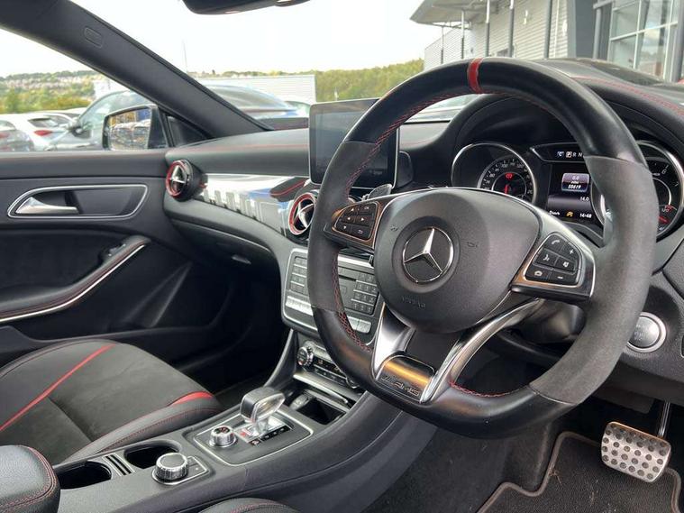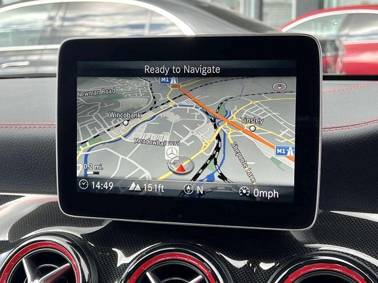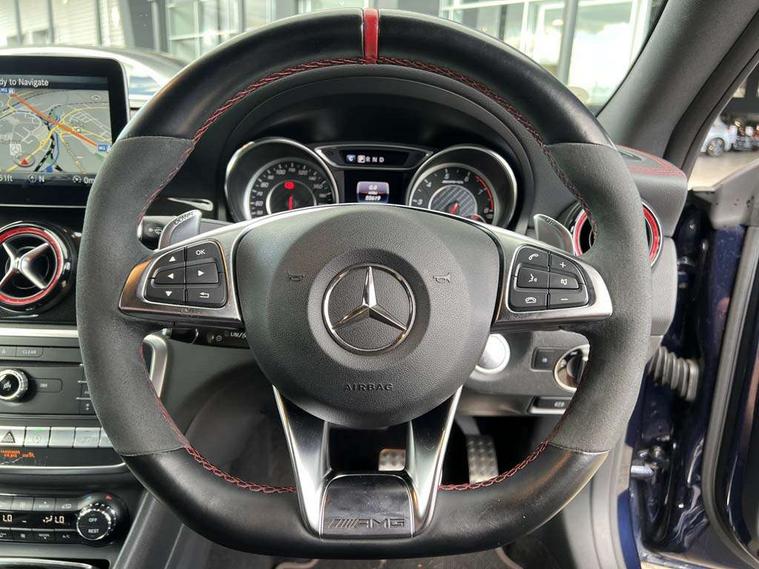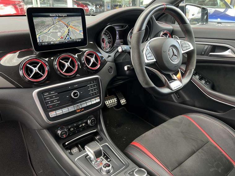 7" tablet style colour display, Active park assist with parktronic system, AMG speed sensitive sports steering, Attention assist, Bluetooth system, Collision prevention assist plus, Outside temperature gauge, Service indicator (ASSYST), Trip computer, DAB Digital radio, Media interface, Mercedes Audio 20 radio/single CD, USB connection, Adaptive brake lights, AMG body styling, Automatic headlights, Automatic rain sensing wipers, Bi-Xenon headlights with LED day running lights, Black high gloss beltline, Body colour bumpers, Body colour door handles, Electric adjustable heated door mirrors, Front and rear electric windows, Heated rear window with timer, Privacy glass, Twin black chrome exhaust pipes, 1/3 to 2/3 split folding rear seats, AMG floor mats, AMG illuminated door sills, AMG performance seats, Auto Mercedes-Benz child seat recognition sensor, Black roof lining, Dual zone climate control, Front centre armrest with storage box, Front footwell lights, Front head restraints, Gearshift paddles, Height adjustable front seats, Height/reach adjustable steering column, Illuminated glovebox, Isofix rear child seat fastenings, Leather gear knob, Load securing rings in luggage compartment, Multifunction steering wheel, Reading lights, Rear footwell lights, Rear head restraints, Sports pedals with rubber studs, Storage compartment under load area floor, Sunvisors with illuminated vanity mirrors, Tie down hooks in luggage area, Twin console mounted cup holders, 3x3 point rear seatbelts, ABS with Brake Assist, AMG high performance braking system, Child proof door locks, Drivers knee airbag, Dual stage driver/passenger airbags, Electronic parking brake, ESP with ASR, Front and rear seatbelt reminder, Front side airbags, Hill start assist, Tyre pressure monitoring system, Warning triangle and first aid kit, Window airbags, Anti theft alarm system, Immobiliser, Remote central locking, Black air vent surrounds with red insert, Tirefit,
