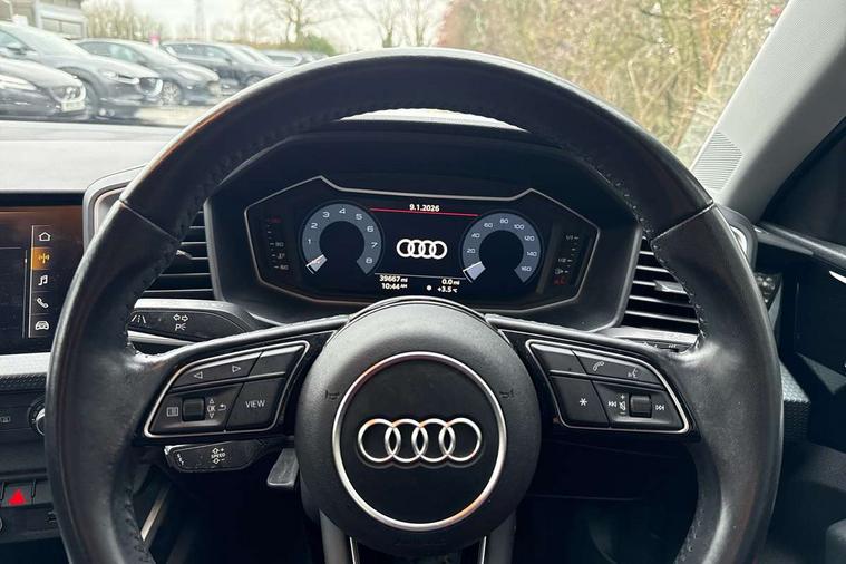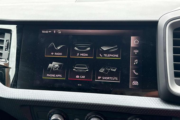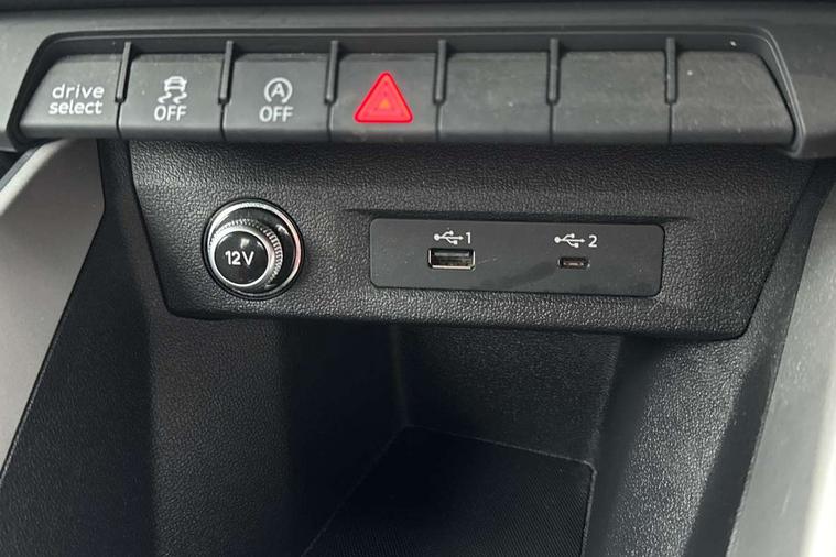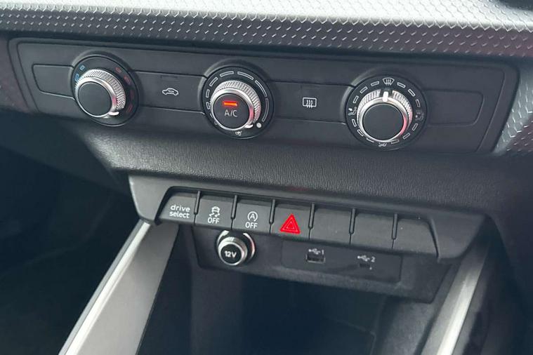 10.25" Digital instrument cluster display classis style instrument dials + speed, odometer, time, outside temperature, telephone menu + fuel level warning, Audi connect safety emergency and service including E-call, Audi drive select - power steering assistance + engine + gear shift 3 preset modes (auto, dynamic, efficiency and an Individual mode), Audi smartphone interface with connect compatible smartphone via USB directly MMI display + Nav, music, third party apps controlled via MMI controller, Automatic start/stop system, Bluetooth interface, Cruise control, Driver's information system, Electromechanical power steering, Lane departure warning system, Rear parking sensor, Service interval indicator, Speed limiter, Voice control system, Washer fluid level indicator, Dynamic suspension, 1 x SDXC card reader, 1 x USB type C and 1 USB type A charging points, DAB Digital radio, MMI radio plus with 8.8" colour MMI display screen and MMI touch, Auto dimming rear view mirror, Body coloured bumpers, Body coloured door mirrors, Electric front and rear windows, Electrically adjustable, heated, folding door mirrors with integrated LED side indicator, Front side air inlets in grained matt black and C frame in titanium black, Heat insulating glass windscreen and side windows, Heated rear windscreen, LED headlights with LED rear lights + dynamic rear indicators + headlight adjustment and high beam, turning light + LED daytime running lights, Radiator grille and rear diffuser in matt titanium black, Radiator protective grille frame in matt aluminium silver, Rain and light sensors, Rear fog lights, Rear wiper, Scandium grey tailpipe trim, Side front spoiler lips in grained matt black, 12V socket in centre console with two cup holders, 3 rear seats with headrests, 40:60 Split folding rear seat or folded fully, Door sill trims with aluminium inlay, Driver and passenger seat with manual height adjust with forward and backwards adjustment, Front head restraints, Front/rear floor mats, Height and reach adjustable steering wheel, ISOFIX child seat mounting for front passenger and outer rear seats including top tether attachment point of outer rear seats, Leather gear knob with aluminium trim, Leatherette handbrake grip, Luggage compartment light with front and rear reading lights, Manually adjustable lumbar support in front seats, Novum cloth upholstery with front sport seats, Titanium grey cloth headlining, Luggage compartment pack - A1, 3x3 point rear seatbelts, Audi pre-sense front with pedestrain and cyclist recognition, Brake assist function, Driver and front passenger airbag with front side and head airbags, Electronic Stability Control including ABS, EBD, ASR and EDL, Front and rear seatbelt reminder, Front passenger airbag deactivation switch, Hill hold assist, Seatbelt height adjustment for front seats, Seatbelt monitoring, Tyre pressure warning light, Warning triangle and first aid kit, Anti theft alarm, Anti theft wheel bolts and loose wheel warning, Immobiliser, Remote central locking with 2 foldaway keys, Aluminium trim for control switches, air vents and digital instrument cluster, Silver grey accent areas including air vents, door handle recesses and centre console in diamond paint finish, Slate grey inlays polygon structure in fine paint finish,