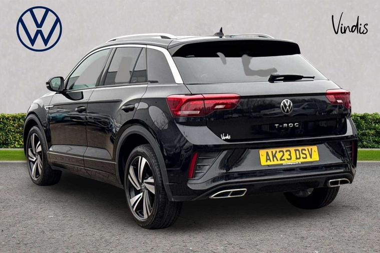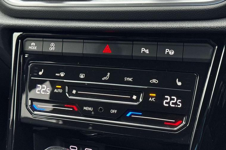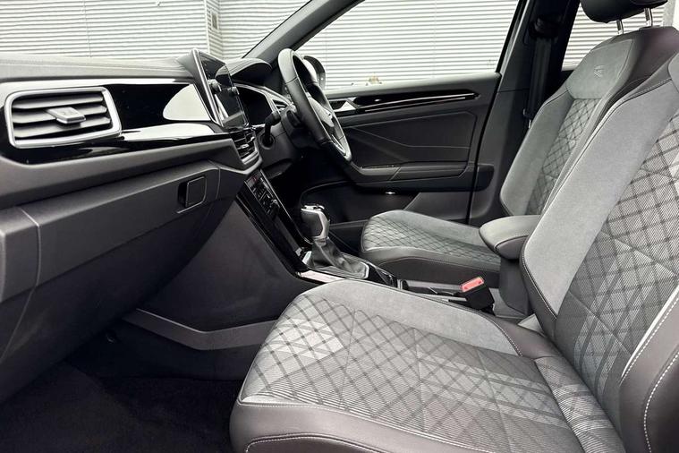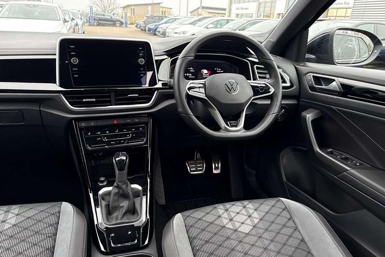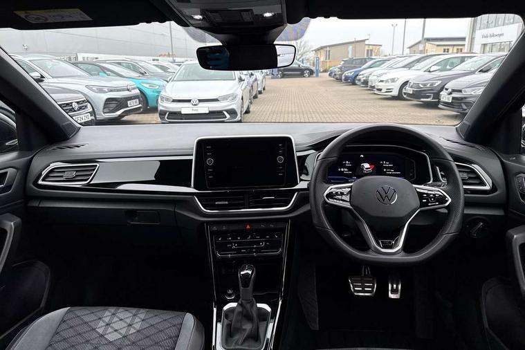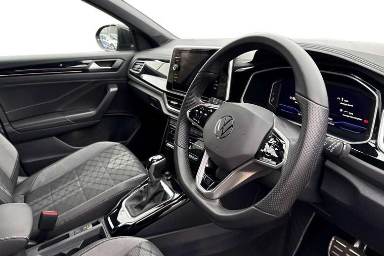 10.25" Digital cockpit pro, Bluetooth mobile phone interface, Driver alert system with fatigue detection, Driver tips and journey analysis, Emergency call service, Lane keeping system Lane Assist, Modified key software - reduce switch off time for key status change to Long no motion, Online services, Park assist including front and rear parking sensors, Service interval indicator, Tailgate/trunk lid release from outside, Think blue trainer driver tips and journey analysis, Warning sound and light for front seatbelts unfastened, Wireless app connect, Battery regeneration during braking, Start/stop function with battery regeneration, Diversity antenna for FM reception, Front and rear 6 speakers, Music playback - MP3, WMA and AAC files, Premium USB cable in choice of either Apple or Android smartphone compatibility, SD card slot, Simultaneous pairing of 2 compatible mobile devices, Title and cover art display, We Connect and We Connect Plus functionality, 3rd brake light, Auto dimming interior rear view mirror, Automatic hazard lights activation under emergency braking, Automatic headlight control with LED separate daytime running lights with coming/leaving home function, Extended roof spoiler, Exterior mirrors aspherical on driver side, convex on front passenger side, External USB type C socket and charging sockets, Front windscreen wiper with intermittent wipe and 4 position delay, Heated rear window, LED Plus headlamps, LED rear combination lamps, LED rear number plate lights, LED tail lamp rear comination lamps, Power windows with comfort operation and circuit breaker, R-Line design body coloured bumpers, Rain sensor, Rear exhaust tailpipe, Rear fog light on one side and reversing lights on both sides, Rear side wing doors, Rear wash/wipe with intermittent wipe setting, Remote electrically foldable door mirrors, puddle lights and reverse activated passenger's door mirror, 12V power socket in centre console, 3 rear head restraints, 3 seat bench in 2nd row, 4 load lashing points in luggage compartment, Air care climatronic air conditoning system with active combination filter and 2-zone temperature control, Black roof lining, Chrome plated radiator grille inserts, air vent surrounds and light switch surrounds, Door and side trim panel with leatherette insert, Drawer under drivers seat, Front + rear carpet mats, Front centre armrest, Front cupholders x 2, Front footwell illumination, Front reading light, Front scuff plates with R logo, Instrument lighting, white adjustable panel illumination, Interior ambient lighting and surround lighting, Interior light delay, Isofix child seat preparation, Leather gearshift handle, Load-through provision with cup holder when folded down ('Unsplit rear seat bench, split folding backrest, with centre armrest), Luggage compartment lighting, Single front passenger seat, Stainless steel pedals, Storage compartment in left and right luggage area, Storage compartment in rear doors, Storage compartments in driver and front passenger doors, Sunvisors with illuminated vanity mirrors, Variable boot floor, height adjustable and removable, Driver assistance pack without proactive passenger protection - T-Roc, 3 point height adj front seatbelts + pretensioners, 3 point seatbelts in outer rear with ECE label, ABS, Child locks on rear doors, Driver and front passenger airbag with front passenger airbag deactivation, Driver and front passenger safety-optimised head restraints, Drivers seatbelt reminder, Electronic parking brake, Electronic Stability Control (ESC) inc EDL (Electronic Differential Lock) and ASR (Traction Control), Front and rear passengers curtain airbag system including front side airbags, Front assist with city emergency braking and pedestrian monitoring, Front seat side impact airbags, Hill start assist, Predictive pedestrian protection, Rear disc brakes, Single tone horn, Tyre pressure loss indicator, Volkswagen roadside assistance, Alarm with interior protection, Anti-theft alarm system with interior monitoring, backup horn, and towing protection, Remote central locking with SAFELOCK, radio remote control with 2 remote control folding keys, Trims for alloy wheels,