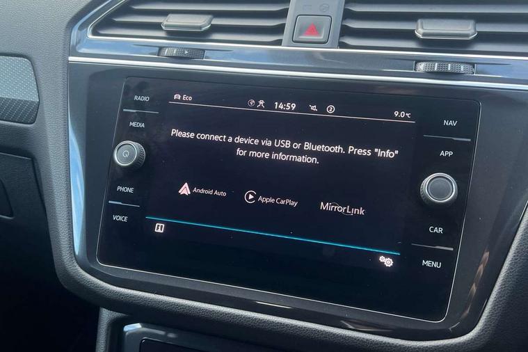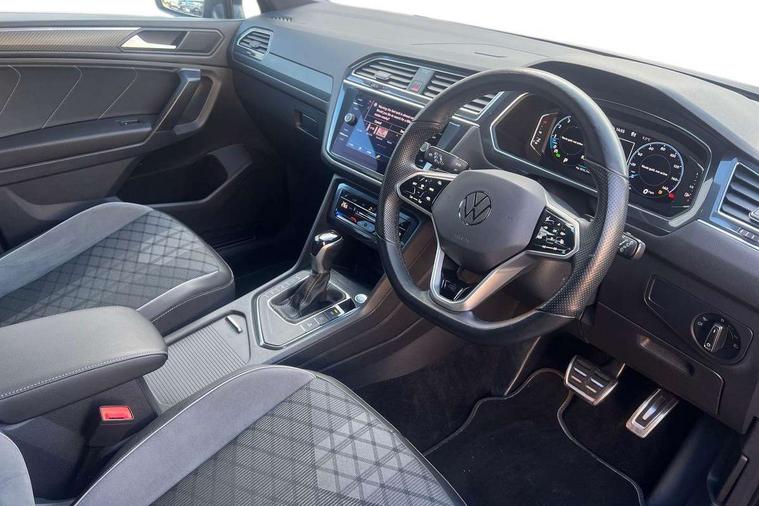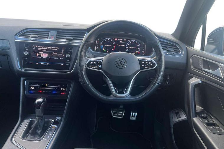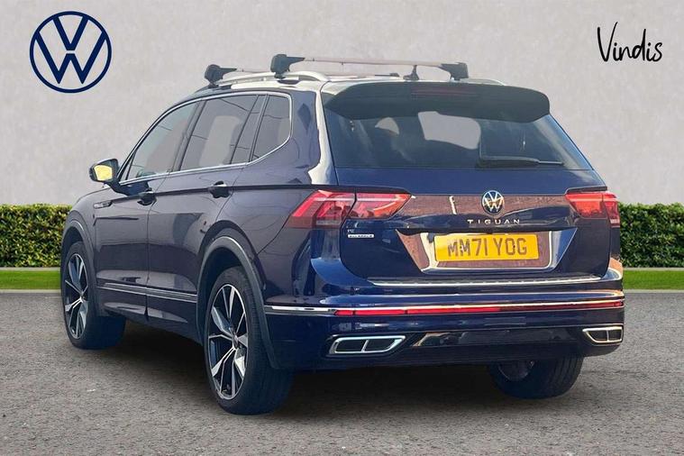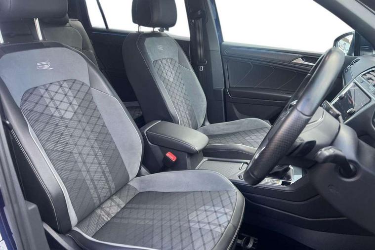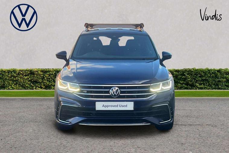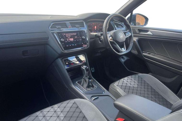 Adaptive cruise control, App-Connect, Digital cockpit pro, Driver alert system, Driver profile selection, Dynamic road sign display, eCall emergency call service, Electric boot lid, Lane change system side assist and rear traffic alert, Lane keeping system Lane Assist, Mobile phone interface comfort with inductive charging feature, Multifunction front facing camera, Power assisted speed sensitive steering, Speedo and rev counter, electronic odometer, trip, service interval display and exterior temperature gauge, Front wheel drive, Start-stop system with battery regeneration (recuperation - energy recovery during braking), 2 USB-C ports in the front, 1 USB-C charging socket on the center console in the rear, DAB Digital radio, Diversity antenna for FM reception, Radio, Auto dimming interior rear view mirror, Automatic headlight control system, Body coloured comfort bumpers, Chrome mouldings on side window, Coming/leaving home lighting function, Exterior badge deletion, Exterior mirror housings painted in silver, Heated windscreen washer jets, IQ light adv HBC, dyn light assist LED matrix headlamps, DH range, dark red LED rear combo light, poor weather, CL, LED headlamp with LED DRL and DCL - PXC, Privacy glass, Rain sensor, Rear fog light, Rear side wing doors, Rear wiper, Silver roof rails, Third brake light, Tilting and sliding panoramic sunroof, 12-volt outlet in centre console rear and luggage compartment, 12V socket in centre console, 3 head restraints in rear, 3 individual folding 2nd row seats, 3rd row 2 individual seats, Air Care Climatronic 3 zone automatic climate control with enhanced air filter and controls in the rear, Door and side trim panel, Drawers under front seats, Driver and front passenger seat height adjustment, Foldable front passenger seat backrest, Front + rear carpet mats, Front centre armrest, Front footwell illumination, Heated front seats, Illuminated scuff plates, ISOFIX anchorage points for mounting 2 child seats on rear seats and i-Size child seats, Leather gearshift handle, Leather-wrapped heated multi-function steering wheel with paddle shift, LED interior light with switch off delay/dimmer and 2 front/rear LED reading lights, Sun visors with illuminated vanity mirrors, Ambience pack - Tiguan Allspace, Easy open and close pack with safelock - Tiguan Allspace, Park assist pack - Tiguan Allspace, 3 point seat belt for centre rear seat, 3 rear three point seatbelts, ABS+EBD+Brake assist, Driver and front passenger safety-optimised head restraints, Driver's and front passenger's airbag with front passenger's airbag deactivation switch, Electronic parking brake, Electronic Stability Control (ESC) inc EDL (Electronic Differential Lock) and ASR (Traction Control), Height adjustable front 3 point seatbelts + pretensioners, Manual rear child locks, Pedestrian monitoring, PreCrash preventive occupant protection Front and rear, Rear disc brakes, Side airbag in front and rear with curtain airbag, Two tone horn, Warning buzzer for seatbelts if unfastened, Anti theft alarm system with interior monitoring, backup horn and towing protection, Anti-theft wheel bolts, Electronic steering lock, Remote central locking with 2 remote folding keys, Chequered flag tinanium decorative inserts,