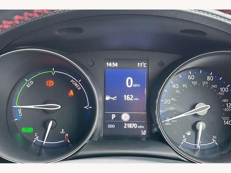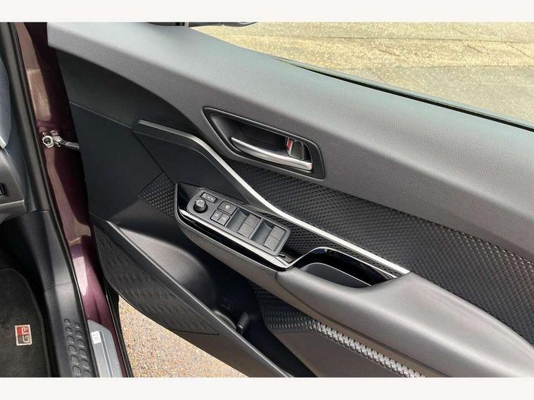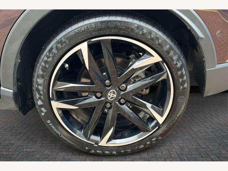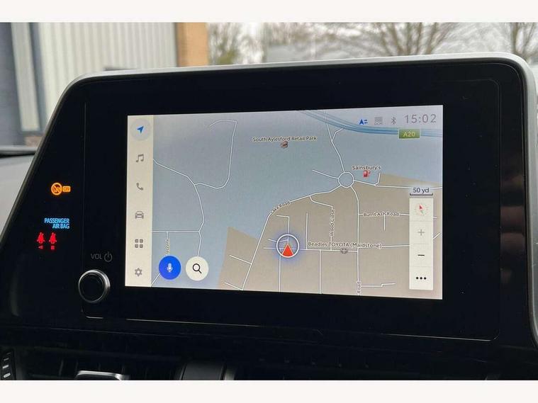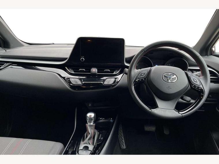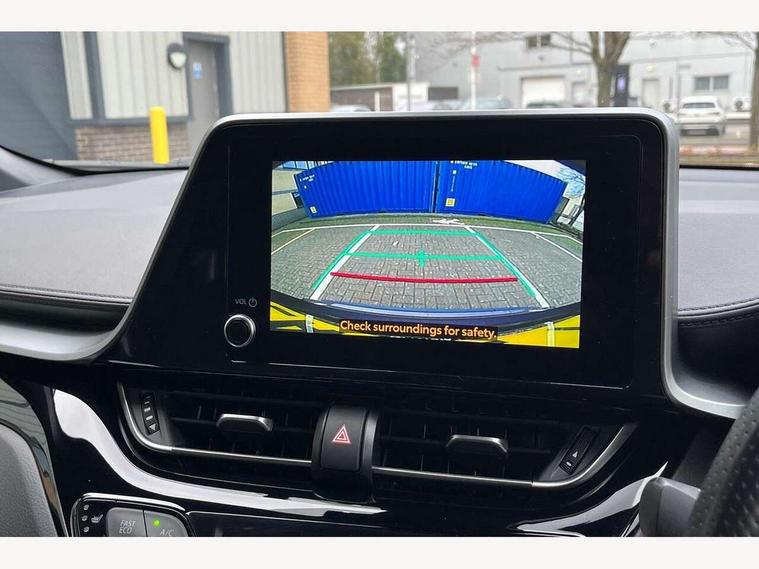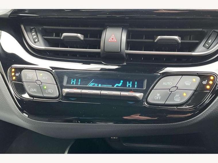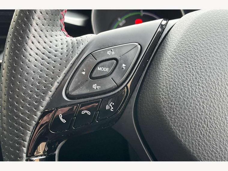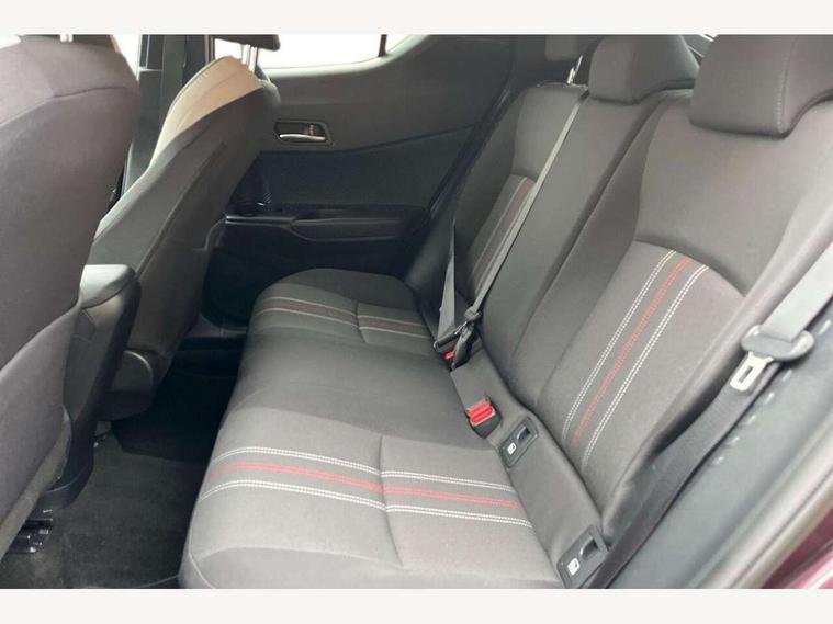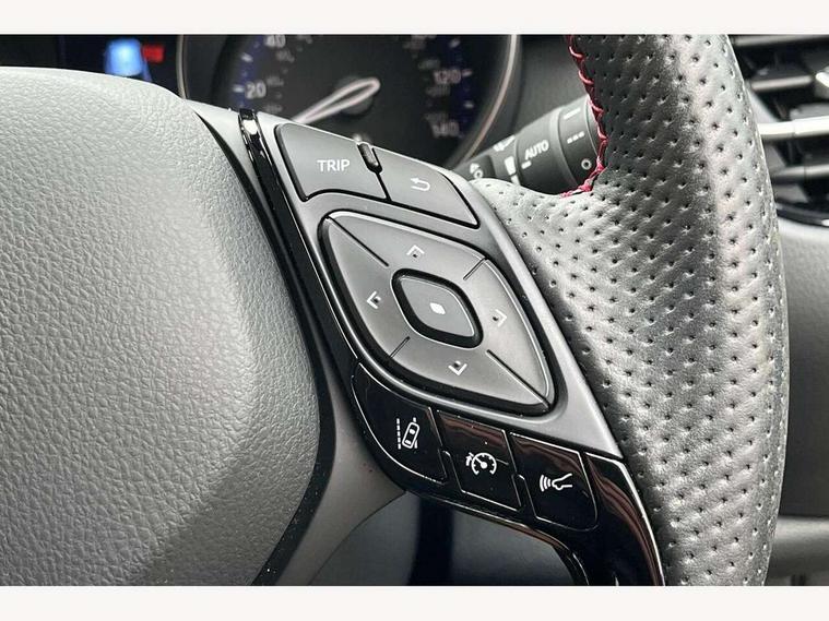 4.2" coloured TFT screen for multi-information display, Adaptive cruise control, Apple car play and Android auto, Bluetooth connectivity, E-call, Electric power steering, Hybrid system indicator, Lane departure alert with steering control, Lane trace assist, Push button tailgate release, Remote boot door release in cabin, Remote boot door release in key, Reversing camera, Road sign assist - RSA, Simple Intelligent parking assist, Smart voice assist, Touch 2 Go navigation system, Trip computer, Voice recognition, Wireless smartphone integration, Vehicle Stability Control (VSC), 6 speakers, AM/FM radio, DAB Radio (Digital Audio Broadcasting), Toyota touch 2 multimedia system with 8" display, USB connector, Wi-fi connectivity, Adaptive front light system, Adaptive LED Headlights, Anti-jam protection on power windows, Auto high beam, Auto up and down function on all power windows, Automatic headlight levelling, Automatic headlights, Automatic headlights cut-off, Black and body coloured rear bumper, Black upper front grille, Body colour door handles, Body colour door mirrors, Body coloured front bumper, Boot door release with push button, Chrome front lower bumper, Electric heated door mirrors, Follow me home headlights, Front and rear power windows, Front spoiler lip in black, Headlight cut off reminder, Honeycomb lower front grille, LED daytime running lights, LED fog lights, LED front light guide, LED High mounted stop light, LED rear brake lights, LED rear combination lights, Noise reduction layer on front windows and windscreen, Power adjustable door mirrors, Privacy glass, Rain sensor, Rear sequential indicators, Rear side wing doors, Rear spoiler, Rear tailgate, Rear window defogger, Rear window wiper, Shark fin antenna, UV-filter on driver and passenger windows, UV-filter on rear windows, Variable front intermittent wipers, 12v power outlet - front, 3 rear headrests, 3 seat bench in 2nd row, 3 spoke perforated leather steering wheel, 60/40 split folding rear seat, Adjustable rear headrests, Adjustable speed limiter switch on steering wheel, Assist grips front and centre pillar, Audio and telephone switches on steering wheel, Black front door assist grips, Blue ambient lighting on front cup holders, Blue ambient lighting on front doors, Boot light, Chrome interior door handles, Cloth upholstery, Driver and front passenger personal light, Driver and front passenger Whiplash Injury Lessening seats, Driver and passenger seatback pockets, Dual zone automatic air conditioning, Floor mats, Front cupholders, Front head restraints, Front sports seats, Glovebox with internal light, Hard tonneau cover, Heated driver and front passenger seats, Hooks for luggage holding net, Humidifying Nanoe air purifier, Illuminated entry system, Isofix attachments on outer rear seats, Leather gearshift, Light on driver sun visor, Light on passenger sun visor, Manual telescopic steering wheel, Manual tilt steering wheel, Manually height adjustable driver seat, Manually height adjustable front passenger seat, Manually reclining driver seat, Manually reclining front passenger seat, Manually sliding driver seat, Manually sliding front passenger seat, Microphone on front personal light, Mirror on driver sun visor, Mirror on passenger sun visor, Multimedia switches on steering wheel, Pollen filter, Power adjustable lumbar support on driver seat, Shopping bag hooks, Single front passenger seat, Slow opening on lower glovebox, Voice recognition switch on steering wheel, Tech with parking sensor pack - C-HR, 16 Disk front wheel brake, 3x3 point rear seatbelts, ABS+EBD+Brake assist, Electronic parking brake, Front and rear seatbelt reminder, Front passenger airbag on/off switch, Hill start assist control (HAC), Pre collision system with pedestrian detection, Pre-tensioners and force limiters, Rear door child safety locks, SRS Airbags - Driver + Front passenger, front side, front and rear curtain and driver's knee airbags, Toyota safety sense, Tyre pressure monitoring system, Tyre pressure warning system, Acoustic vehicle alert system (AVAS), Glass-breaking alarm sensors, Immobiliser, Intrusion alarm, Intrusion sensor, Motion sensor alarm, Power passenger window lock, Remote central locking, Black lower dashboard, Black upper dashboard, Piano black console, Silver deco line on upper dashboard, 19" Black machined alloy wheels, Tyre repair kit,