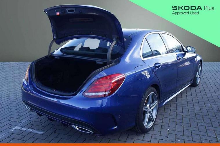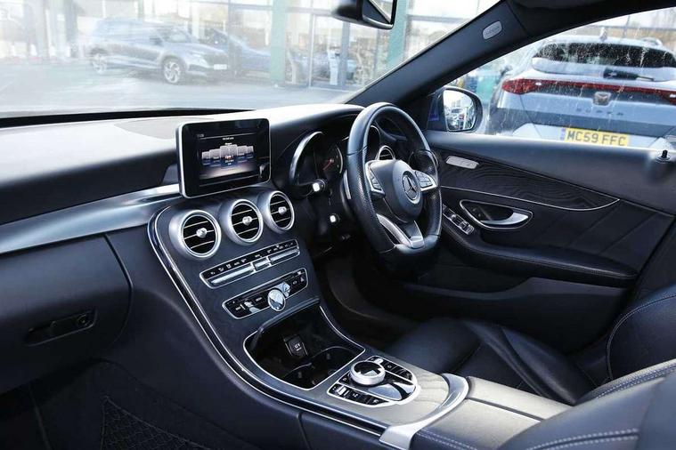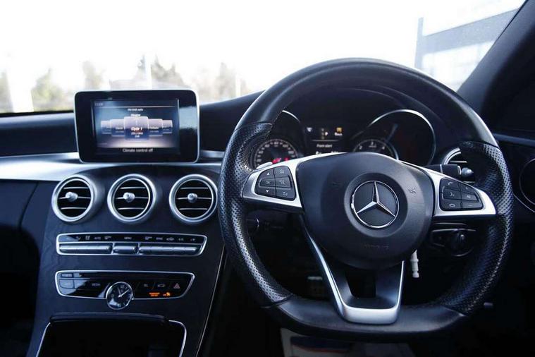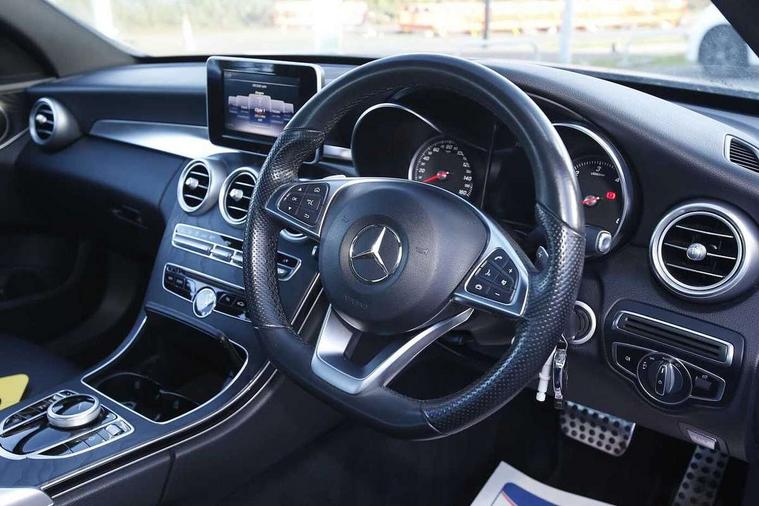 Active park assist with parktronic system, Analogue clock, Attention assist, Bluetooth system, Collision prevention assist, DYNAMIC SELECT with a choice of driving modes (ECO, Comfort, Sport, Sport+ and Individual), Garmin Map Pilot navigation system with SD card, touchpad and voice control, Multi function trip computer, Multifunction colour display, Outside temperature gauge, Remote boot release, Service indicator (ASSYST PLUS), Speed sensitive steering, Diesel particulate filter, 2 USB ports in centre console, DAB Digital radio, Frontbass loudspeakers, Mercedes Audio 20 radio/single CD + telephone keypad, SD card slot, Adaptive brake lights, AMG body styling, Body coloured bumpers, Electric windows one touch open/close, Electrically adjustable and heated door mirrors, Green tinted glass, LED daytime running lights, LED tail lights, Radiator grille with integral star and 2 louvres in matt iridium silver with chrome trim, Rain sensor windscreen wipers, Twin exhaust pipes, 2 cupholders in front centre console, 3 spoke AMG steering wheel in Nappa leather, AMG floormats, AMG sports seats, Auto Mercedes-Benz child seat recognition sensor, Dual zone automatic climate control, Electric front seat height adjustment, Front and rear head restraints, Front centre armrest with storage compartment, Gearshift paddles, Heated front seats, Height/reach adjustable steering column, Illuminated glovebox, Lumbar support, Multifunction steering wheel, Rear top tether child seat ISOFIX attachment, Sports pedals with stainless steel surfaces and rubber studs, Sunvisors with illuminated vanity mirrors, Lighting pack - C class, Mirror pack - C Class, Seat comfort pack - C Class, Stowage space pack - C Class, 3 rear 3 point seatbelts, ABS with Brake Assist, Active bonnet, Adaptive brake system, Child proof door locks, Drivers knee airbag, Dual stage driver/passenger airbags, Electronic parking brake, ESP with ASR, Front passenger seat occupancy sensor, Front side airbags, Hill start assist, Rear seatbelt warning indicator, Tyre pressure monitoring system, Warning triangle and first aid kit, Window airbags, Alarm system/interior protection/immobiliser, Chrome surround in electric key, Remote central locking, Tyre inflation kit,