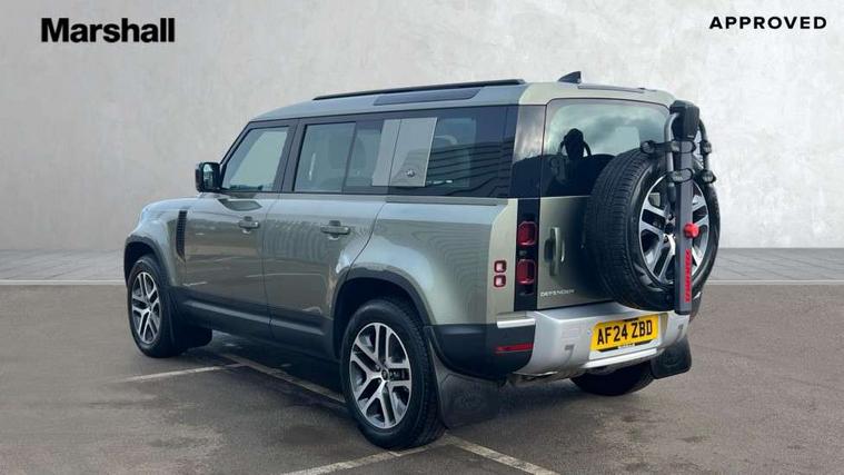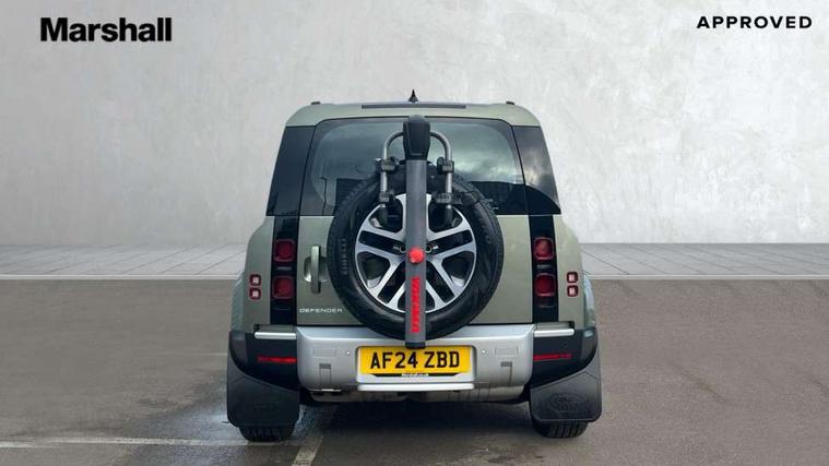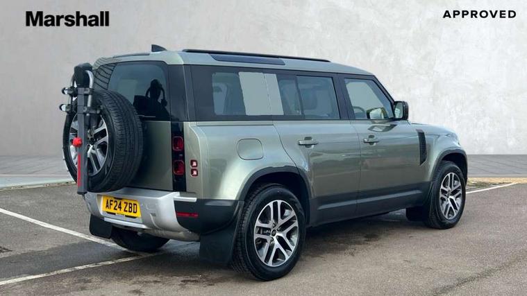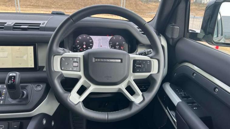 360 degree parking aid, 3D Surround Camera with 360 View, 180 Rear View, Front Traffic Detection, Forward Vehicle Guidance, Tow Hitch Assist and clear sight Ground View, Adaptive cruise control, Android Auto, Apple CarPlay, Assisted tailgate with soft close, Blind spot assist, Bluetooth system, Brake pad wear indicator, Clear exit monitor, Connected navigation pro, Driver condition monitor, Electric power assisted steering (EPAS), Interactive driver display, Lane keep assist, Push button start, Rear traffic monitor, Traffic sign recognition with adaptive speed limiter, Trip computer, Wade Sensing, 8 speed automatic transmission, Adaptive dynamics, All wheel drive system, Twin speed transfer box, DAB Radio (Digital Audio Broadcasting), Meridian 400w sound audio system with 11 speakers and subwoofer, Pivi pro connected, Automatic headlight levelling, Automatic headlights, Centre high mounted stop light, Electric heated/power fold door mirrors with approach lights and auto dimming driver side, Electric windows with one touch open/close and anti-trap, Follow me home lighting, Heated rear window with timer, Heated windscreen, LED tail lights, Puddle lights, Rain sensing windscreen wipers, Rear fog lights, Rear side wing doors, Rear wiper, Side hinged tailgate, Trailer stability assist, 12V power socket in loadspace, 2 seat bench in 3rd row, 3 seat bench in 2nd row, Alpine lights, Configurable cabin lighting, Durable rubber cabin flooring, Durable rubber loadspace flooring, Footwell lights, Front passenger isofix child seat attachment, Loadspace cover, Loadspace Hook, Multifunction steering wheel, Overhead stowage for sunglasses, Premium cabin lighting, Rear headrests, Rear ISOFIX, Rear reading lights, Single front passenger seat, Storage glovebox, Sunvisors with illuminated vanity mirrors, Online pack with data plan - Defender, 7 three point seatbelts, ABS, Brake hold function, Cornering brake control (CBC), Customer configurable autolock, DSC - Dynamic Stability Control, EBD - Electronic brakeforce distribution, Electric parking brake (EPB), Emergency brake assist, Emergency braking, ESP + traction control, Front airbags with passenger seat occupant detector, HDC - Hill descent control, Hill launch assist, Low traction launch, Power operated child locks, Remote for (e-Call, Optimised assistance call, InControl app, Climate, beep and flash and door), RSC - Roll stability control, Seat belt reminder, TPMS (Tyre pressure monitoring system), Alarm, Immobiliser, Intrusion sensor, Keyless entry, Locking wheel nuts,
