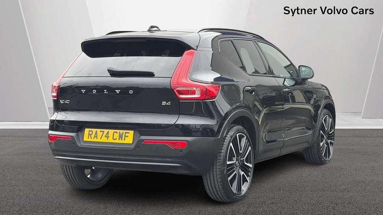 12.3" Progressive Driver Display, 360 degree surround view parking camera with side proximity sensors, 9" centre console portrait touch screen, Adjustable steering wheel force, Android auto (Wired), Apple carplay (wired), Bluetooth handsfree system, Driver alert control, Driver assistance (pilot assist and adaptive cruise control), Driver awareness - Blind spot information system with steer assist, cross traffic alert with autobrake and rear collision warning and mitigation, E-call, Front park assist, Google automotive services - Enabled entertainment apps, navigation with google maps, voice recognition with google assistant, Hands free power tailgate, Intelligent speed assistance, Lane keeping aid, Oncoming Lane Mitigation, Rear park assist, Speed sensitive steering, Volvo cars services with app - Driving journal, emergency and breakdown call, engine remote start, remote door locking/unlocking and vehicle dashboard, Wireless/Inductive Mobile Phone Charging, Automatic transmission with start/stop and manual change functions, Dynamic chassis, DAB Digital radio, Premium Sound by Harman Kardon, Dolby Pro Logic II Surround Sound, Dirac Unison, 12 speakers/600W and subwoofer, Steering wheel mounted remote controls, Active bending pixel LED headlights with adaptive shadow technology, Active high beam incorporating daytime running lights, Adaptive brake lights with high level LED brake lights, Auto dimming feature for exterior door mirrors, Auto dimming interior mirror, Automatic headlamp levelling, Dark tinted windows - rear side windows and rear screen, Front aluminium tread plates, Front and rear electric windows, Headlight cleaning system, High gloss black front and rear skid plate, High gloss black front bumper deco, High gloss black mesh front grille with high gloss black surround, High gloss black window trim, Home safe and approach lighting, Integrated roof rails in high gloss black, LED front fog lights with cornering function, Power glass tilt and slide panoramic sunroof with sun curtain, Puddle lights, Rain sensor with automatic windscreen wiper activation, Rear side wing doors, Rear wiper, Roof antenna, Roof spoiler, Visible VIN plate, 12V socket in front tunnel console and luggage compartment, 2-Zone electronic climate control with CleanZone air quality system and pollen filter, 3 seat bench in 2nd row, 3 Spoke tailored steering wheel with chrome trim, 60/40 versatile split folding rear seat, Centre console cupholders and storage, Flexible load floor and grocery bag holder, Floor mats, Front cabin courtesy lights, Front door pocket, front cupholder, ambient front door, rear reading, rear courtesy, instrument panel and tailgate lighting, Front footwell illumination, Front headrests, Front reading lights, Front seat cushion extensions, Front side step illumination (under door), Glovebox bag hook, Heated front seats, Height/reach adjustable steering column, High gloss centre tunnel deco, Illuminated glovebox, Illuminated luggage compartment, Illuminated vanity mirrors + ticket holder, Integrated waste bin, Isofix attachments on outer rear seats, Load cover, Load protection net, Multi directional lumbar support for driver and passenger seat, Power driver seat with memory + exterior mirrors memory, Power folding rear headrests, Power passenger seat, Rear armrest with cupholders, Single front passenger seat, Underfloor cargo storage, Climate pack without heated front seats - XC40, 3x3 point rear seatbelts, City safety with steering support with Pedestrian + cyclist + front collision warning with full auto brake and rear auto brake, Driver and passenger airbags, Drivers knee airbag, Electronic parking brake with auto hold, First aid kit, Front and outer rear seatbelt reminder and pretensioners, Front seats SIPS airbags, Hill descent control, Hill start assist, Inflatable curtain, Passenger airbag cut-off device, Power child locks on rear doors, Road sign information display, Run off Road Protection, SIPS (Side Impact Protection System), Slippery road and hazard light alert, Stability and Traction Control with Spin control, Engine Drag Control and Corner Traction Control, Tyre pressure monitoring system, Vehicle deceleration control with Anti-lock Brake System, Electronic Brake Distribution and Emergency Brake Assist, Warning triangle, WHIPS whiplash protection system - front, 2 x Key integrated remote control central locking including with deadlocking system and auto open/close windows and sunroof, Anti-theft alarm including immobiliser/volume sensor + level sensor, Keyless drive includes keyless entry and keyless start, Locking wheel nuts,