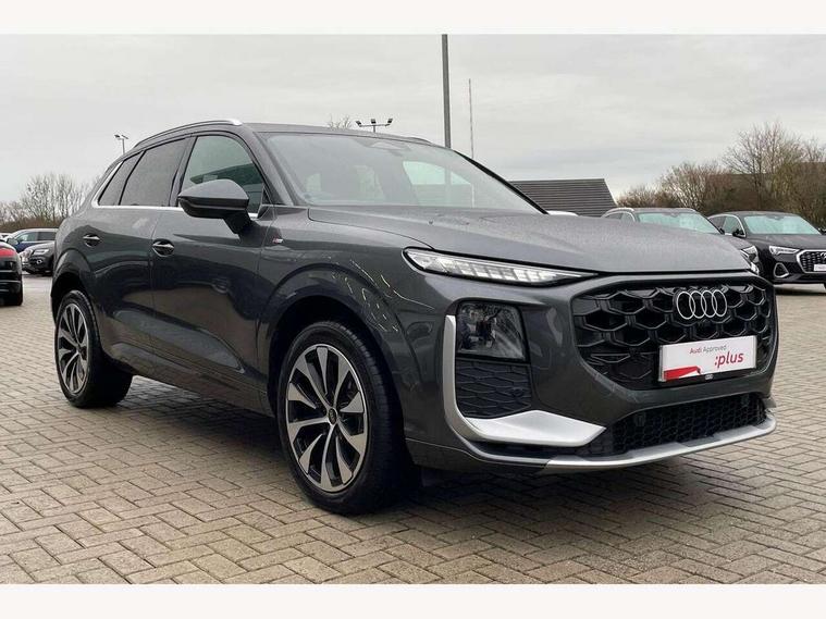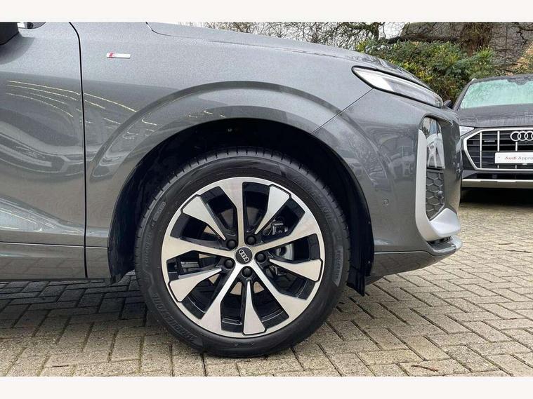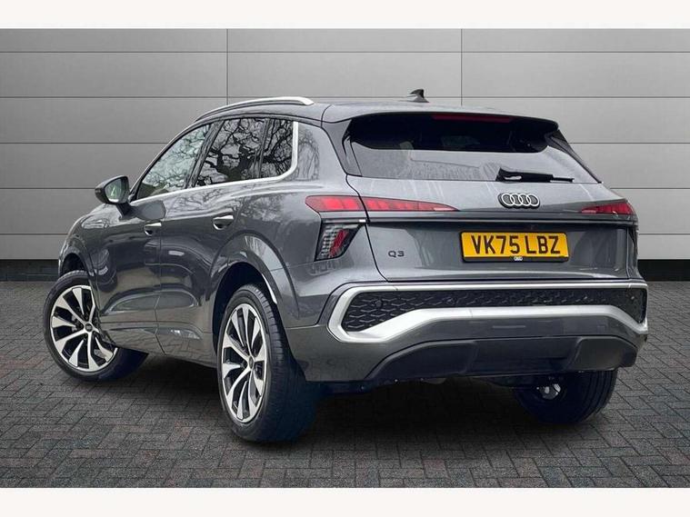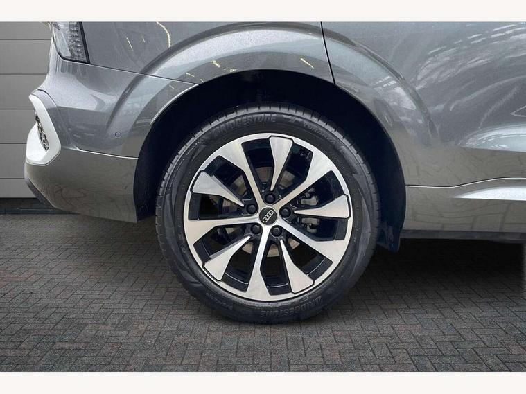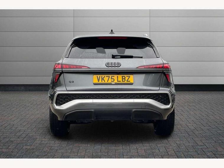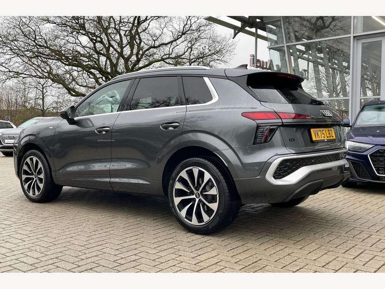 Adaptive cruise control, Audi connect emergency call and service, Audi connect remote and controls, Audi drive select (Balanced/Individual, effeciency, comfort and dynamic), Audi virtual cockpit plus - 11.9" display, Bluetooth interface, Camera based traffic sign recognition, Driver attention and fatigue monitor with driver monitoring, Front cross traffic assist, Lane departure warning with emergency assist, Panoramic curved display with 12.8" MMI navigation plus and MMI touch, Park assist plus with parking system and 360 display, Phonebox light with wireless charging, Reversing camera, Smartphone interface includes wireless Apple carplay/Android Auto, Start/stop system, Swerve assist and turn assist, Traffic sign based speed limiter, Voice control system with natural language interaction, Comfort suspension, Petrol Particulate Filter, 2 USB-C ports with charge and data functions, Audi sound system with 10 loudspeakers, subwoofer, 8 channel amplifier with 260 watts, DAB digital radio module, Acoustic glass for front door windows, Acoustic windscreen, Aluminium roof rails, Aluminium window trim, Audi Q3 lettering on the B-pillars, Auto dimming door mirrors, Auto dimming rear view mirror, Body colour door mirrors, Contrasting finish in volcano grey, Electrically folding, adjustable and heated door mirrors with integrated LED side indicators and kerb view function for passenger side, Full paint finish, Illuminated door sills with aluminium inserts at the front with S logo, LED daytime running lights, LED headlights plus with LED rear lights pro with continous light strip, illuminated Audi rings, rear, LED third brake light, Loading sill protector in stainless steel, Main beam assist, Privacy glass - dark tinted rear window, rear door and side windows, Projection light in the exterior mirrors - Projects a graphic element onto the ground, Q3 badging on the rear, Rain and light sensors, Rear side wing doors, Rear window, rear door windows and rear side windows in clear glass, Rear wiper, Sports bumpers, 3 seat bench in 2nd row, 3 spoke flat top and bottomed leather multi function sport steering wheel with gear shift paddles and "S" badging, 3-zone deluxe automatic air conditioning, 4 way lumbar support for the front seats - electric with horizontal and vertical adjustment in four directions, Black cloth headlining, Front and rear floor mats, Front and rear headrests, Front centre armrest, Heated front seats, Height and reach adjustable steering wheel, Interior storage compartment, Leather/artificial leather upholstery combination with S emblem + front sports seats, Luggage compartment lid, electrically opening and closing, Manual front seats with height adjustment, Rear seat bench plus with split folded 40:20:40, Single front passenger seat, Stainless steel pedals, Steering wheel operating unit, gloss black, Storage compartment in front centre console, Ambient lighting package pro - Q3, S line exterior styling pack - Q3, 3x3 point rear seatbelts, Convenience key with safelock, Driver and front passenger airbag with passenger airbag deactivation, Electromechanical parking brake, Electronic stabilisation control including ABS, ASR and EDL, First aid kit with warning triangle and high visibility vests, Front emergency brake assist, Hill hold assist, i - Size child seat mounting on the front passenger side and i - Size and top tether on the outer rear seats, Power operated child locks, Seatbelt monitoring, Three point automatic belts with belt tensioner and height adjustment, Tyre pressure loss indicator, Anti theft wheel bolts, Remote central locking, Thatcham approved category 1 anti theft alarm, Dark aluminium divergence inlay, Interior elements in dinamica microfibre, Interior trims in aluminium look, Tool kit and Jack,
