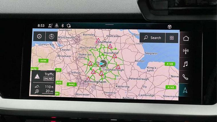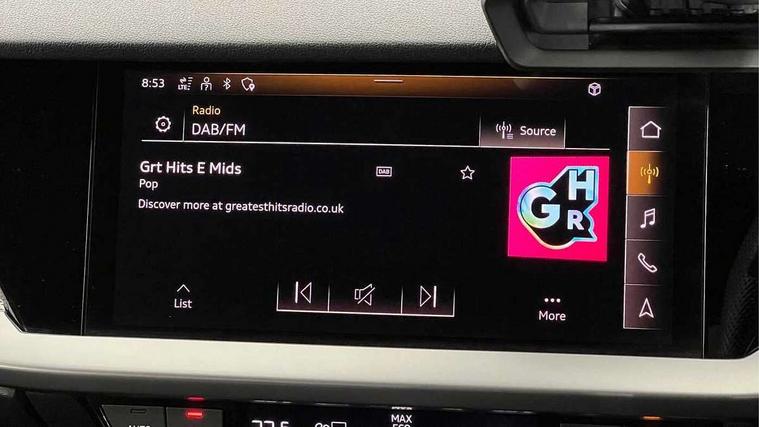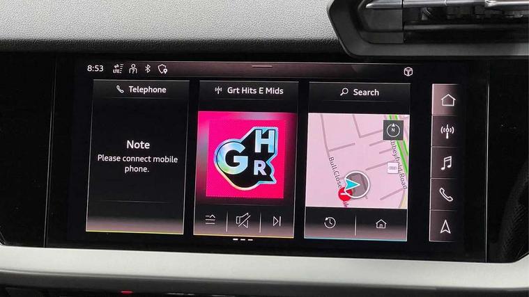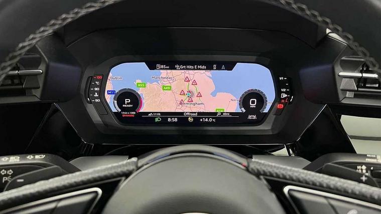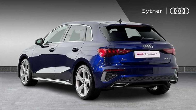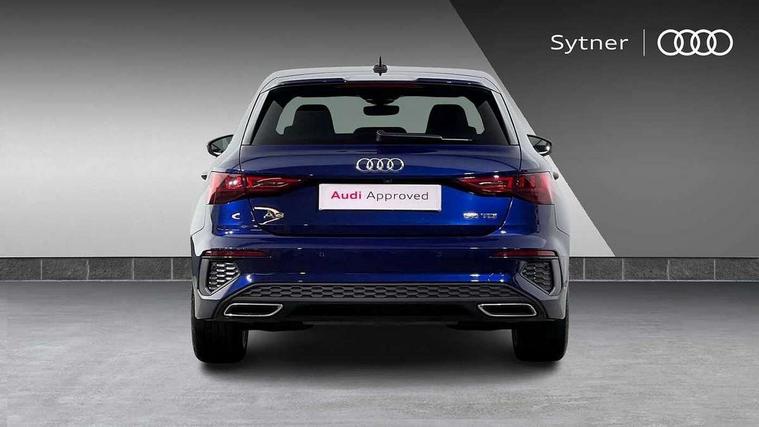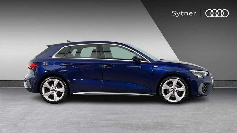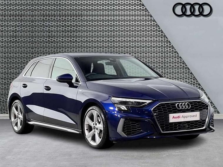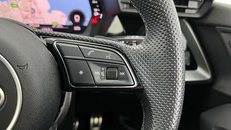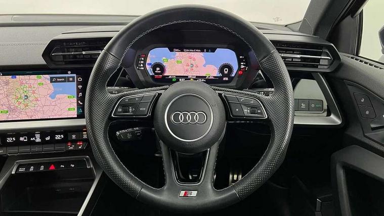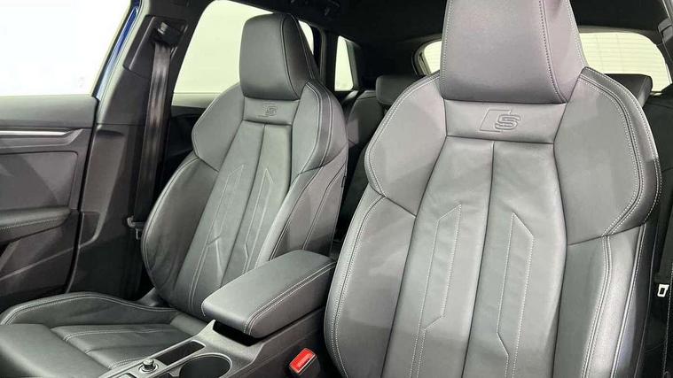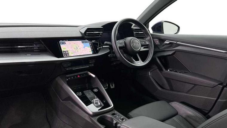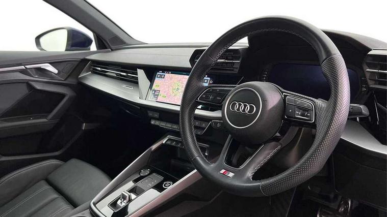 Audi drive select (Auto, Comfort, Dynamic, Efficiency and Individual), Audi smartphone interface, Audi Virtual Cockpit - 10.25" digital and colour instrument cluster, Automatic start/stop system with recuperation, Bluetooth interface, Collision avoidance assistant, e-Call (emergency call), Electromechanical power speed sensitive steering, Lane departure warning system, MMI Navigation Plus with high resolution 10.1" colour touch screen display, Service indicator, Trip computer, Voice control system with natural language interaction, Sports suspension, 2xUSB-C connection with data and charging functions, 6 passive loudspeakers, DAB Digital radio, 3rd brake light, Acoustic glass windscreen, Aluminium window trim, Auto dimming frameless rear view mirror, Body colour exterior mirrors, Electrically adjustable/heated/folding/auto dimming door mirrors with integrated LED indications + kerb view function for passenger side, Front electric windows, Illuminated aluminium inserts front door sills with S logo, LED daytime running lights, LED headlights with LED rear lights and dynamic rear indicators, Light and rain sensors, Privacy glass - dark tinted rear window, rear door and side windows, Rear electric windows, Rear side air outlets in grained matt black, Rear side wing doors, Rear wiper, S line bumpers, S roof spoiler, 12V socket and storage compartment in front centre console, 3 seat bench in 2nd row, 3 spoke leather multifunction steering wheel with paddle shift, 4 way electrically adjustable lumbar support for driver and front passenger, 60/40 split folding rear seat bench, Black cloth headlining, Dual zone electronic climate control, Front and rear centre armrest in leather, Front and rear headrests, Front/rear floor mats, Height and reach adjustable steering wheel, Interior lighting - glove compartment light and right hand side, Luggage compartment floor covering, Manual boot compartment lid, Manually adjustable front seats, Seat side bolsters, Single front passenger seat, Stainless steel pedals and front footrest in black, Twin leather upholstery with front sports seats S embossed logo, Aluminium interior elements pack - A3 Sportback, LED interior lighting pack - A3 Sportback, S line styling pack - A3 Sportback, 3x3 point rear seat belts, Driver and front passenger airbag with passenger airbag deactivation, Electronic Stabilisation Control (ESC) including ABS, ASR and EDL, First aid kit with warning triangle and 2 safety vests, Front side airbags with head airbags and interaction airbag, Pre-sense front with pedestrian and cyclist detection, Seatbelt monitoring, Tyre pressure loss indicator, Anti theft alarm, Anti-theft wheel bolts, Electronically operated child lock, Immobiliser, Remote control central locking, Dark spectrum aluminium inlays, accent surfaces in the dashboard and centre console in platinum grey silk effect paint finish,