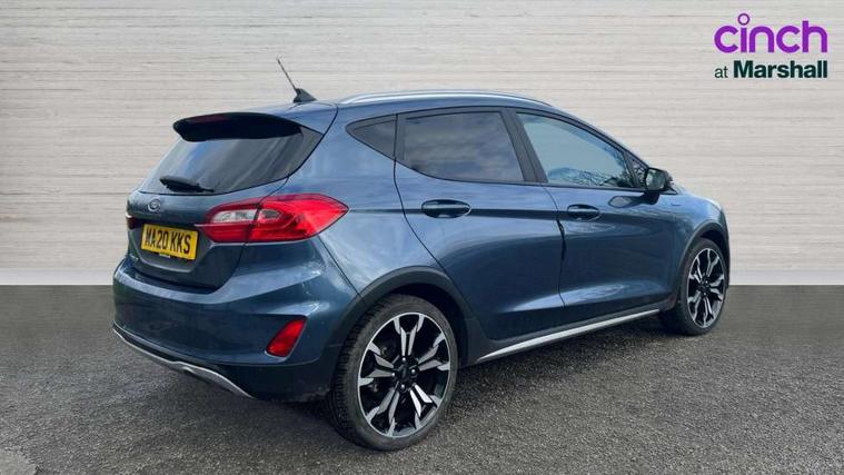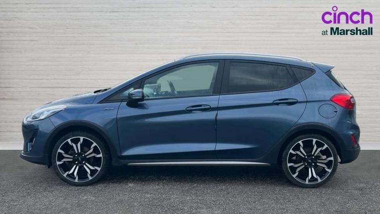 4.2" TFT instrument cluster screen, Bluetooth system, Drive mode selector, Electric power steering, Ford easy fuel, Rear parking distance sensors, Traffic sign recognition, Trip computer, Rough road suspension with increased ride height adjust, 2 USB ports, Auxiliary input socket, B&O Premium audio system with 8" touchscreen, 10 speakers, 360 degree sound system, Ford SYNC 3 navigation system and Ford pass connect, DAB Digital radio, Steering wheel mounted controls, Active logo front door thershold plates, Auto high beam, Body colour bumpers, Body colour door handles, Body colour rear spoiler, Chrome beltline trim, Cornering front fog lights, Electric front windows/one touch facility, Electric rear windows, LED Night signature to rear lights, Mesh design front grille with chrome surround, Power foldable door mirrors with puddle lights, Quickclear heated windscreen, Rain sensing wipers and auto dimming rear view mirror, Rear privacy glass, Rear wiper, Rugged body styling kit with active front wing badges, 12V Accessory socket in centre console, 3 spoke leather trimmed steering wheel with audio control, 60/40 split folding rear seat, Adjustable head restraints, Black headlining, Boot carpet, Centre console with armrest and illuminated cupholders, Chrome inner door handles, Drivers and Passenger lumbar support, EATC - Electronic Auto Temperature control, Footwell illumination, Front map reading lights, Front seat and rear pockets, Front/rear floor mats, Height adjustable driver's seat, Height adjustable passenger seat, Illuminated glovebox, LED ambient lighting, Load area light, Overhead console with sunglasses holder, Part leather upholstery, Pollen filter, Rake/reach adjustable steering wheel, Sensico wrapped handbrake and gearknob, NCAP Pack - Fiesta, 3 point seatbelts on all rear seats, ABS+EBA, Curtain airbags, Driver and passenger airbags, Drivers knee airbag, Electronic stability control with hill start assist, Front passenger airbag deactivation, Front side airbags, Seatbelt warning, Two tone horn, Tyre pressure monitoring system, Ford keyfree system with Keyless entry and keyless start, MyKey system, Remote central locking & engine immobiliser, Thatcham Cat.1 alarm, 18" 5 spoke alloy wheels with shadow black machined finish,