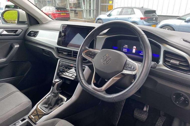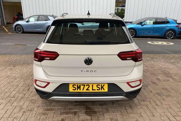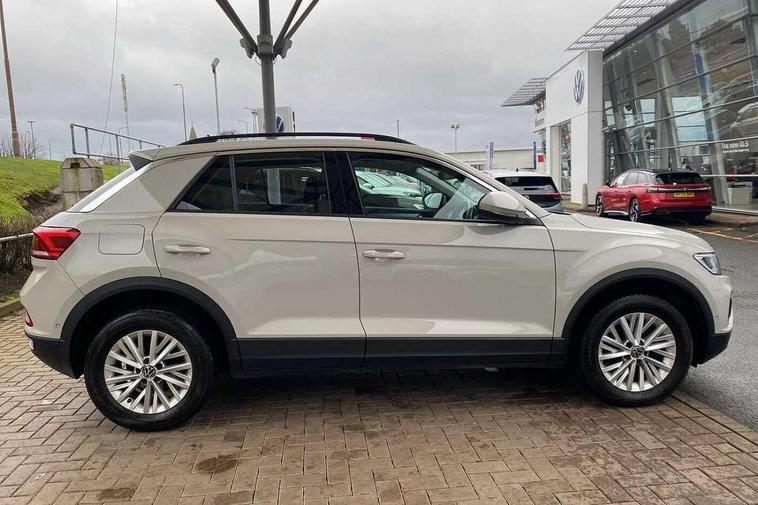 Bluetooth mobile phone interface, Driver alert system with fatigue detection, Driver tips and journey analysis, Emergency call service, Lane keeping system Lane Assist, Modified key software - reduce switch off time for key status change to Long no motion, Online services, Park assist including front and rear parking sensors, Power assisted speed sensitive steering, Service interval indicator, Tailgate/trunk lid release from outside, Think blue trainer driver tips and journey analysis, Warning sound and light for front seatbelts unfastened, Wireless app connect, Battery regeneration during braking, Front shock absorption, Rear shock absorption chassis with increased ride height, Start/stop function with battery regeneration, DAB Digital radio, Diversity antenna for FM reception, Front and rear 6 speakers, Music playback - MP3, WMA and AAC files, Premium USB cable in choice of either Apple or Android smartphone compatibility, SD card slot, Simultaneous pairing of 2 compatible mobile devices, Title and cover art display, We Connect and We Connect Plus functionality, 3rd brake light, Auto dimming interior rear view mirror, Automatic hazard lights activation under emergency braking, Automatic headlight control with LED separate daytime running lights with coming/leaving home function, Black roof rails, Body coloured bumpers and radiator grille with chrome trim and front fog lamps with chrome bezel, Body coloured exterior mirror housings and door handles, Extended roof spoiler, Exterior mirrors aspherical on driver side, convex on front passenger side, External USB type C socket and charging sockets, Front windscreen wiper with intermittent wipe and 4 position delay, Heated rear window, LED Headlights, LED rear combination lamps, LED rear number plate lights, LED tail lamp rear comination lamps, Power windows with comfort operation and circuit breaker, Rain sensor, Rear exhaust tailpipe, Rear fog light on one side and reversing lights on both sides, Rear side wing doors, Rear wash/wipe with intermittent wipe setting, Remote electrically foldable door mirrors, puddle lights and reverse activated passenger's door mirror, 12V power socket in centre console, 3 rear head restraints, 3 seat bench in 2nd row, 4 load lashing points in luggage compartment, Air care climatronic air conditoning system with active combination filter and 2-zone temperature control, Ambient lighting with mirror logo projection, Cloth upholstery, Door and side trim panel in cloth, Drawer under drivers seat, Driver/front passenger seat height adjustment, Front centre armrest, Front comfort sports seats, Front cupholders x 2, Front reading light, Instrument lighting, white adjustable panel illumination, Interior light delay, Isofix child seat preparation, Leather gearshift handle, Load-through provision with cup holder when folded down ('Unsplit rear seat bench, split folding backrest, with centre armrest), Luggage compartment lighting, Lumbar support for driver's and front passengers seat, Non-folding front passenger seat backrest, Single front passenger seat, Storage compartment in left and right luggage area, Storage compartment in rear doors, Storage compartments in driver and front passenger doors, Sunvisors with illuminated vanity mirrors, Variable boot floor, height adjustable and removable, Driver assistance pack without proactive passenger protection - T-Roc, 3 point height adj front seatbelts + pretensioners, 3 point seatbelts in outer rear with ECE label, ABS, Child locks on rear doors, Driver and front passenger airbag with front passenger airbag deactivation, Driver and front passenger safety-optimised head restraints, Drivers seatbelt reminder, Electronic parking brake, Electronic Stability Control (ESC) inc EDL (Electronic Differential Lock) and ASR (Traction Control), Front and rear passengers curtain airbag system including front side airbags, Front assist with city emergency braking and pedestrian monitoring, Front disc brakes, Front seat side impact airbags, Hill start assist, Predictive pedestrian protection, Rear disc brakes, Single tone horn, Tyre pressure loss indicator, Volkswagen roadside assistance, Alarm with interior protection, Anti-theft alarm system with interior monitoring, backup horn, and towing protection, Remote central locking with SAFELOCK, radio remote control with 2 remote control folding keys, Pewter matt decorative inserts for intrument panel, centre console and door panels at the front, Trims for alloy wheels,
