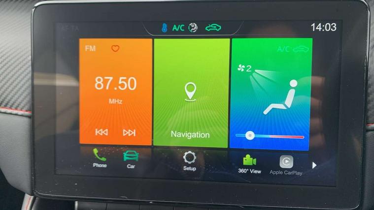 'Lights On' Reminder warning buzzer, 10.1" colour touchscreen, 360 degree parking camera, Android Auto, Apple CarPlay, Blind spot monitoring, Bluetooth connectivity, Cruise control with speed limiter, eCall emergency call system, Full digital driver information display, PAS, Rear cross traffic alert, Rear parking sensors, Satellite Navigation, Trip computer, USB mobile phone charging function, 6 speaker audio system with 3D sound, DAB audio, Radio/MP3 player, USB/aux input socket, Auto headlights, Body colour bumpers, Body colour door handles, Body colour electric adjustable folding heated door mirrors, Chrome side window trim, Follow me home headlights, Front and rear aero wiper, Front and rear electric windows with driver's one-touch up/down, Front fog lights, LED Bi-Function headlights, LED centre brake light, LED daytime running lights, Rain sensing wipers, Rear side wing doors, Rear spoiler, Rear wiper, Silver roof rails, 12V power sockets, 2nd row 60/40 split/fold, 3 rear headrests, 3 seat bench in 2nd row, 4 way manually adjustable passenger seat, 6 way electric adjustable drivers seat, Adjustable dual height boot floor, Air conditioning, Boot light, Driver's footrest, Front cupholders x 2, Front grab handles, Front headrests, Front reading lights, Front seat back map pockets, Glovebox, Heated front seats, Illuminated switches and controls, Internal chrome door handles, ISOFIX restraints on outer rear seats x2, Leather steering wheel, Leather upholstery with contrast stitching, Rake/reach adjustable steering wheel, Rear grab handle, Single front passenger seat, 3x3 point rear seatbelts, ABS/EBD, Anti rolling protection, Automatic unlocking of doors in case of impact, Child locks on rear doors, Dual front airbags, EBA, Electric parking brake with auto hold function, ESP, Front passenger airbag deactivation switch, Front seatbelts (3-point + pretensioner + load limiter), Front side airbags, Fuel cut off safety device, Hill launch assist, Rear door child safety locks, Rear passenger seatbelt alert, Seatbelt reminder for driver and front passenger, Side curtain airbags, Tyre pressure monitoring system, Alarm system and engine immobiliser, Automatic latching door, Keyless entry and push button start system, Remote central locking, Second remote key, Speed sensing door locks, Superlocking, 17" Tomahawk diamond cut alloy wheels, Tyre repair kit,