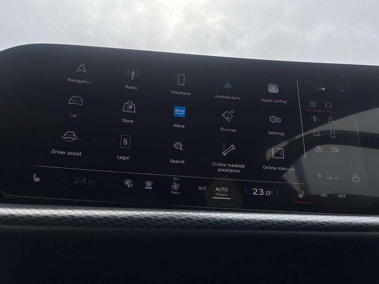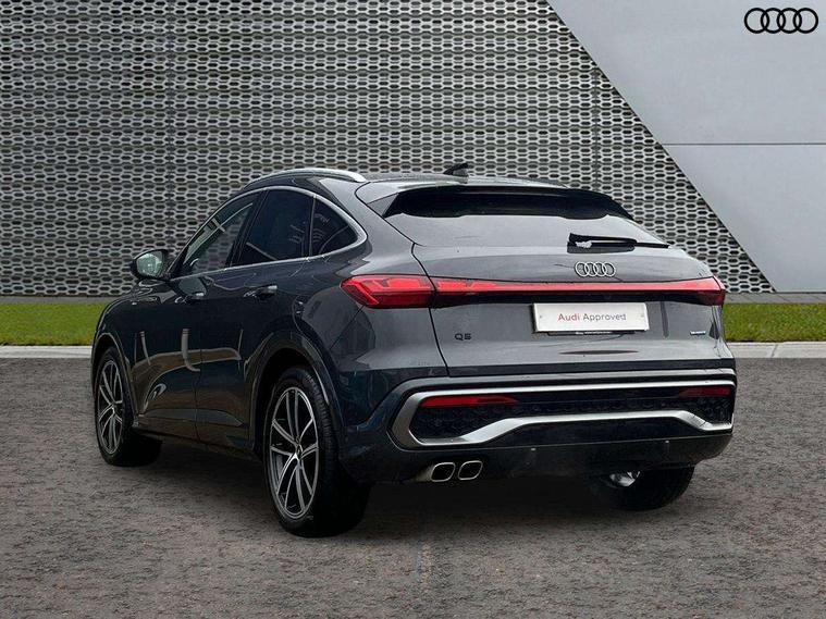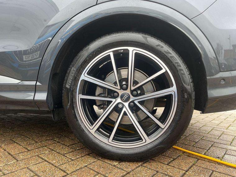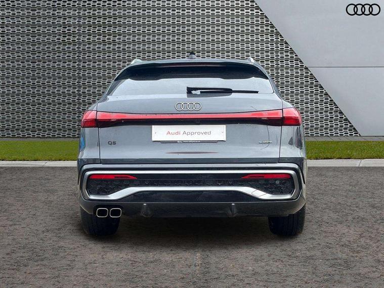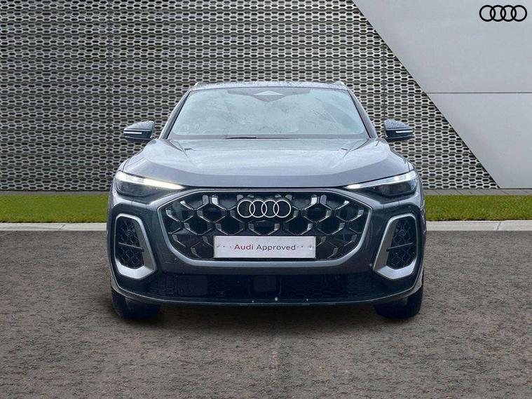 Adaptive cruise assist plus with steering intervention, Advanced driver attention alert, Audi application store, Audi connect emergency call and service, Audi digital key, Audi drive select, Audi smartphone interface, Audi virtual cockpit plus with 11.9" OLED colour display, Camera based traffic sign recognition, Fatigue monitor, Front cross traffic intersection assist, Garage door opener, Lane change assistant with exit warning system, rear cross traffic alert and rear turn assist, Lane departure warning with emergency assist, MMI 10.9" front passenger touch display, MMI navigation plus with high resolution 14.5" OLED touchscreen colour display, Park assist plus, Parking system plus with 360 display, PAS, Reversing camera, Swerve assist and turn assist, Top view camera, Traffic sign based speed limiter, Adaptive air suspension, 2 USB-C ports in both the front and rear, DAB Digital radio, Smartphone compartment with wireless charging, Acoustic glass for front door windows, Active digital light signatures - Six additional combinations of active daytime running light signature, Aluminium roof rails, Auto dimming rear view mirror, Body coloured door mirrors, Coming/leaving home lighting function, Digital OLED tail lights including communication light, Electrically adjustable heated and folding + automatically dimming exterior mirrors, Front and rear electric windows, Front door sill trims with aluminium inlays, illuminated with 'S' logo, Grill frame, inlay and front air inlets in matt anthracite chrome, Headlight cleaning system, Heated rear window, High beam assist, High gloss window surrounds, Logo projection light in exterior mirrors, Matrix LED headlights, Privacy glass, Projection third brake light for rear window in LED, Radiator grille in phantom black, Rear and side windows with heat insulating glass, Rear honeycombe grille in matt black with inlay in matt anthracite chrome, Rear side wing doors, Rear wash/wipe, S Line badge on the front wings, S line bumpers in contrasting Volcano grey metallic paint finish, Towbar preparation, Windscreen with acoustic glazing, 3 rear head restraints, 3 seat bench in 2nd row, 3 spoke leather steering wheel with multi-function buttons with touch control, flattened on top and bottom, with S badging and contrast stitching, 4 way electric lumbar support for driver and front passenger, 40:20:40 split folding rear seat bench with centre armrest and cup holders, Comfort centre armrest front, Deluxe 3 zone electronic climate control, Electric steering wheel adjustment, Electrically adjustable front seats with memory function for driver's side, Front and rear floor mats, Front sport seats with integrated head restraints, Headlining in black cloth, Heated front seats, Heated outer rear seats, Heated steering wheel, i-Size child seat mounting on the front passenger side and outer rear seats, i-Size and top tether on the outer rear seats, Interior trim in aluminium look, Luggage compartment lid, electrically opening and closing, Single front passenger seat, Softwrap in leatherette, Stainless steel pedals and footrest, Steering wheel grips in perforated leather and shift paddles, Twin leather upholstery, Ambient lighting package plus - Q5, Sound and Vision pack - Q5, Storage and luggage compartment pack - Q5, Vanadium pack - Q5, 3x3 point rear seatbelts, ABS, Acoustic vehicle alerting system, Convenience key with safelock, Driver and front passenger airbag with passenger airbag deactivation, Electric child safety locks, First aid kit with warning triangle and high visibility vests, Front emergency brake assist, Front side airbags with head airbag system and front interaction airbag, Hill hold assist, Occupant detection in rear seat area, Proactive passenger protection system for front, sides and rear, Side airbags in front and rear with head airbag system and front interaction airbag, Tyre pressure loss indicator, Anti theft alarm, Anti-theft wheel bolts, Remote control key with SAFELOCK and keyless go, Anthracite matt brushed aluminium inlays with linear embossing, Black dashboard with contrast stitching, Steel grey seat stitching, Upper and lower interior elements in artificial leather, 20" 5 twin spoke black metallic, gloss turned finish Audi Sport alloy wheels, Tyre repair kit,