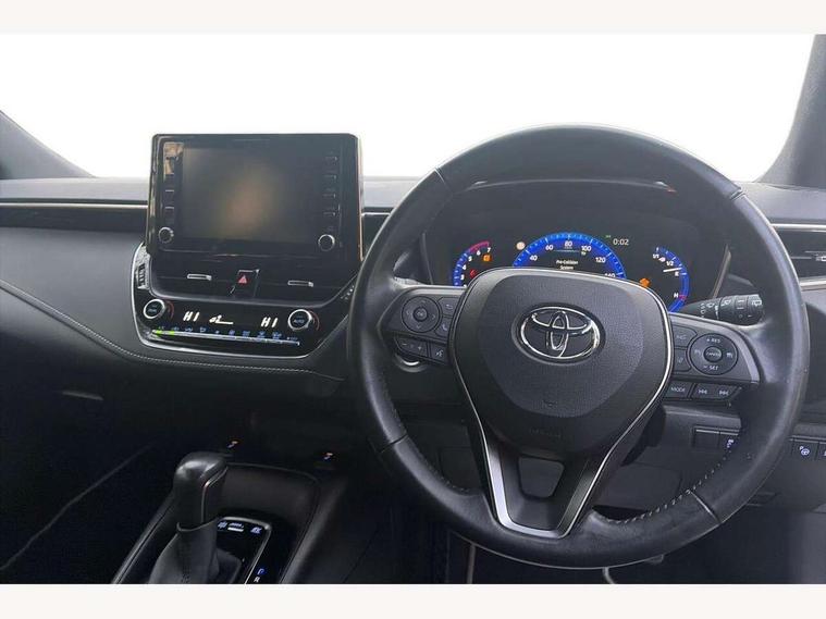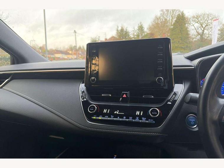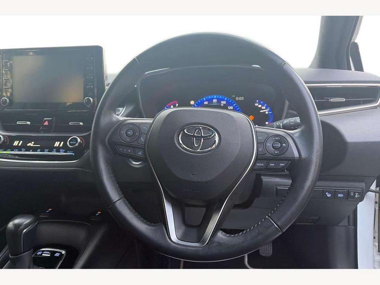 7" Multi information display screen, Bluetooth telephone connectivity, Connected car functionality upgrade, tracker, remote status and e-care, Dynamic radar cruise control (with RSA) including switch on steering wheel, E-call, Electrically assisted power steering, EV drive indicator, Intelligent park assist, Lane Departure Alert (LDA) switch on steering wheel, Memory on adjustable speed limiter, Push button start, Reversing camera, Smartphone integration with Apple CarPlay and Android auto, Gasoline particulate filter, Vehicle Stability Control (VSC), 6 speakers, 8" Touchscreen with MM19 Multimedia system and voice recognition, AM/FM radio, DAB Digital radio, Toyota touch 2 with go navigation system, USB and Aux in connectors + 12V front outlet, USB charging port in centre storage box, Aluminium roof rails, Anti-jam protection on power windows, Auto up and down function on all power windows, Automatic headlights with high beam assist, Black metallic surround on lower front grille, Black toyota logo in front, Body colour rear spoiler, Body coloured bumpers, Body coloured door mirrors, Body coloured outside door handles, Follow me home headlights, LED daytime running lights, LED front fog lights, LED Headlights, LED High mounted stop light, Manual day/night rear view mirror, Noise reduction layer on front windows, Power adjustable heated door mirrors, Power front windows, Power rear windows, Rain sensor, Rear side wing doors, Rear window defogger, Rear window wiper, Rear wing door, Shark fin antenna, Time adjustment on intermittent wiper, Turning signal integrated indicators in door mirrors, Unique lower skirt, Unique side rocker with black insert, UV-filter on driver and passenger windows, 12v power outlet - luggage side, 3 rear headrests, 3 seat bench in 2nd row, 3 spoke leather steering wheel + gear knob, 60/40 split folding rear seat, Adjustable speed limiter switch on steering wheel, Audio, multimedia and telephone switches on steering wheel, Boot light, Boot underfloor storage, Clean air filter, Driver and front passenger personal light, Driver and passenger assist grip, Driver and passenger sun visor with mirror and light, Dual sided deck board in boot, Dual zone automatic air conditioning with ECO mode switch, Fabric armrests, Front and rear cup and bottle holders, Front and rear door pockets, Front head restraints, Front passenger seat, Heated driver and front passenger seats, Illuminated entry system in room lamp, ISOFIX seat fixing (2 fixings on rear outer seats), Leather gear shift with satin chrome on gear shift console, Manual height adjustable for driver and front passenger seat, Passenger seat back pocket, Pollen filter, Power adjustable lumbar support on driver seat, Power window switches with satin chrome inserts, Quilted fabric upholstery with grey stitches seats, Rear armrest with 2 cupholders, Rear passenger air vents, Rear passenger coat hooks (2), Rear passenger personal lights, Retractable tonneau cover with luggage partition net, Satin chrome inside door handles, Shopping bag hooks in luggage compartment, Side storage in boot, Sliding armrest on centre console box, Slow opening glovebox with lights, Tilt/telescopic steering column, Tonneau cover with under floor storage, Voice recognition switch on steering wheel, Whiplash Injury Lessening (WIL) feature (active headrest) for seats, Parking pack - Corolla, Toyota safety sense 2 pack - Corolla, 3x3 point rear seatbelts, Adjustable driver and front passenger seat belt extender to top anchor point, Anti lock braking system + Electronic brake force distribution, Brake assist function, Child locks on rear doors, Downhill Assist Control (DAC), Electronic parking brake, Emergency brake light signal (EBS), Front passenger airbag on/off switch, Front seatbelt reminder, HAC - Hill start assist control, Rear seat belt reminder, Seatbelt pretensioners and force limiters, Supplemental restraint system (SRS) 7 airbags - dual driver, dual side curtain, side impact and driver knee airbags, Traction control, Tyre pressure warning system, Acoustic vehicle alert system (AVAS), Alarm with motion sensor and immobilizer, Remote central locking + deadlocks, Smart entry, Satin chrome dash trim, Soft touch texture on upper dashboard, Stitching on lower dashboard, Space saver spare wheel, Unique wheel finish with red wheel cap,