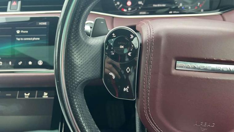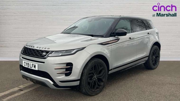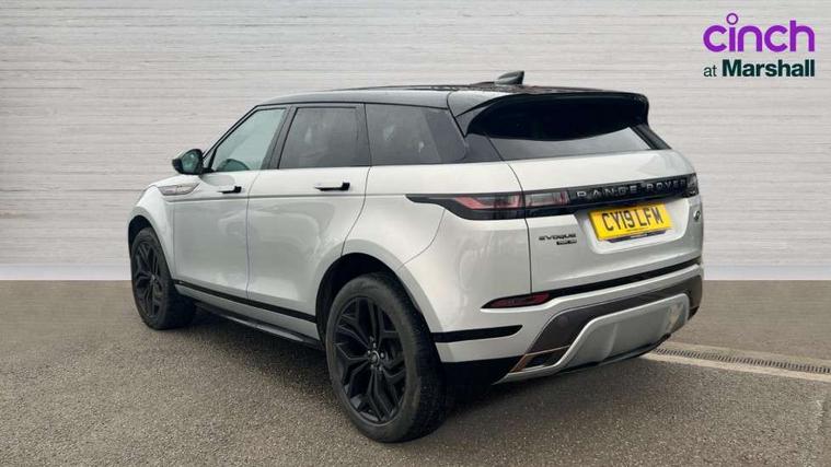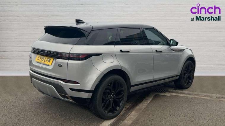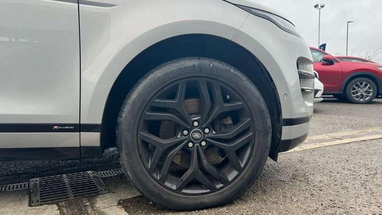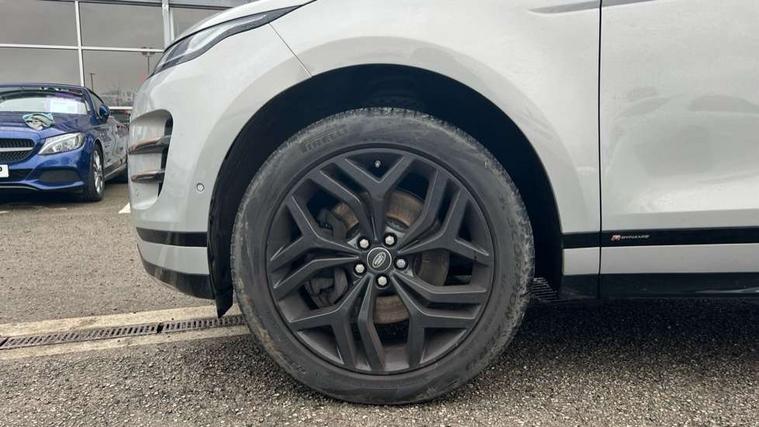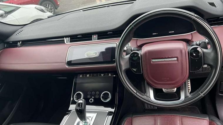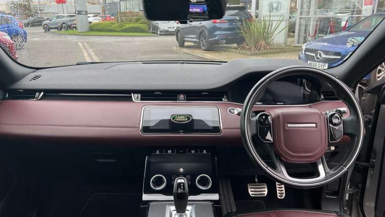 360 degree parking aid, Android Auto, Apple car play, Blind spot assist, Bluetooth connectivity, Brake pad wear indicator warning light, Clear exit monitor, Driver condition monitor, Duo touch pro, Electronic power assisted steering (EPAS), InControl remote, Interactive Driver display instrument cluster, Land Rover InControl apps, Lane keep assist, Navigation pro system, Park assist - Parallel, perpendicular and parking exit, Powered gesture tailgate/boot lid, Pro services and wifi hotspot, Push button starter, Rear traffic monitor, Smart settings, Traffic sign recognition with adaptive speed limiter, Voice control system, All terrain progress control, Efficient Driveline, Large fuel tank, Passive suspension, Terrain Response 2 Auto, Digital Audio Broadcast radio-DAB, Steering wheel mounted controls, Automatic headlight levelling, ClearSight interior rear view mirror, Electric windows with one touch open/close and anti trap, Evoque and R-Dynamic badge, Flush deployable exterior door handles, Heated rear window with timer, Heated washer jets, Heated windscreen, Power fold, auto-dimming, heated door mirrors with memory and approach lights, Rain sensing windscreen wipers, Rear fog lights, Standard roof, Tailgate spoiler, 40:20:40 split folding rear seats, Black gearshift paddles, Bright metal pedals, Isofix system on outer rear seats, Overhead lighting console, Overhead stowage for sunglasses, Passive front head restraints, Rear air vents, Rear centre headrest, Sunvisors with illuminated vanity mirrors, Twin front cupholders with cover, Twin sliding front centre armrest, Two zone climate control, Anti-lock braking system (ABS), Customer configurable autolock, DSC - Dynamic Stability Control, Electronic brake force distribution, Electronic parking brake, Electronic traction control, Front and rear seatbelt reminder, High speed emergency braking, Hill descent control, Hill launch assist, Low traction launch, Power operated child locks, Roll stability control, Six airbags - Driver and passenger airbags/driver knee airbag/front side airbag and curtain airbags, Torque vectoring brake, Tyre pressure monitoring system, Alarm, Immobiliser, Intrusion sensor, Keyless entry, Locking wheel nuts,