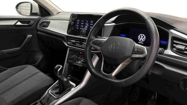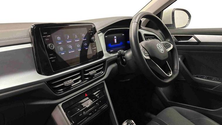 Bluetooth mobile phone interface, Driver alert system with fatigue detection, Driver tips and journey analysis, Emergency call service, Lane keeping system Lane Assist, Modified key software - reduce switch off time for key status change to Long no motion, Online services, Park assist including front and rear parking sensors, Power assisted speed sensitive steering, Service interval indicator, Tailgate/trunk lid release from outside, Think blue trainer driver tips and journey analysis, Warning sound and light for front seatbelts unfastened, Wireless app connect, Battery regeneration during braking, Front shock absorption, Rear shock absorption chassis with increased ride height, Start/stop function with battery regeneration, DAB Digital radio, Diversity antenna for FM reception, Front and rear 6 speakers, Music playback - MP3, WMA and AAC files, Premium USB cable in choice of either Apple or Android smartphone compatibility, SD card slot, Simultaneous pairing of 2 compatible mobile devices, Title and cover art display, We Connect and We Connect Plus functionality, 3rd brake light, Auto dimming interior rear view mirror, Automatic hazard lights activation under emergency braking, Automatic headlight control with LED separate daytime running lights with coming/leaving home function, Black roof rails, Body coloured bumpers and radiator grille with chrome trim and front fog lamps with chrome bezel, Body coloured exterior mirror housings and door handles, Extended roof spoiler, Exterior mirrors aspherical on driver side, convex on front passenger side, External USB type C socket and charging sockets, Front windscreen wiper with intermittent wipe and 4 position delay, Heated rear window, LED Headlights, LED rear combination lamps, LED rear number plate lights, LED tail lamp rear comination lamps, Power windows with comfort operation and circuit breaker, Rain sensor, Rear exhaust tailpipe, Rear fog light on one side and reversing lights on both sides, Rear side wing doors, Rear wash/wipe with intermittent wipe setting, Remote electrically foldable door mirrors, puddle lights and reverse activated passenger's door mirror, 12V power socket in centre console, 3 rear head restraints, 3 seat bench in 2nd row, 4 load lashing points in luggage compartment, Air care climatronic air conditoning system with active combination filter and 2-zone temperature control, Ambient lighting with mirror logo projection, Cloth upholstery, Door and side trim panel in cloth, Drawer under drivers seat, Driver/front passenger seat height adjustment, Front centre armrest, Front comfort sports seats, Front cupholders x 2, Front reading light, Instrument lighting, white adjustable panel illumination, Interior light delay, Isofix child seat preparation, Leather gearshift handle, Load-through provision with cup holder when folded down ('Unsplit rear seat bench, split folding backrest, with centre armrest), Luggage compartment lighting, Lumbar support for driver's and front passengers seat, Non-folding front passenger seat backrest, Single front passenger seat, Storage compartment in left and right luggage area, Storage compartment in rear doors, Storage compartments in driver and front passenger doors, Sunvisors with illuminated vanity mirrors, Variable boot floor, height adjustable and removable, Driver assistance pack without proactive passenger protection - T-Roc, 3 point height adj front seatbelts + pretensioners, 3 point seatbelts in outer rear with ECE label, ABS, Child locks on rear doors, Driver and front passenger airbag with front passenger airbag deactivation, Driver and front passenger safety-optimised head restraints, Drivers seatbelt reminder, Electronic parking brake, Electronic Stability Control (ESC) inc EDL (Electronic Differential Lock) and ASR (Traction Control), Front and rear passengers curtain airbag system including front side airbags, Front assist with city emergency braking and pedestrian monitoring, Front disc brakes, Front seat side impact airbags, Hill start assist, Predictive pedestrian protection, Rear disc brakes, Single tone horn, Tyre pressure loss indicator, Volkswagen roadside assistance, Alarm with interior protection, Anti-theft alarm system with interior monitoring, backup horn, and towing protection, Remote central locking with SAFELOCK, radio remote control with 2 remote control folding keys, Pewter matt decorative inserts for intrument panel, centre console and door panels at the front, Trims for alloy wheels,