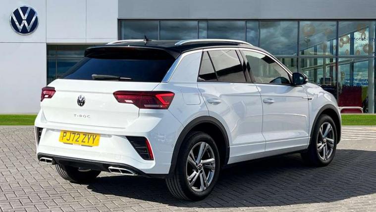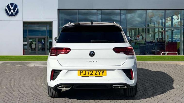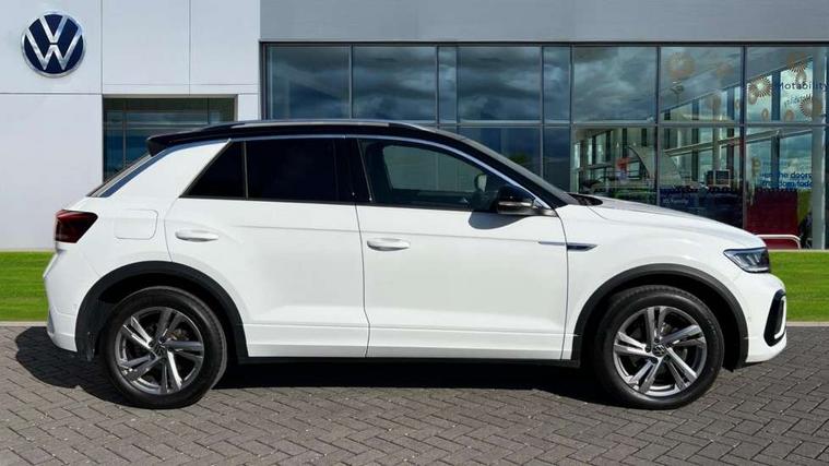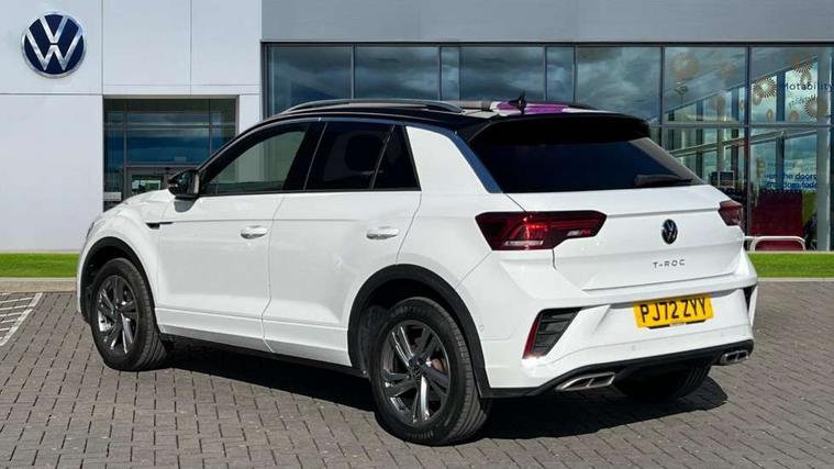 10.25" Digital cockpit pro, Bluetooth mobile phone interface, Driver alert system with fatigue detection, Driver tips and journey analysis, Emergency call service, Lane keeping system Lane Assist, Modified key software - reduce switch off time for key status change to Long no motion, Online services, Park assist including front and rear parking sensors, Service interval indicator, Tailgate/trunk lid release from outside, Think blue trainer driver tips and journey analysis, Warning sound and light for front seatbelts unfastened, Wireless app connect, Battery regeneration during braking, Start/stop function with battery regeneration, Diversity antenna for FM reception, Front and rear 6 speakers, Music playback - MP3, WMA and AAC files, Premium USB cable in choice of either Apple or Android smartphone compatibility, SD card slot, Simultaneous pairing of 2 compatible mobile devices, Title and cover art display, We Connect and We Connect Plus functionality, 3rd brake light, Auto dimming interior rear view mirror, Automatic hazard lights activation under emergency braking, Automatic headlight control with LED separate daytime running lights with coming/leaving home function, Extended roof spoiler, Exterior mirrors aspherical on driver side, convex on front passenger side, External USB type C socket and charging sockets, Front windscreen wiper with intermittent wipe and 4 position delay, Heated rear window, LED Plus headlamps, LED rear combination lamps, LED rear number plate lights, LED tail lamp rear comination lamps, Power windows with comfort operation and circuit breaker, R-Line design body coloured bumpers, Rain sensor, Rear exhaust tailpipe, Rear fog light on one side and reversing lights on both sides, Rear side wing doors, Rear wash/wipe with intermittent wipe setting, Remote electrically foldable door mirrors, puddle lights and reverse activated passenger's door mirror, 12V power socket in centre console, 3 rear head restraints, 3 seat bench in 2nd row, 4 load lashing points in luggage compartment, Air care climatronic air conditoning system with active combination filter and 2-zone temperature control, Black roof lining, Chrome plated radiator grille inserts, air vent surrounds and light switch surrounds, Door and side trim panel with leatherette insert, Drawer under drivers seat, Front + rear carpet mats, Front centre armrest, Front cupholders x 2, Front footwell illumination, Front reading light, Front scuff plates with R logo, Instrument lighting, white adjustable panel illumination, Interior ambient lighting and surround lighting, Interior light delay, Isofix child seat preparation, Leather gearshift handle, Load-through provision with cup holder when folded down ('Unsplit rear seat bench, split folding backrest, with centre armrest), Luggage compartment lighting, Single front passenger seat, Stainless steel pedals, Storage compartment in left and right luggage area, Storage compartment in rear doors, Storage compartments in driver and front passenger doors, Sunvisors with illuminated vanity mirrors, Variable boot floor, height adjustable and removable, Driver assistance pack without proactive passenger protection - T-Roc, 3 point height adj front seatbelts + pretensioners, 3 point seatbelts in outer rear with ECE label, ABS, Child locks on rear doors, Driver and front passenger airbag with front passenger airbag deactivation, Driver and front passenger safety-optimised head restraints, Drivers seatbelt reminder, Electronic parking brake, Electronic Stability Control (ESC) inc EDL (Electronic Differential Lock) and ASR (Traction Control), Front and rear passengers curtain airbag system including front side airbags, Front assist with city emergency braking and pedestrian monitoring, Front seat side impact airbags, Hill start assist, Predictive pedestrian protection, Rear disc brakes, Single tone horn, Tyre pressure loss indicator, Volkswagen roadside assistance, Alarm with interior protection, Anti-theft alarm system with interior monitoring, backup horn, and towing protection, Remote central locking with SAFELOCK, radio remote control with 2 remote control folding keys, Trims for alloy wheels,