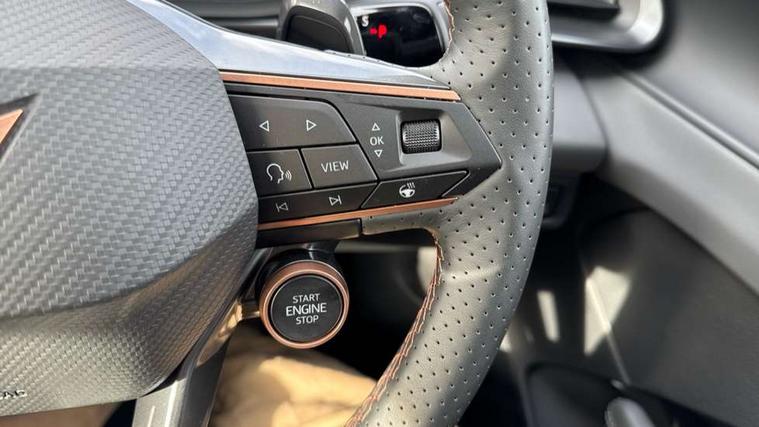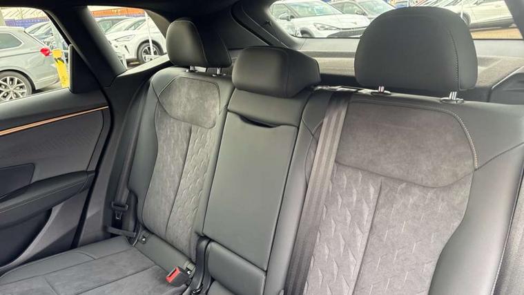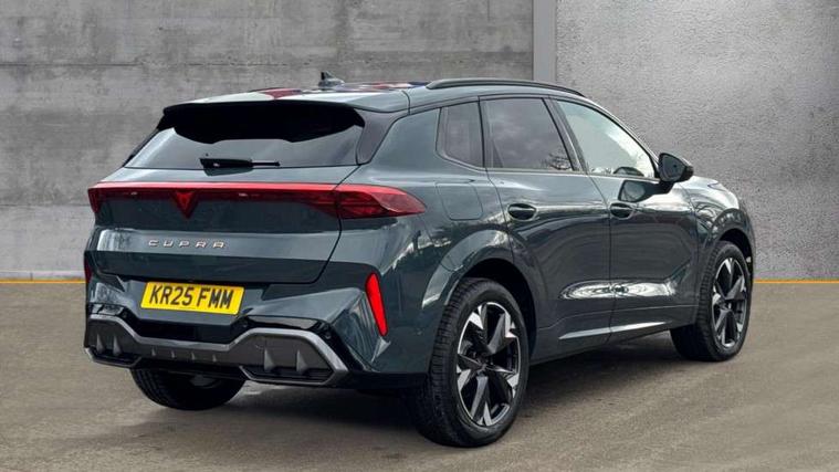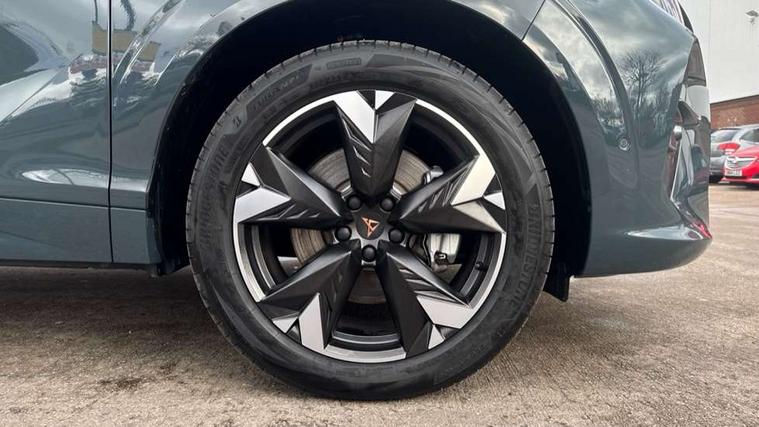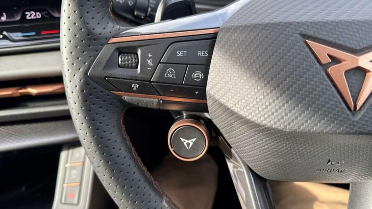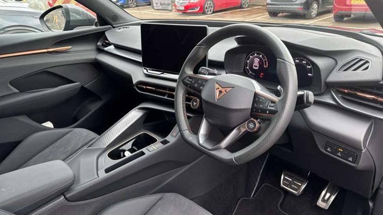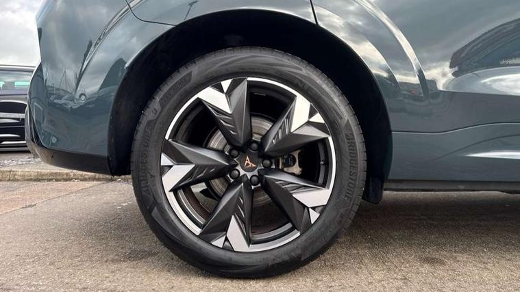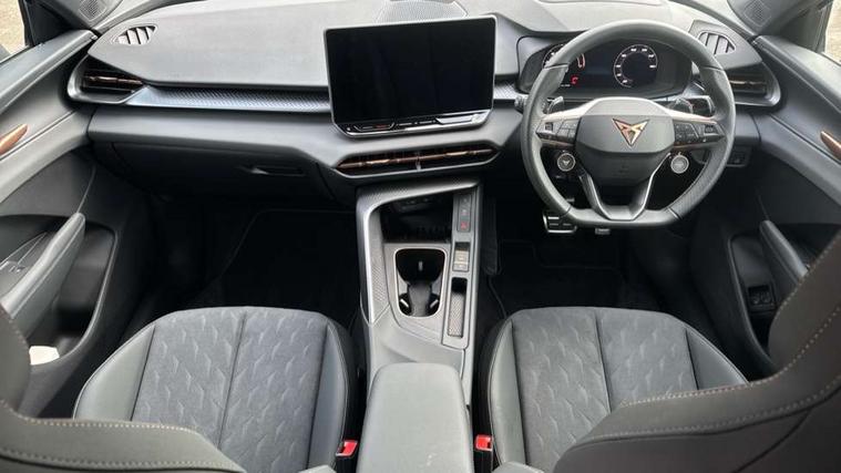10.25" digital cockpit and configurable dashboard, Adaptive cruise control with follow-to-stop and speed limiter, Advanced driver alert system, Advanced lane assist with semi-automatic vehicle control in a medical emergency and traffic jam assist, Driving profile selection and conventional shock absorber, Dynamic road sign display, E-call, Electric tailgate with virtual pedal, Emergency steering support with turn assist, Front and rear parking sensors, Front assist (Forward collision warning with automatic braking) with multifunction camera and front cross traffic assist, Head up Display, Intelligent park assist, Media system with Nav - 12.9" touch display, voice control, full link phone (wired/wireless), DAB and Steering wheel mounted controls, Rear traffic assist, Side and exit assist, Speed sensitive power steering, Start/stop system with regenerative braking, Top view camera (front camera, rear camera, 2 side cameras), Wireless phone charger, 10 amp mode 2 charging cable, 16 amp mode 3 charging cable, Auto dimming rear view mirror, Black roof rails, CUPRA 3D rear lights with ceremony & swiping indicator and illuminated logo, Dark tinted rear windows, Daytime running lights with automatic headlight control and Coming and Leaving home function, Door mirrors with memory function and lowing function on passenger mirror, Dynamic headlight range control, Electric front/rear windows, Electrically adjustable, heated and folding door mirrors, Front fog lamps with cornering function, Heat reflecting windscreen, High beam assist, LED headlamps with signature "CUPRA LED", Rain sensing wipers, Rear fog light on one side, back up light on both sides, Rear side wing doors, Rear wash/wipe, Third brake light, Welcome lights (within exterior mirror housing), 3 seat bench in 2nd row, Black roof lining, Cupra sports pedals, Dinamica cloth upholstery, Driver seat memory function, Electrically adjustable front seats including lumbar support, Four x USB Type C ports (2 in front and 2 in rear), Front and rear head restraints, Front and rear reading lights X 4, Front centre armrest, Heated front seats, Heated leather wrapped multi function sports steering wheel with tiptronic, Illuminated interior front door sills, Isofix, Operating voltage 12V, Single front passenger seat, Smart wraparound interior lighting, Sunvisors with illuminated mirror, Three zone climate control with control panel in rear, Unsplit rear seat bench, split folding backrest, with centre armrest, Variable luggage/load compartment floor, 3 point seatbelts in front with pretensioner and electric height adjustment, 3 point seatbelts on all rear seats, Brake control system - ESC and brake booster, Child proof door locks, Driver and front passenger airbags, Electronic parking brake, Front and rear disc brakes, Front interaction airbag, Front passenger airbag deactivation switch, Front side airbags with curtain airbags, Pre-crash front and rear seat belt tensioner, window closure and hazard lights, Tyre pressure monitoring system, Visual and acoustic seat belt reminder, electric contact in front and rear, Anti theft alarm, Keyless locking and starting system with keyless access, Locking wheel bolts, Black decorative trims, Chrome interior detailing, 19" Spectrum exclusive machine alloy wheels, Breakdown kit, Tool kit,