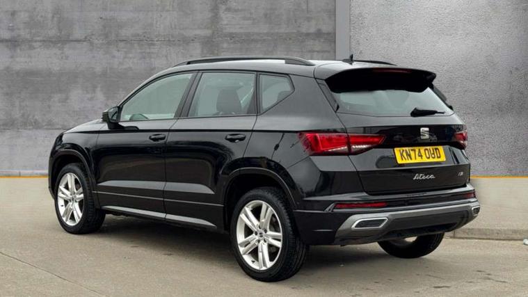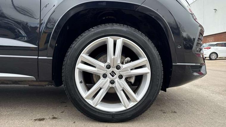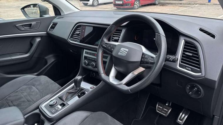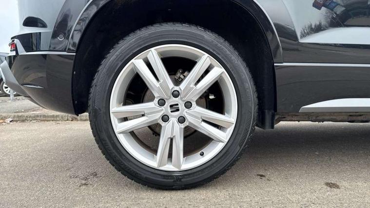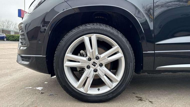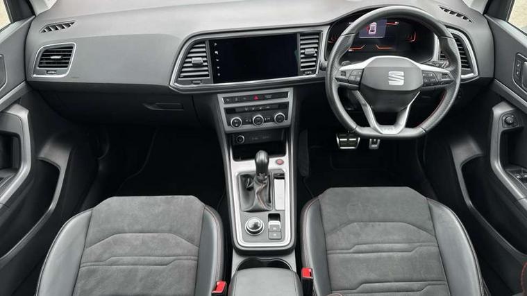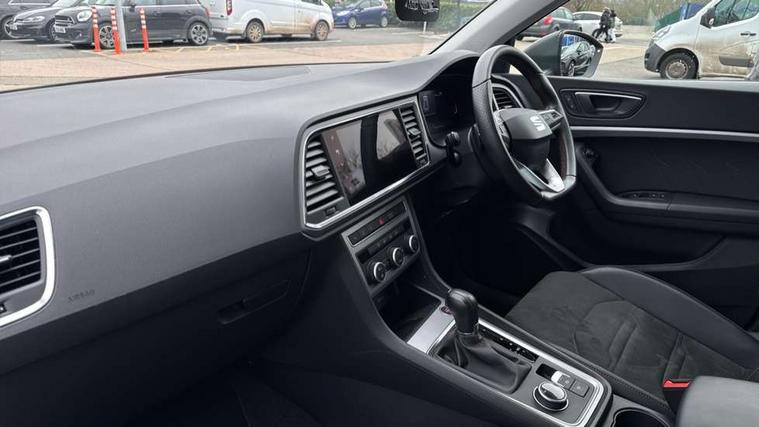 8" Digital cockpit, Colour multi-function on board computer display, Cruise control system with speed limiter, E-call, Outside temperature gauge, Progressive power assisted steering, SEAT drive profile with driving experience button - Normal, Sport, Eco and Individual mode, gearshift, steering and throttle response, Self parking functionality (includes front and rear parking sensors), Start/stop system, Tailgate, Trip computer, wired and wireless full link smartphone integration, Wireless phone charger, Steering wheel mounted audio/phone controls, Black roof rails, Black side window trim, Body colour bumpers, Body coloured wheel arch surrounds, Chrome front grille frame, Dark tinted rear windows, Daytime running lights, Door mirrors with welcome light silhouette, Dynamic headlight range control with self adjusting whilst driving, Electric adjustable/heated/folding door mirrors, Front and rear electric windows, Full LED headlamps with lens and LED front fog lamps with cornering function, Illuminated aluminium front door sill, LED 3rd brake light, LED rear tail lights with dynamic indicators, Rear exhaust tailpipe, Rear fog lights, Rear side wing doors, Rear wash/wipe, Roof spoiler, Variable front intermittent wipers, 12V socket in front, 3 seat bench in 2nd row, 60/40 split folding rear seat, Aluminium pedals, Dinamica upholstery with front comfort seats, Drawer under right front seat, Dual zone climate control, Front and rear head restraints, Front centre armrest, Front seat back storage pockets, Height adjustable driver and passenger seat with lumbar adjustment, ISOFIX points in outer rear seats with top tether anchorage points, Leather sports steering wheel and gear knob, Rear armrest and easy back seat release mechanism from boot, Single front passenger seat, Steering wheel mounted gearshift paddles, Convenience pack - Ateca, Interior lighting pack - Ateca, Navigation system pack with DAB - Ateca, Safety and driving pack with attention and drowsiness assist - Ateca, 3x3 point rear seatbelts, ABS, Traction control system (TCS), Electronic stability control (ESC) and Electronic differential lock system (XDS), Airbags - Driver and front passenger airbag with deactivation, front side, two curtain and driver's knee airbags, Electric parking brake with auto hold function, Front and rear seatbelt reminder, Front assist with autonomous emergency braking, Hill hold control, Manual rear child locks, Single tone horn, Tiredness recognition system, Tyre pressure monitoring system, Alarm, Keyless entry, Locking wheel bolts, Remote central locking, Chrome interior detailing, 18" Brillaint silver alloy wheels,