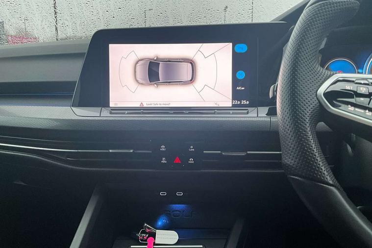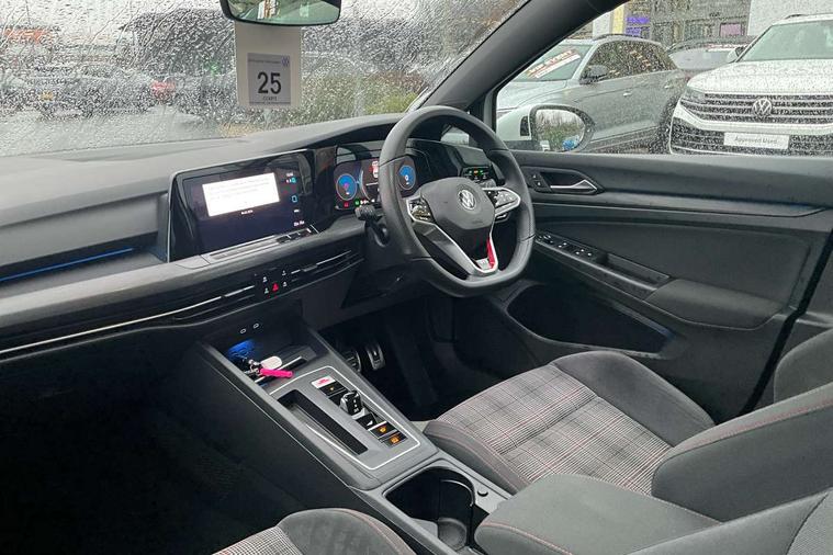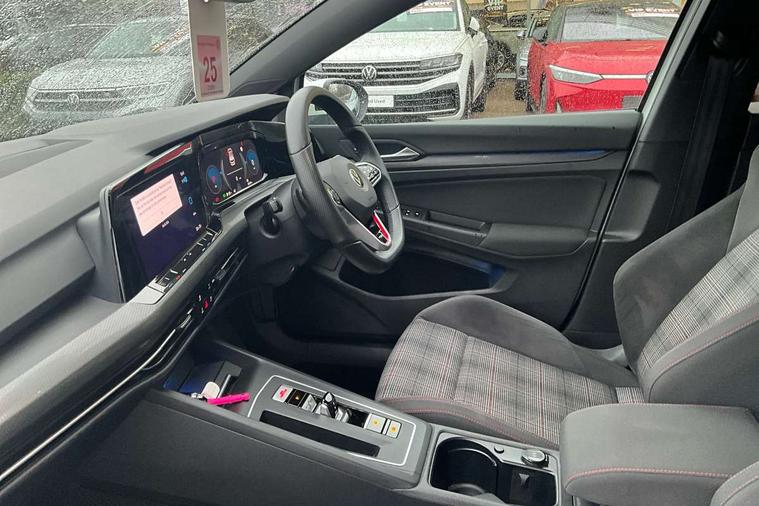 Adaptive cruise control (ACC) with speed limiter and front assist (reacting to vehicles pedestrians and cyclists), Car2X communication, Digital cockpit pro - 10.25" high resolution TFT dash display screen with customizable menus and information, Driver alert system, Driver profile selection, Dynamic road sign display, eCall - Emergency call service for SOS calls to emergency response, Lane assist, Mobile phone interface with wireless inductive charging function, Progressive steering, Speedo, rev counter, electronic odometer, trip, service interval display, exterior temperature and fuel gauge, Start/Stop function, Travel assist with emergency side assist with electrically foldable door mirrors, Warning buzzer and light for front seatbelts unfastened, Wireless app connect, Front differential lock, Petrol Particulate Filter, XDS electronic differential lock for improved traction and handling, Premium USB cable in choice of either Apple or Android smartphone compatibility, Auto dimming rear view mirror, Automatic headlamp activation with Coming home and Leaving home feature, Body colour door handles, Body colour door mirrors with integrated indicators, Body colour rear roof spoiler, Dual chrome plated stainless steel tailpipes, Front and rear electric windows, GTE style bumpers, GTI style bumpers, Heat insulating glass windscreen, Heated rear windscreen, High level 3rd brake light, Highway light, Illuminated front grille, IQ.Light - LED Matrix headlights, dynamic headlight control with advanced high beam control matrix dipped main beam + LED DRL + 22 LED lights, LED front fog lights, LED License plate illumination, Light assist - High beam assist ( Automatic sensing for switching between dipped and main beam), Rain sensor, Rear fog light on one side and reversing lights on both sides, Rear lights incorporating LED technology, Rear tinted glass 65% light absorbing from B pillar backwards, Rear windscreen washer and wiper with interval delay, Remote electrically heated, adjustable and foldable door mirrors, including door mirror puddle lights and reverse activated kerb-view adjustment on pa, Welcome light, 12V socket in front centre console, 12V socket in luggage compartment, 3 rear head restraints, 3 zone climate with controls in the rear, Aluminium gear knob, Ambient lighting - Customisable 30 colour ambient lighting, Ambient lighting, exterior illuminated styling elements at the sides, Black roof lining, Brushed stainless steel pedals, Centre console, Chrome plated surround to electric mirror button, window switch and air vent surrounds, Drivers and front passengers sun visors with vanity mirrors, DSG Paddle Shifts, Front + rear carpet mats, Front centre armrest with storage compartment, Front cupholders x 2, Front seat lumbar support adjuster, Front sports seats, Glovebox, Height adjustable front seats, Height and reach adjustable steering wheel, Isofix child seat preparation for 2 rear child seats and front passenger seat, Leather wrapped multifunction steering wheel, heated, with shift paddles, LED front reading lights X 2, Luggage compartment lighting, R Line front seats integrated head restraints, Removable luggage compartment cover, Split folding backrest with centre armrest and unsplit rear seat bench, Woven fabric storage compartments in front and rear doors, 3 point height adj front seatbelts + pretensioners, 3 rear three point seatbelts, ABS, Driver and front passenger airbag with front passenger airbag deactivation, Drivers and front passengers safety optimised head restraints, Electronic parking brake with auto hold, ESC (Electronic Stability Control), Extended pedestrian protection measures, Front and rear passengers curtain airbag system including front side airbags, Front disc brakes, Rear disc brakes, Two tone horn, Tyre pressure monitoring system, Alarm with interior protection and deactivation via infotainment system, Electronic engine immobiliser, Keyless entry with start/stop button on centre console, Black metal chrome decorative inserts in dash and front door trim panels, Soul dashboard, Tyre mobility kit Includes 12V compressor and tyre sealant,