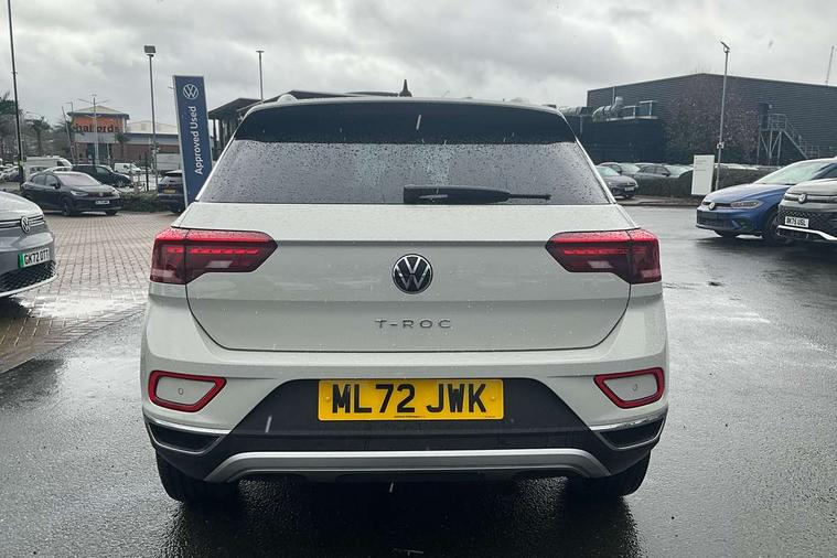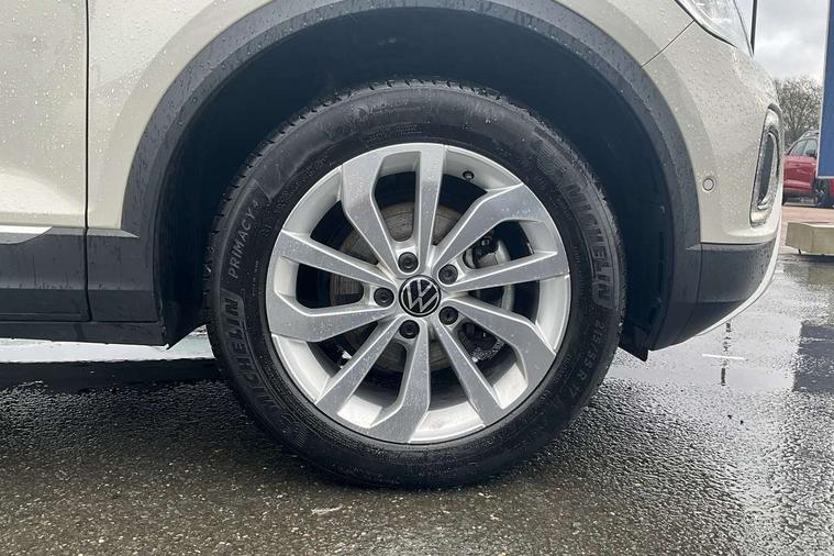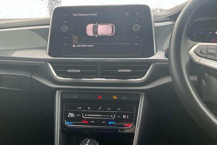 10.25" Digital cockpit pro, Bluetooth mobile phone interface, Driver alert system with fatigue detection, Driver tips and journey analysis, Emergency call service, Lane keeping system Lane Assist, Modified key software - reduce switch off time for key status change to Long no motion, Online services, Park assist including front and rear parking sensors, Service interval indicator, Tailgate/trunk lid release from outside, Think blue trainer driver tips and journey analysis, Warning sound and light for front seatbelts unfastened, Wireless app connect, Battery regeneration during braking, Start/stop function with battery regeneration, Diversity antenna for FM reception, Front and rear 6 speakers, Music playback - MP3, WMA and AAC files, Premium USB cable in choice of either Apple or Android smartphone compatibility, SD card slot, Simultaneous pairing of 2 compatible mobile devices, Title and cover art display, We Connect and We Connect Plus functionality, 3rd brake light, Auto dimming interior rear view mirror, Automatic hazard lights activation under emergency braking, Automatic headlight control with LED separate daytime running lights with coming/leaving home function, Body colour sports bumpers with silver metallic underbody fascia, Dynamic headlight range control with self adjusting whilst driving, Extended roof spoiler, Exterior mirrors aspherical on driver side, convex on front passenger side, External USB type C socket and charging sockets, Front windscreen wiper with intermittent wipe and 4 position delay, Heated rear window, LED Plus headlamps, LED rear combination lamps, LED rear number plate lights, LED tail lamp rear comination lamps, Light mode for poor weather, rain, fog or snow, Power windows with comfort operation and circuit breaker, Rain sensor, Rear exhaust tailpipe, Rear fog light on one side and reversing lights on both sides, Rear side wing doors, Rear wash/wipe with intermittent wipe setting, Remote electrically foldable door mirrors, puddle lights and reverse activated passenger's door mirror, 12V power socket in centre console, 3 rear head restraints, 3 seat bench in 2nd row, 4 load lashing points in luggage compartment, Air care climatronic air conditoning system with active combination filter and 2-zone temperature control, Chrome plated radiator grille inserts, air vent surrounds and light switch surrounds, Door and side trim panel with leatherette insert, Drawer under drivers seat, Front + rear carpet mats, Front centre armrest, Front comfort sports seats, Front cupholders x 2, Front footwell illumination, Instrument lighting, white adjustable panel illumination, Interior ambient lighting and surround lighting, Interior light delay, Isofix child seat preparation, Leather gearshift handle, LED interior light with switch off delay/dimmer and 2 front/rear LED reading lights, Load-through provision with cup holder when folded down ('Unsplit rear seat bench, split folding backrest, with centre armrest), Luggage compartment lighting, Non-folding front passenger seat backrest, Single front passenger seat, Storage compartment in left and right luggage area, Storage compartment in rear doors, Storage compartments in driver and front passenger doors, Sunvisors with illuminated vanity mirrors, Variable boot floor, height adjustable and removable, Driver assistance pack without proactive passenger protection - T-Roc, 3 point height adj front seatbelts + pretensioners, 3 point seatbelts in outer rear with ECE label, ABS, Child locks on rear doors, Driver and front passenger airbag with front passenger airbag deactivation, Driver and front passenger safety-optimised head restraints, Drivers seatbelt reminder, Electronic parking brake, Electronic Stability Control (ESC) inc EDL (Electronic Differential Lock) and ASR (Traction Control), Front and rear passengers curtain airbag system including front side airbags, Front assist with city emergency braking and pedestrian monitoring, Front seat side impact airbags, Predictive pedestrian protection, Rear disc brakes, Single tone horn, Tyre pressure loss indicator, Volkswagen roadside assistance, Alarm with interior protection, Anti-theft alarm system with interior monitoring, backup horn, and towing protection, Remote central locking with SAFELOCK, radio remote control with 2 remote control folding keys, Trims for alloy wheels,
